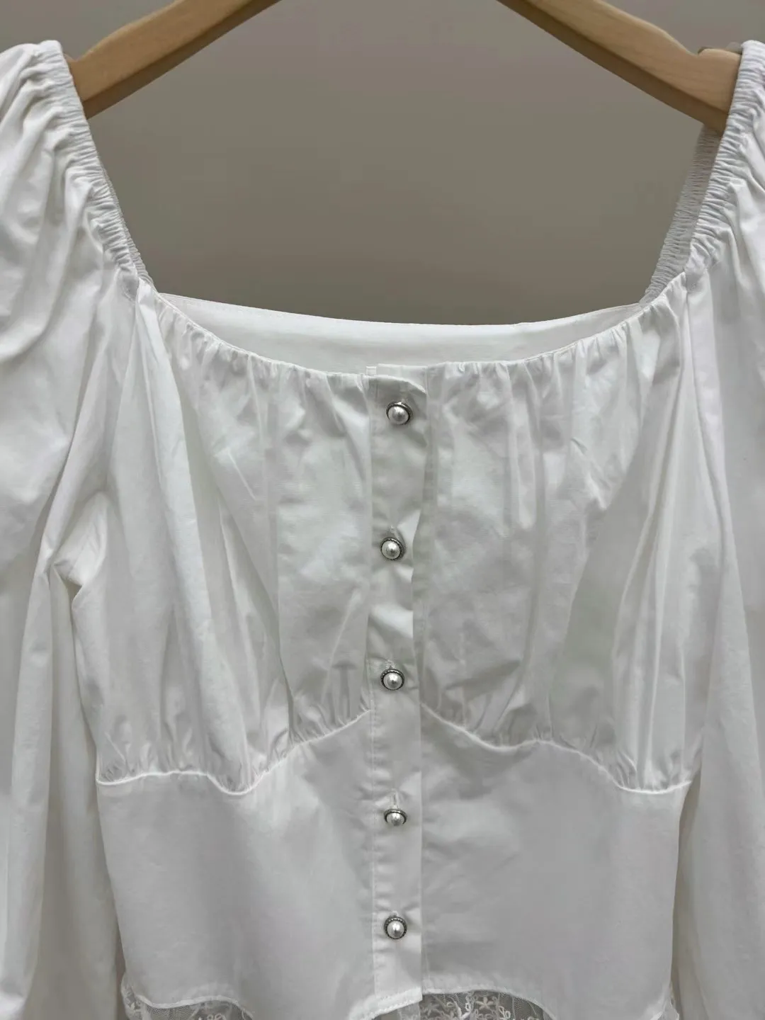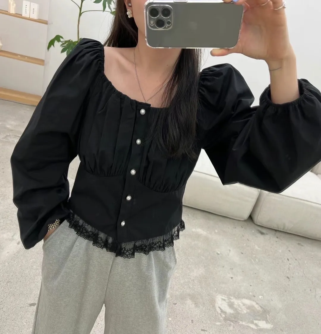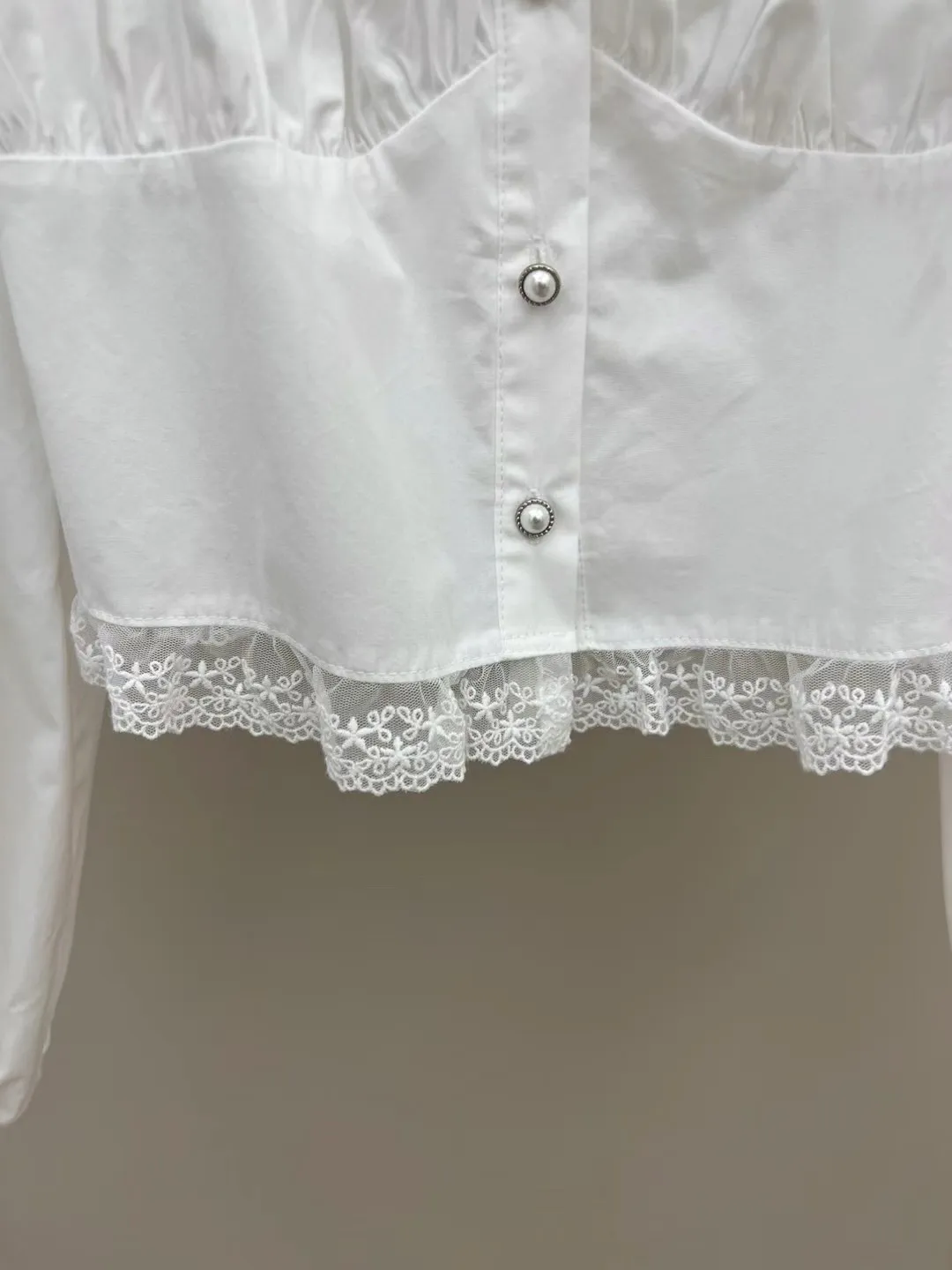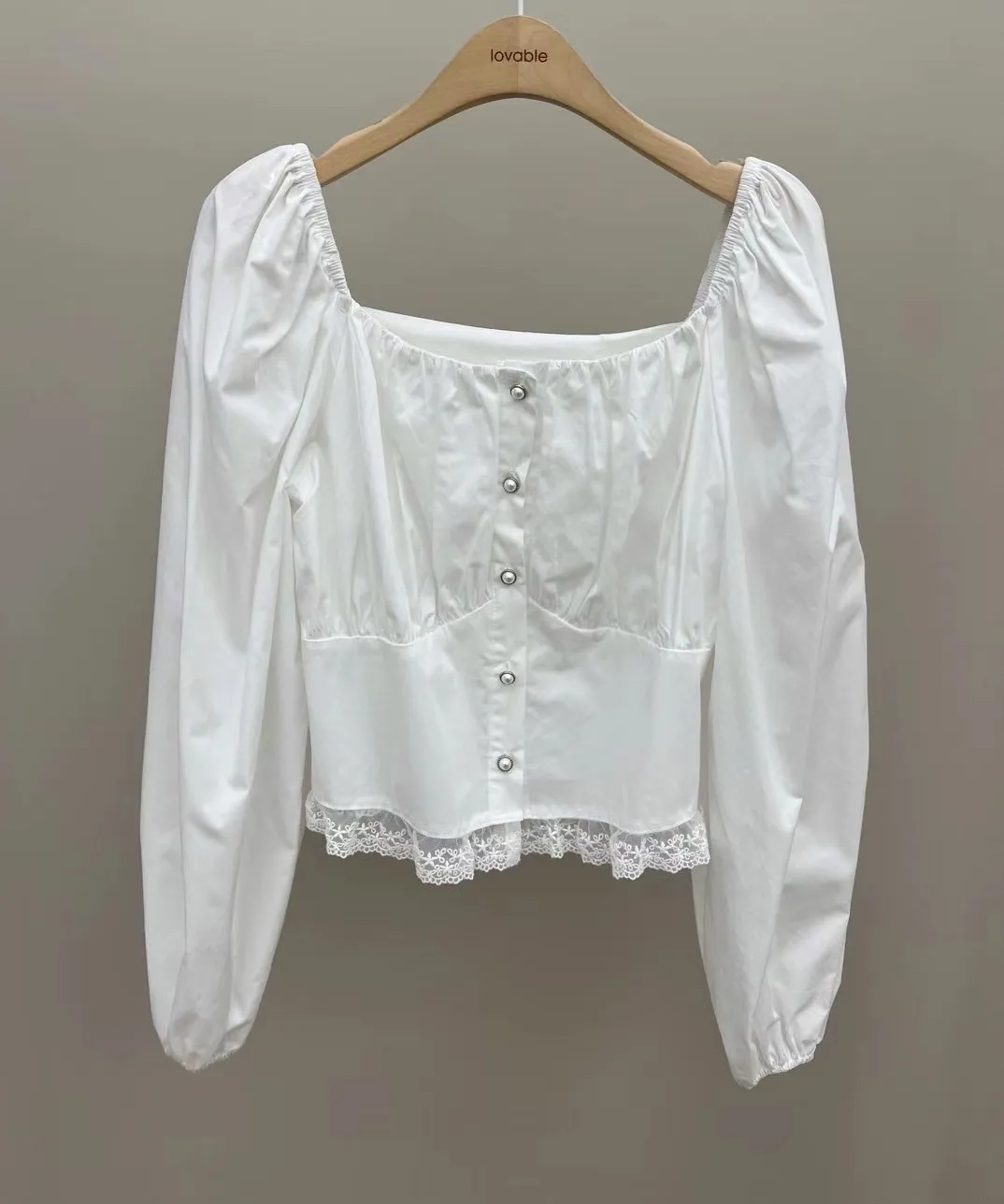 方領單排扣蕾絲襯衫