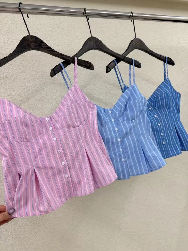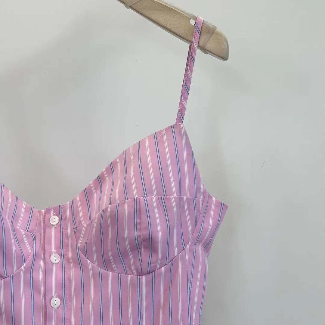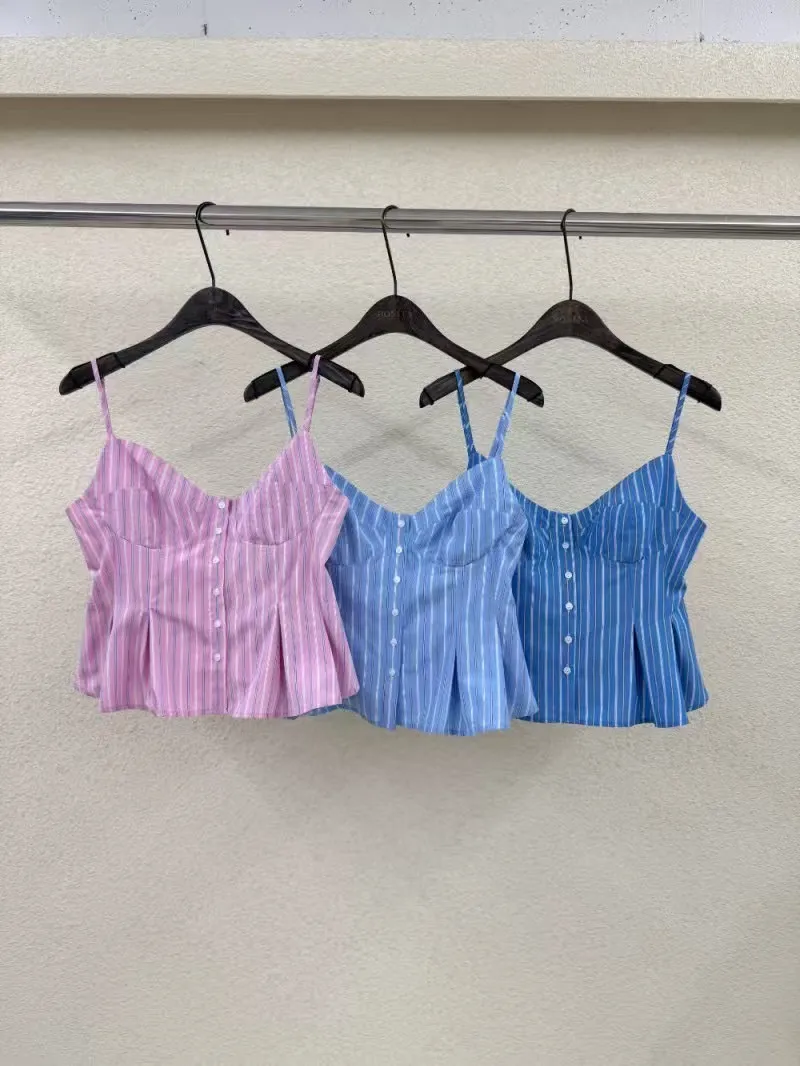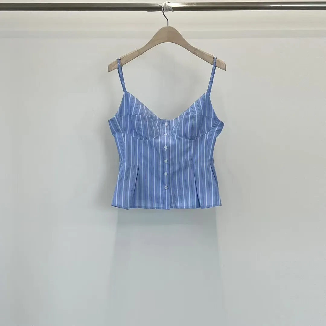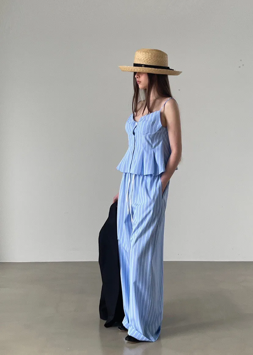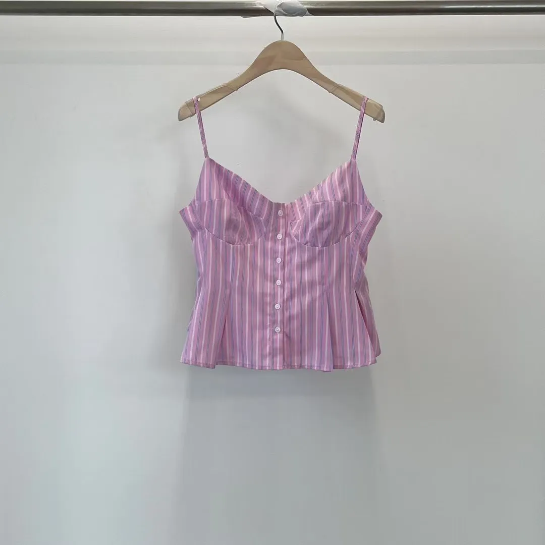 排釦直條紋背心