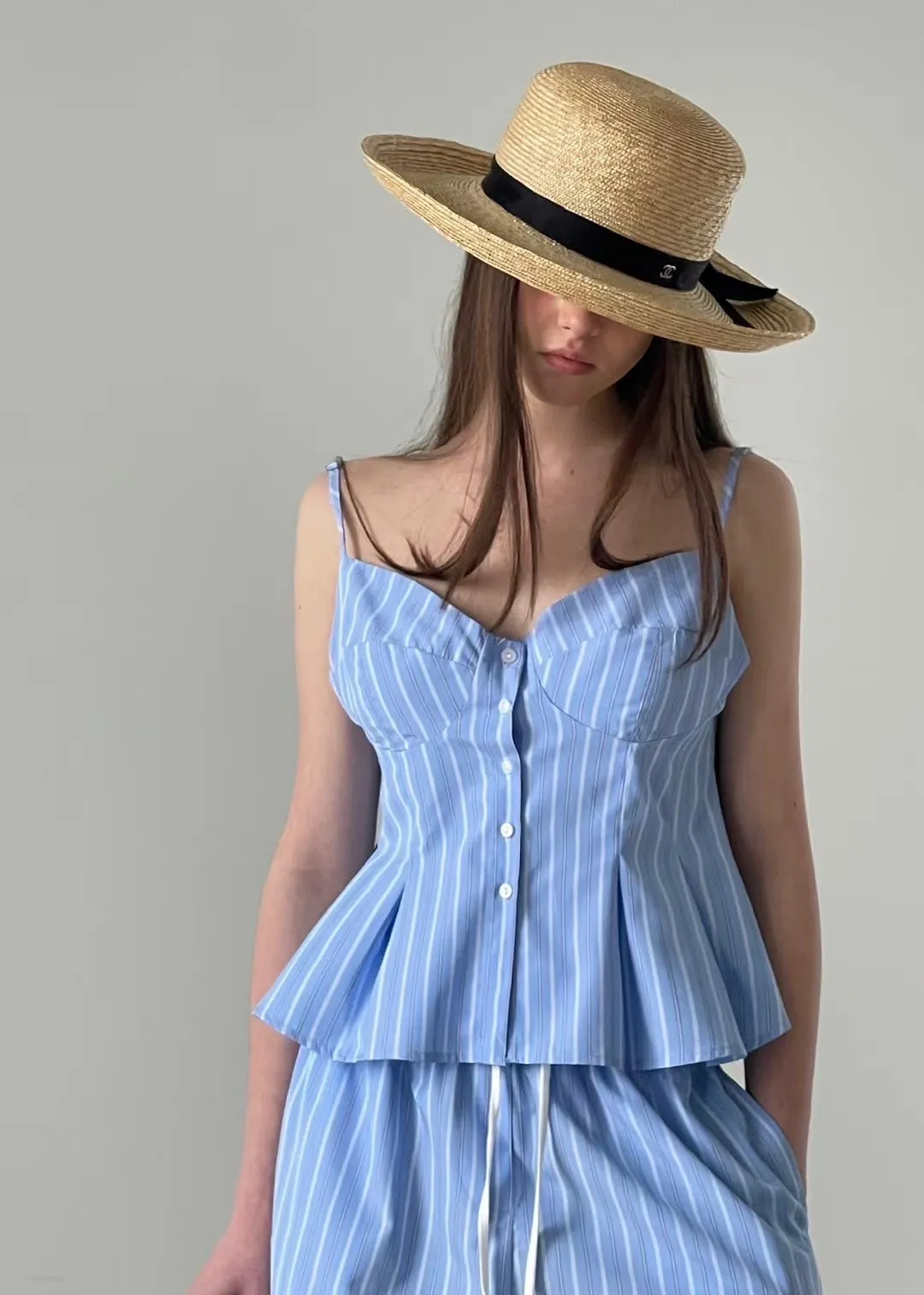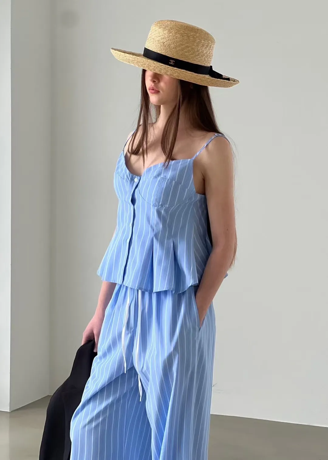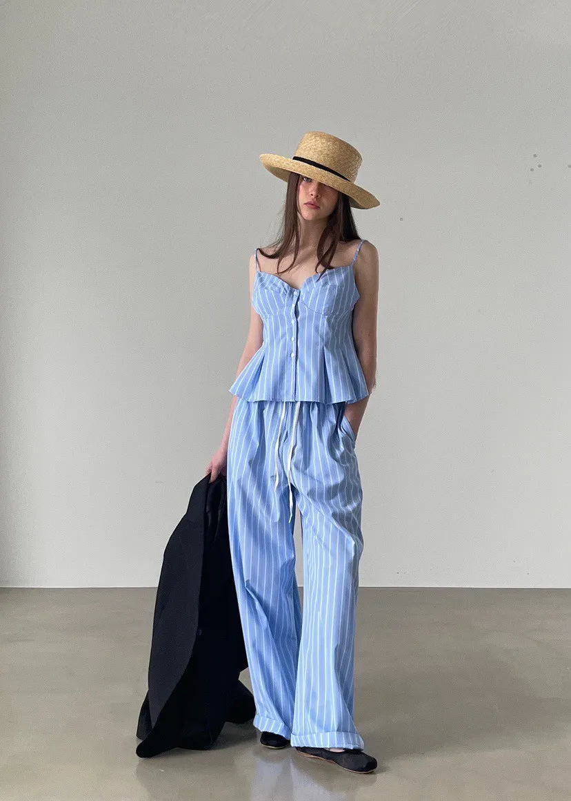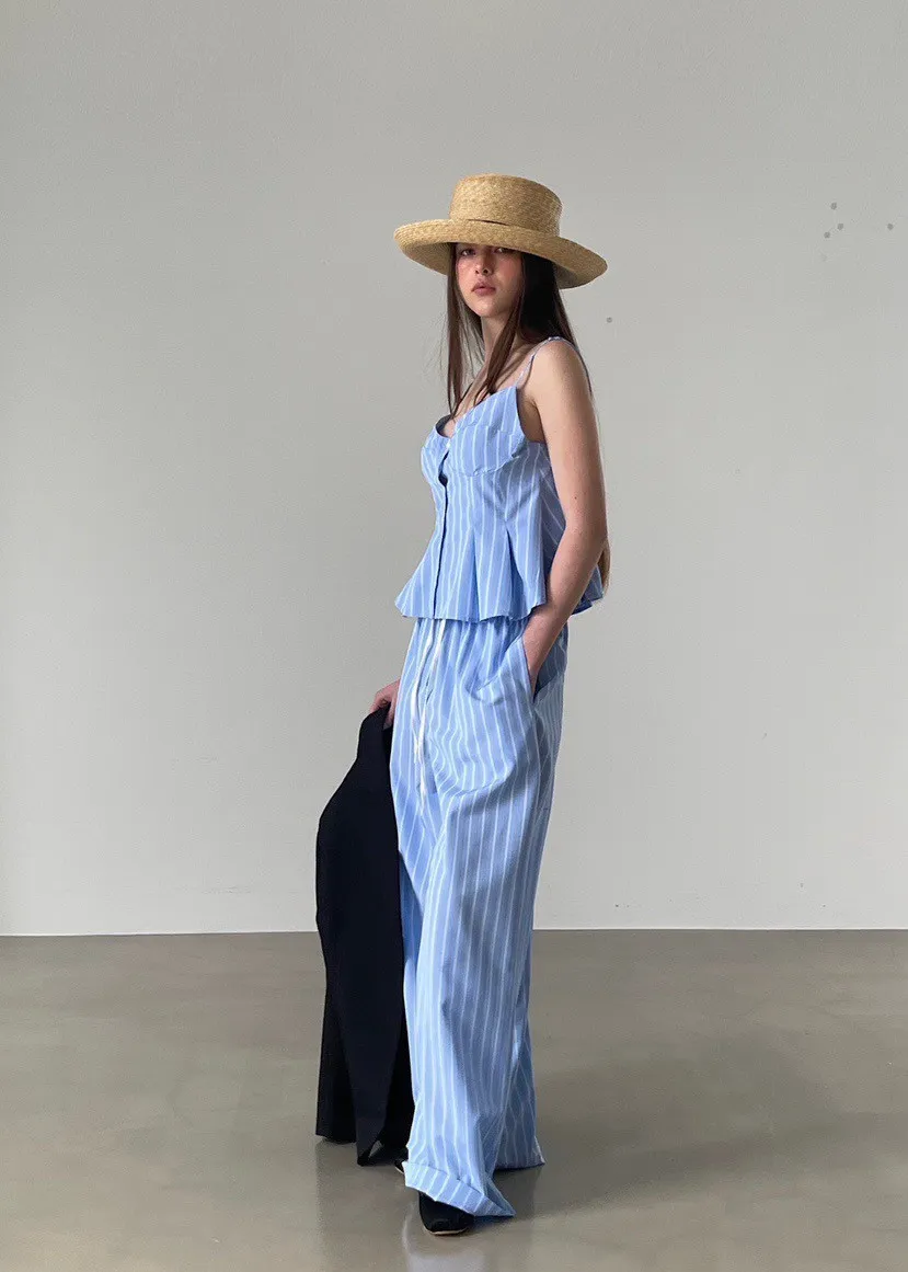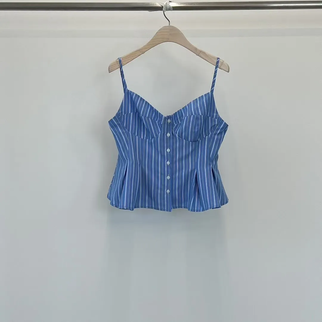 排釦直條紋背心