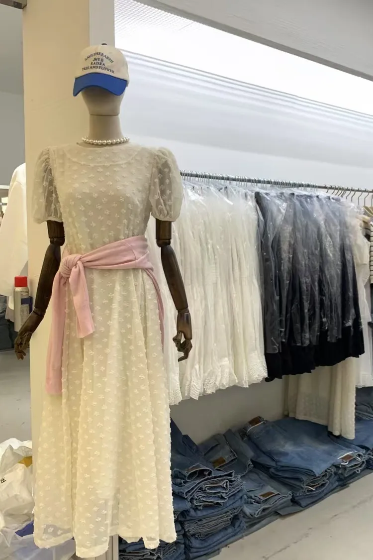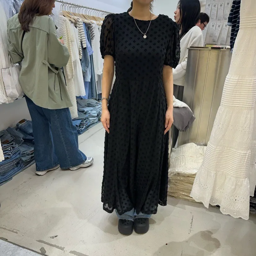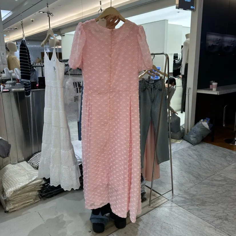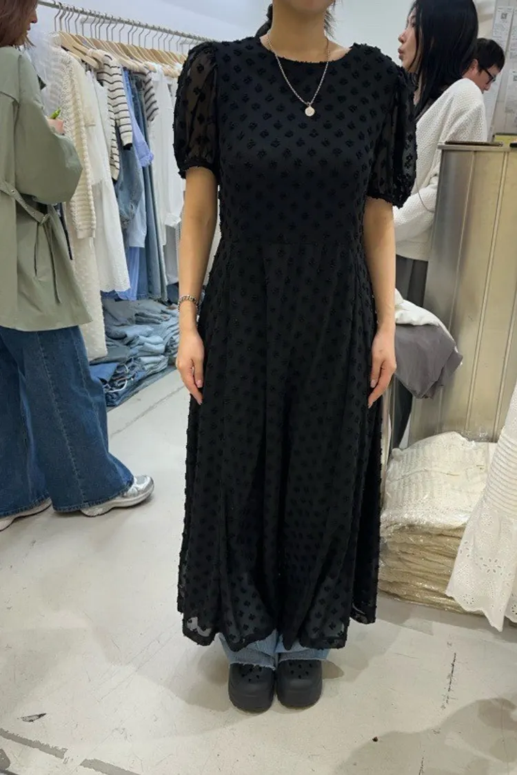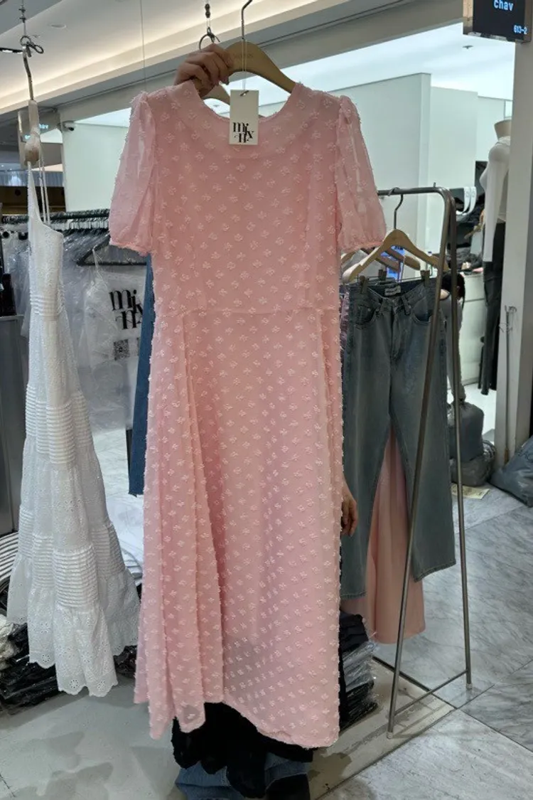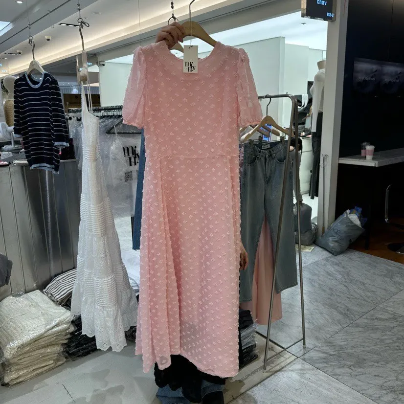 立體小花公主袖洋裝