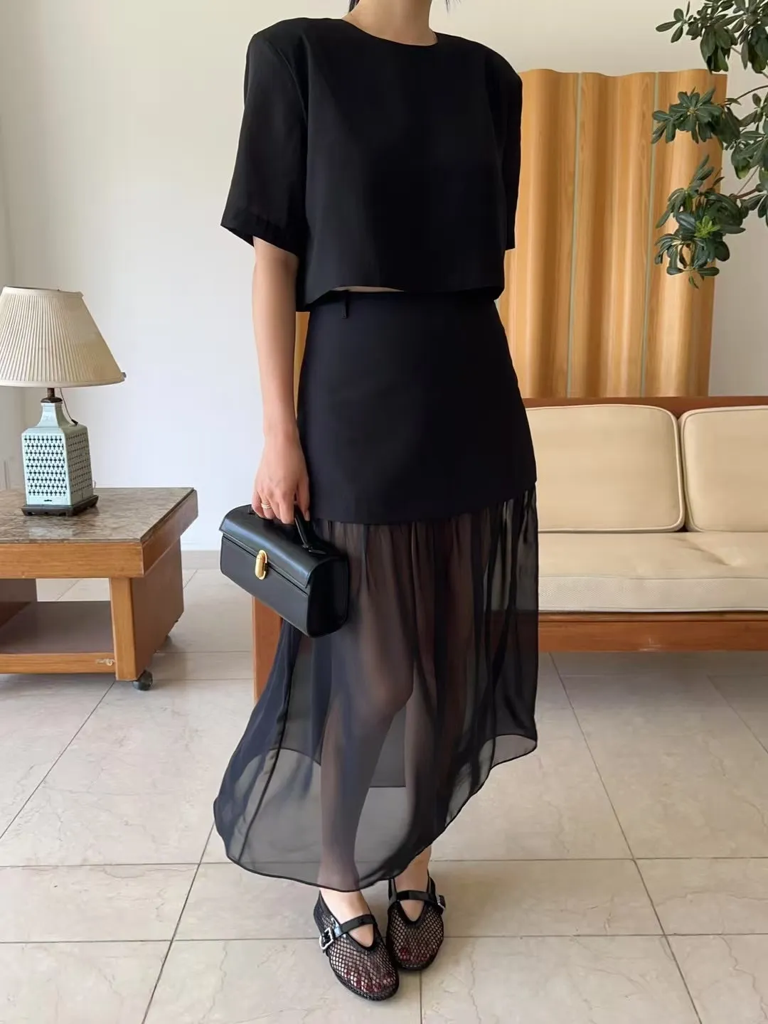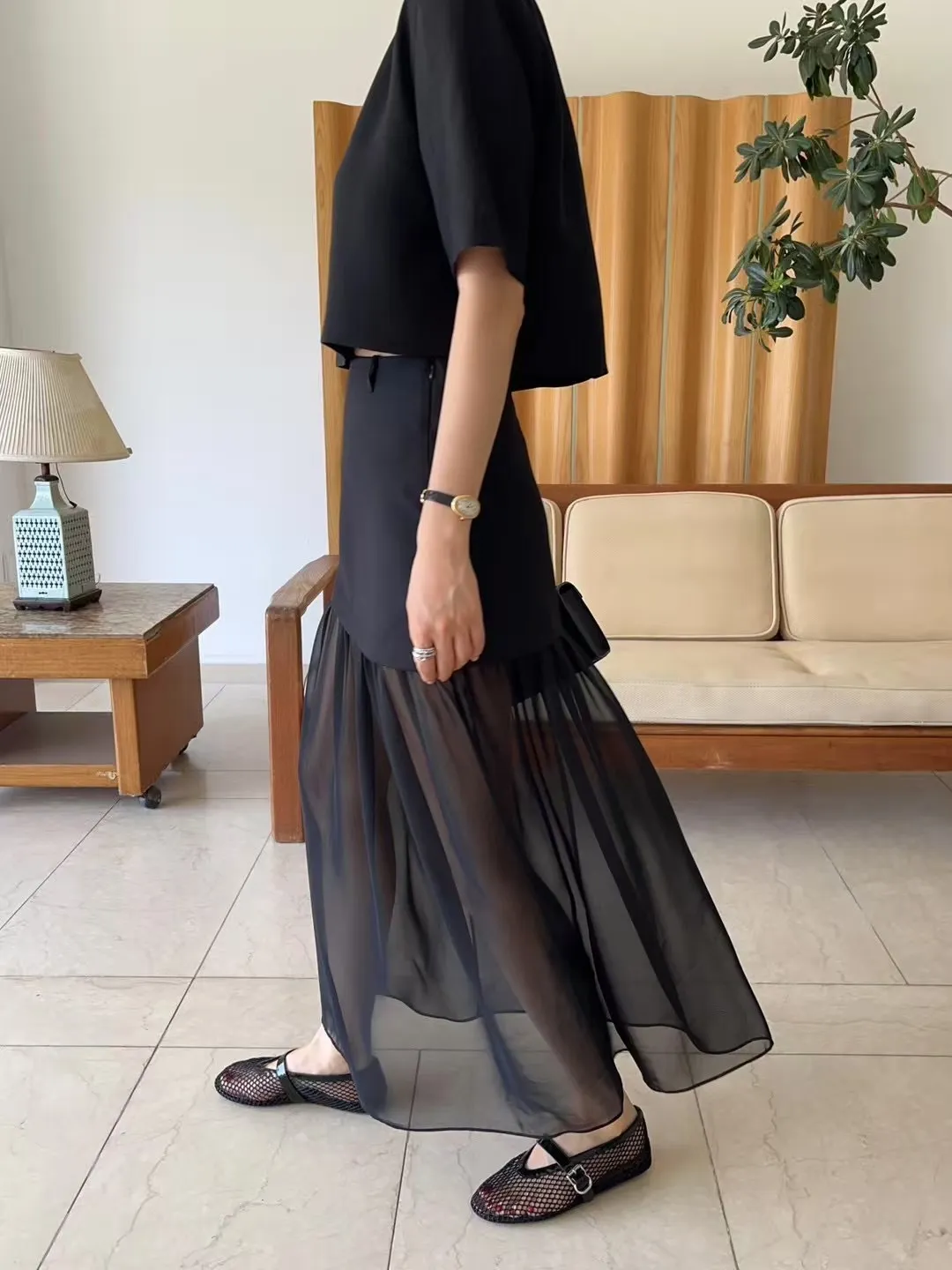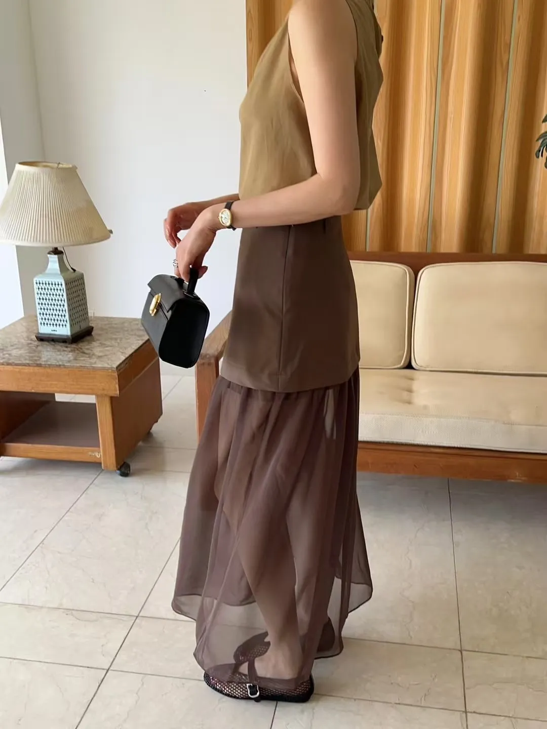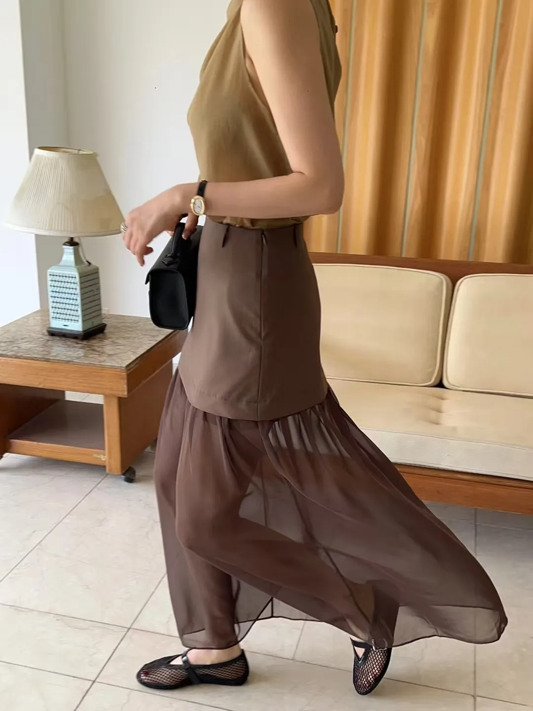 #透紗拼接 #高腰長裙 #夏日穿搭 #氣質裙款 #顯瘦下身 #拼接裙 #Glitter選品 #百搭長裙 #韓系穿搭 #輕熟風
