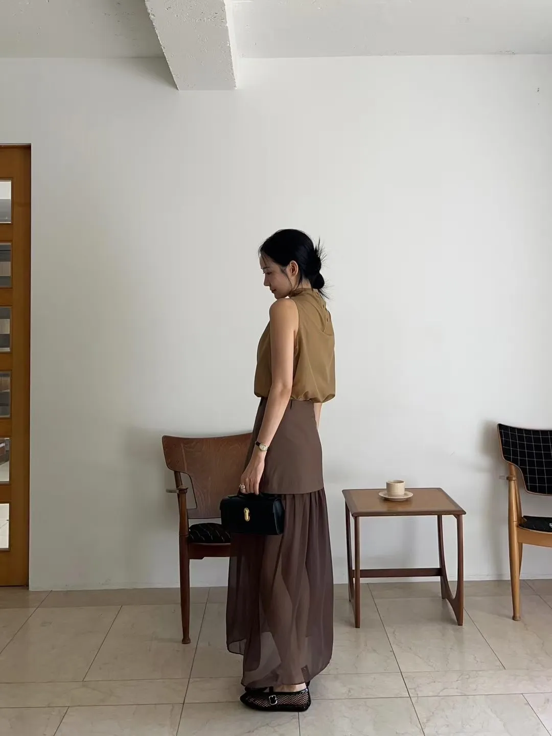 隨風飄逸的垂墜感讓步伐自帶氣場,搭配短版上衣