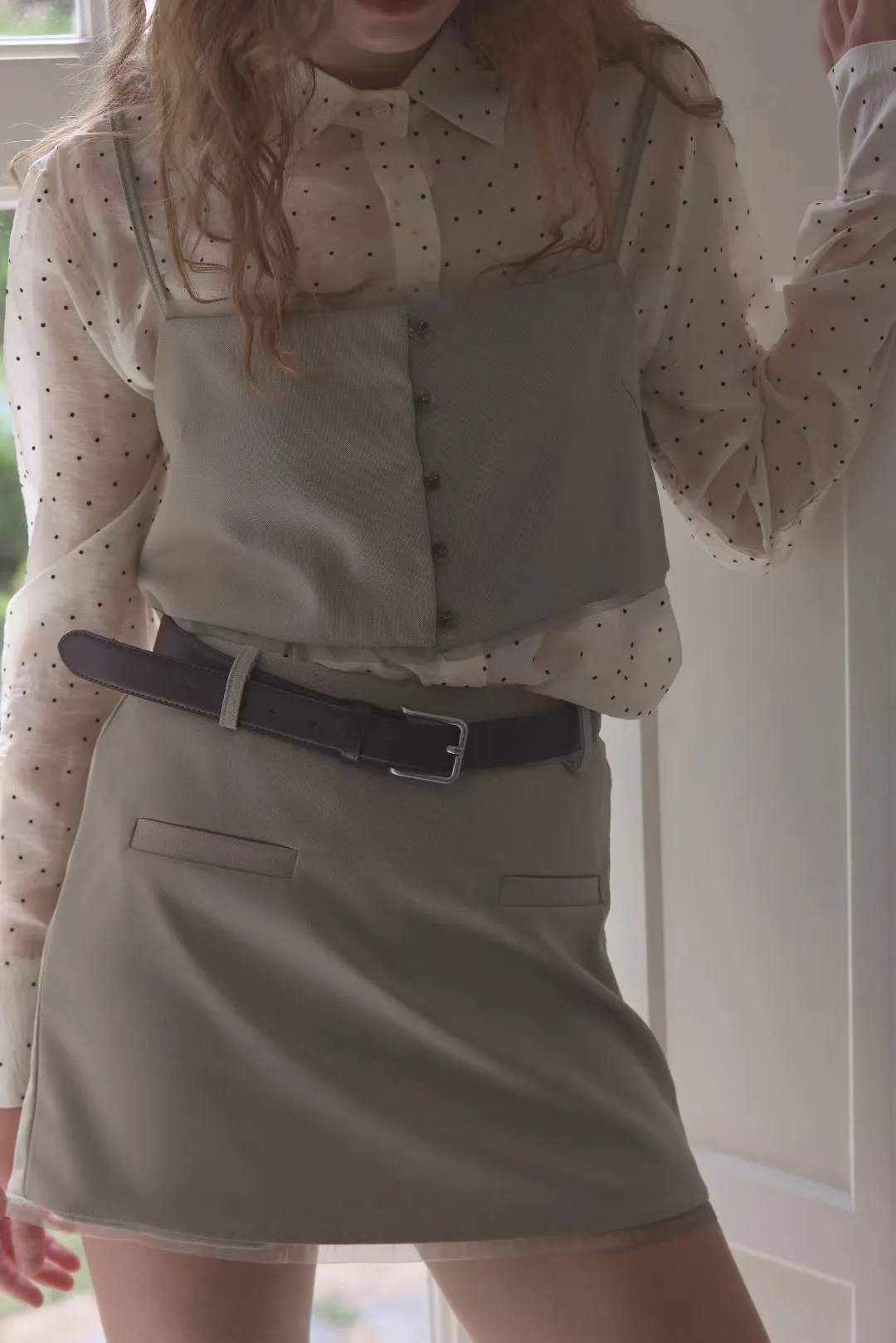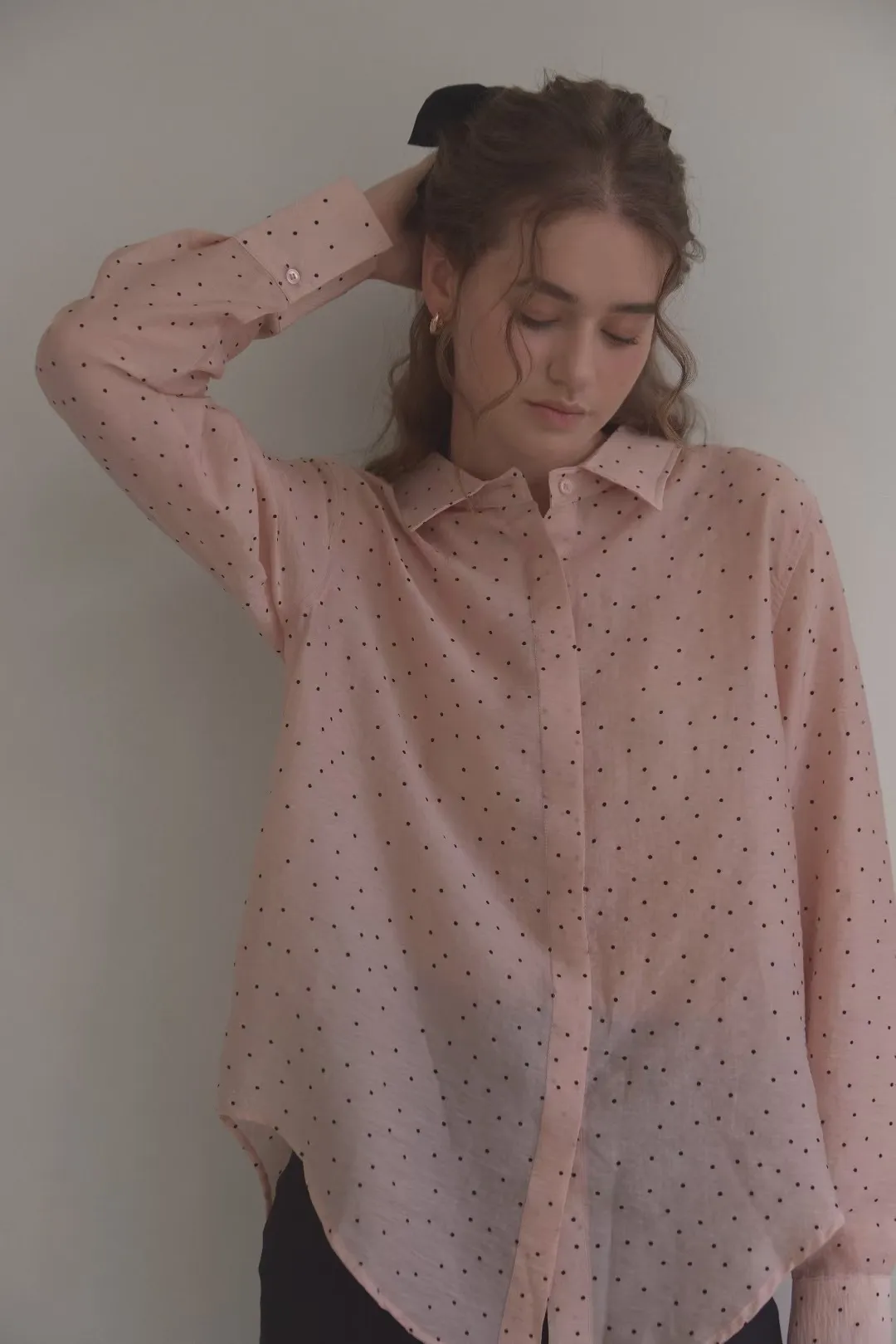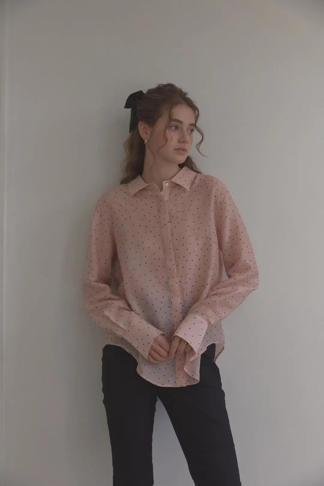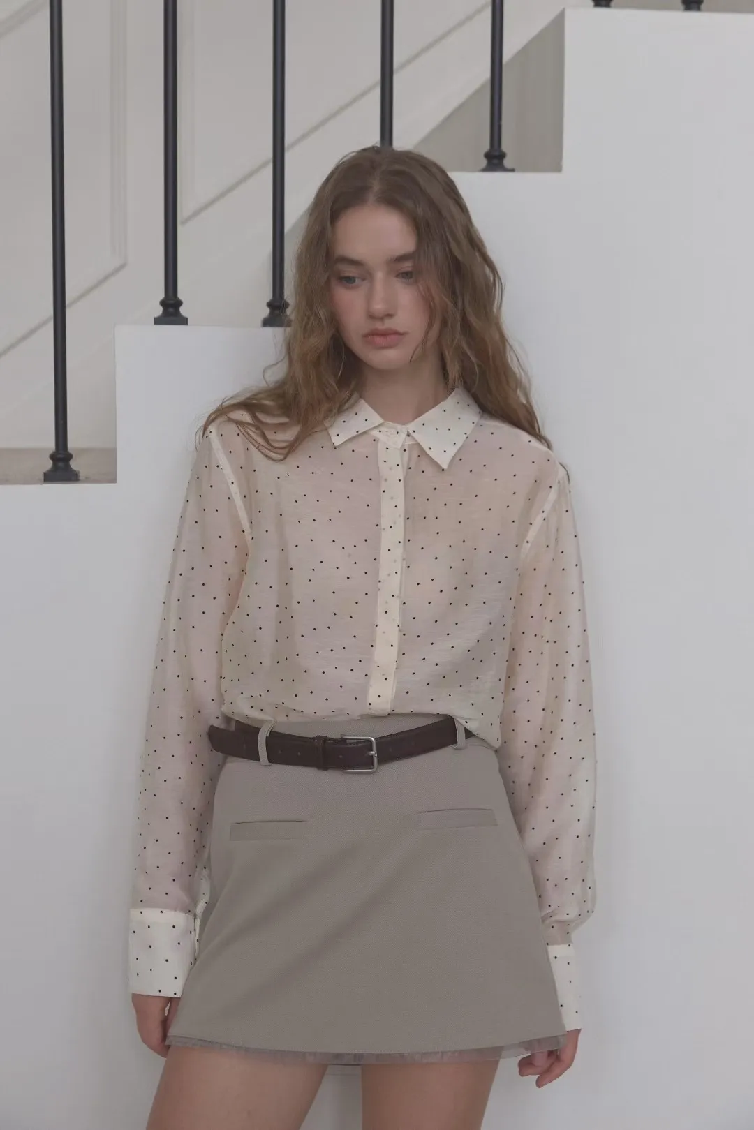 早秋法式微透膚小圓點襯衫