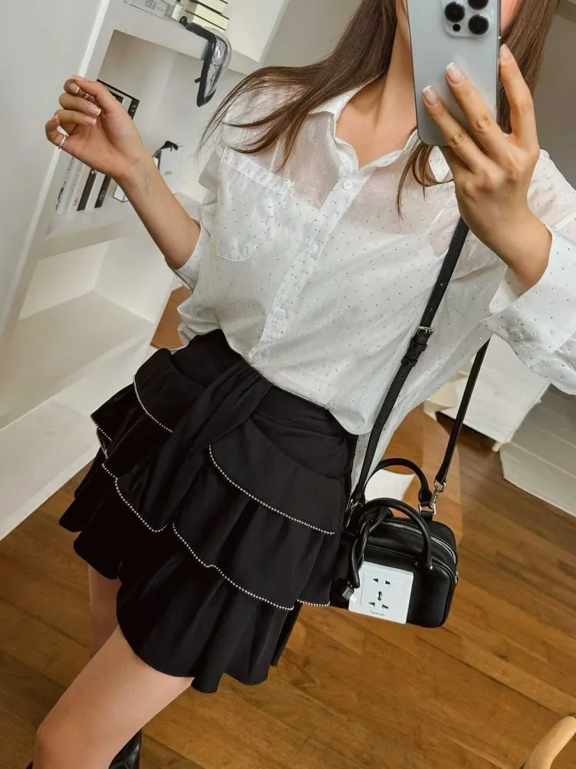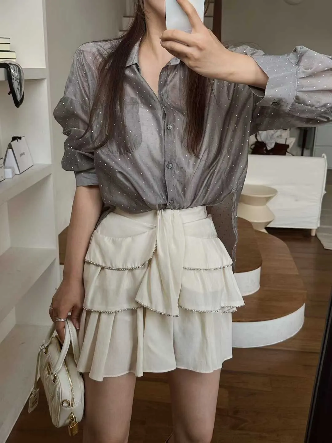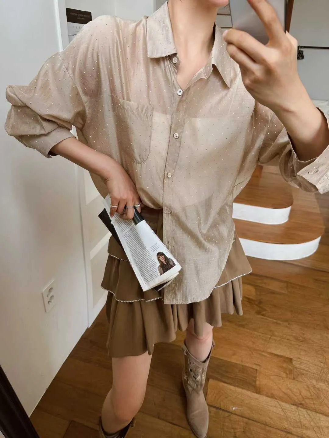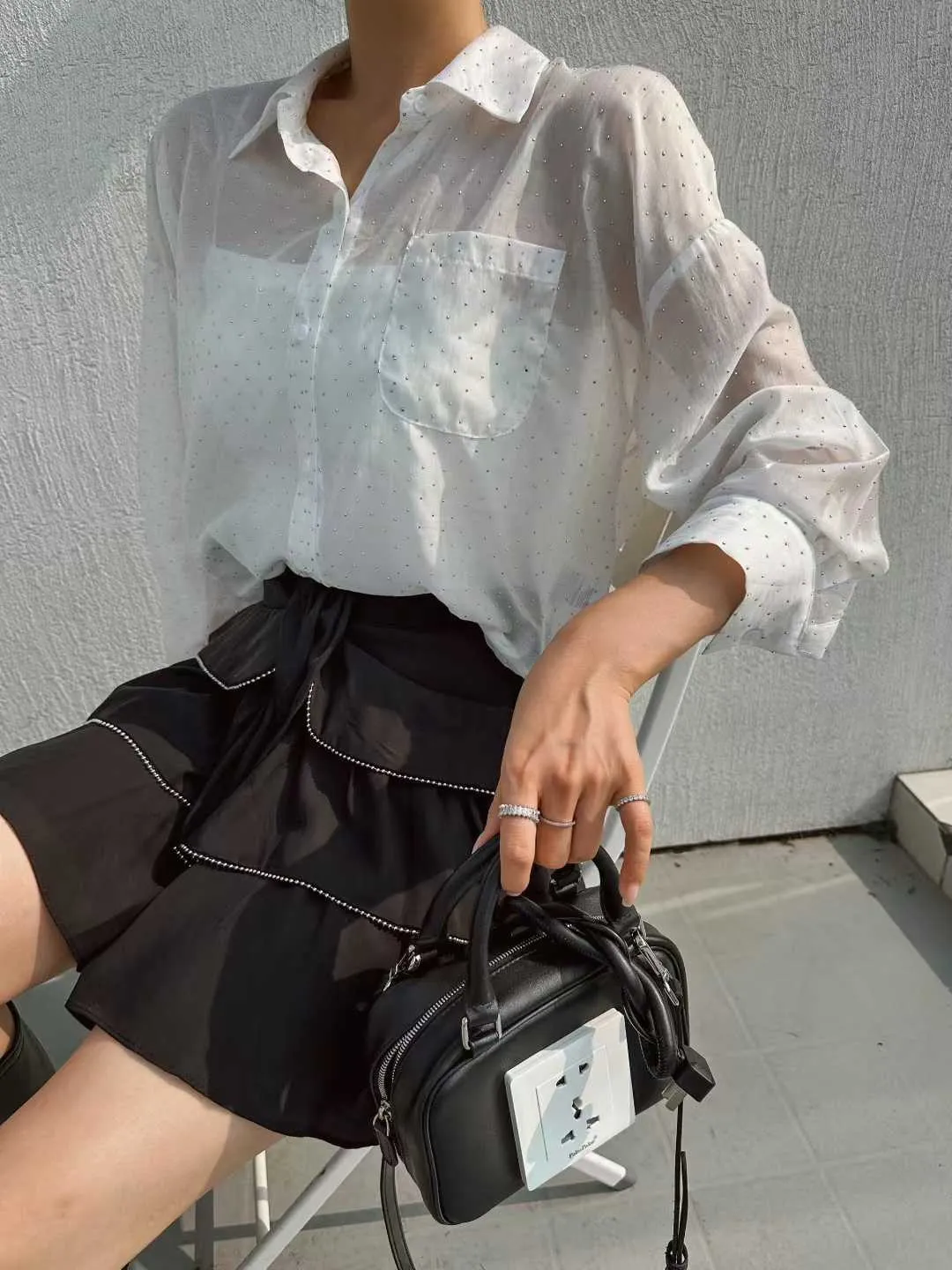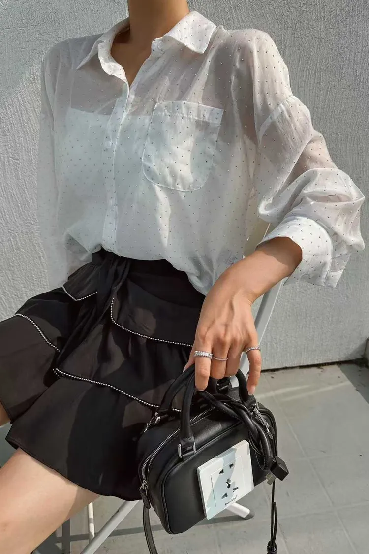採用輕盈的透膚材質,點綴細緻亮絲小點 舉手投足間自帶光澤感,低調卻不失高級 版型微寬鬆,搭配單口袋設計,隨性中帶點法式氣質 可搭配短裙、牛仔褲,或直接做外罩層次感穿搭 白色清新百搭、金米色高級柔美、灰色酷感率性 日常或約會都能輕鬆駕馭 #微透襯衫 #亮絲襯衫 #點點襯衫 #透膚襯衫 #法式襯衫 #層次穿搭 #百搭襯衫 #寬鬆襯衫 #韓系穿搭 #GlitterTW