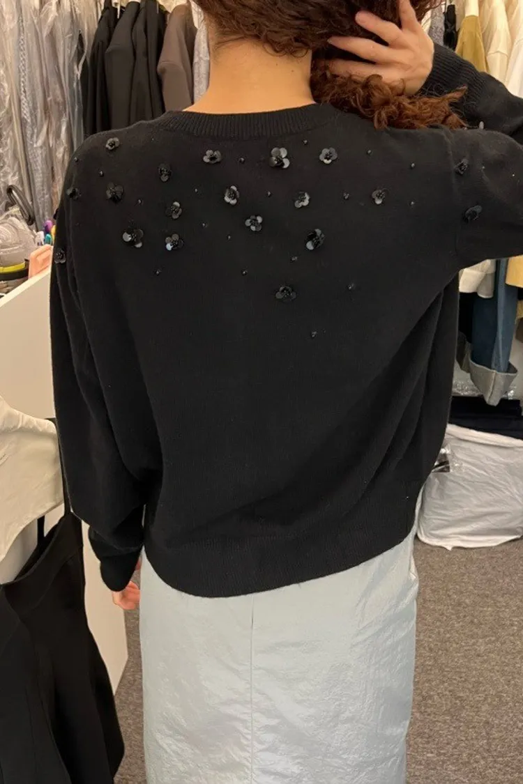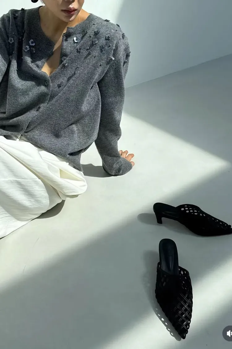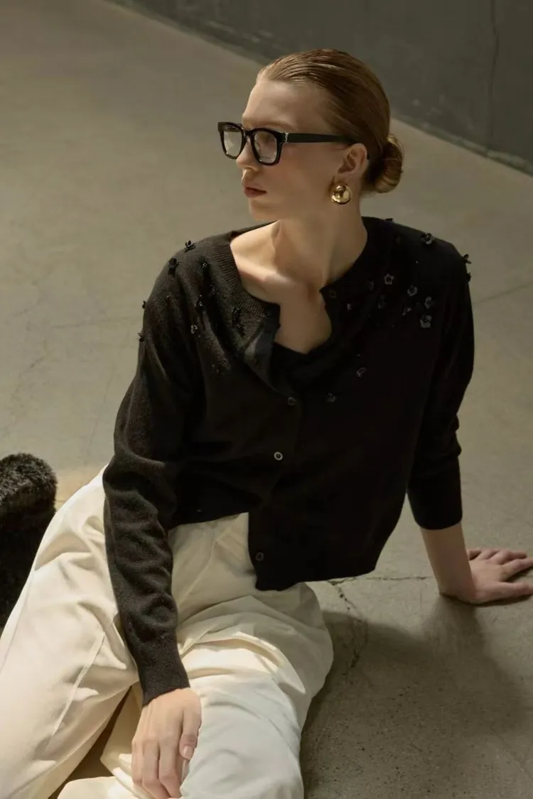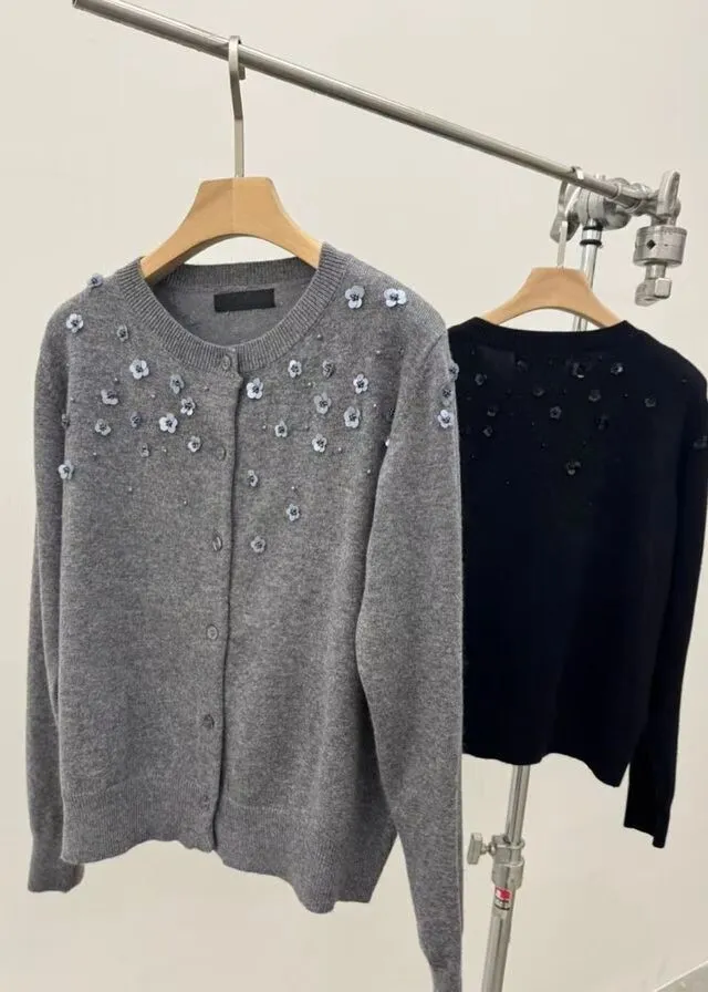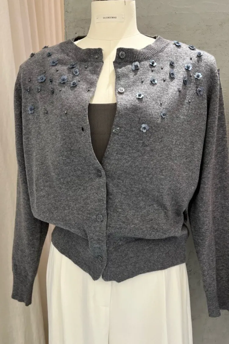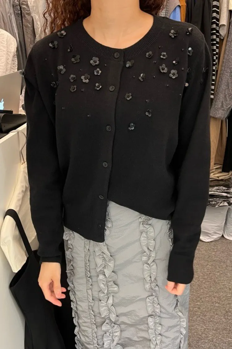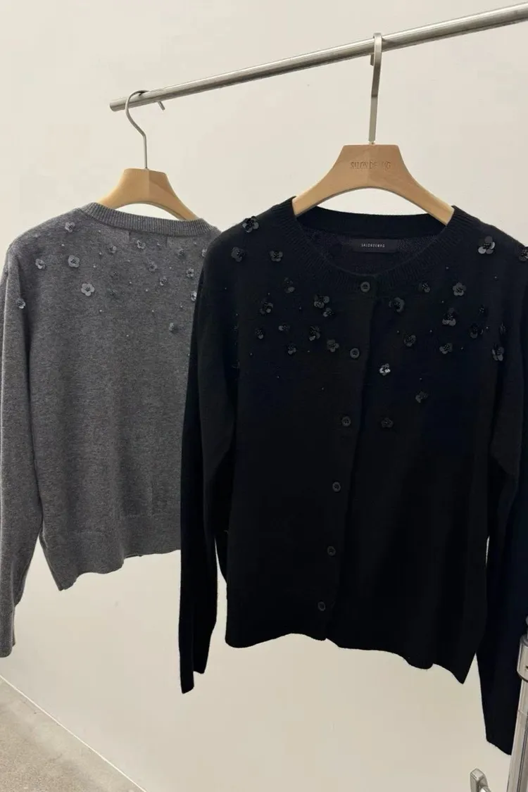 小花珠片點綴針織開襟外套