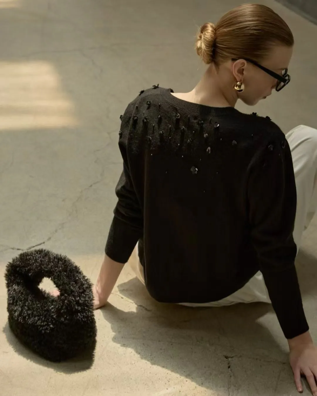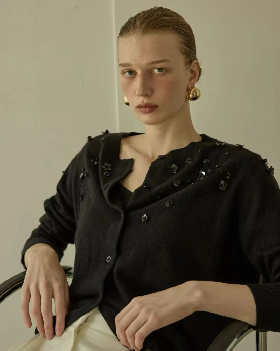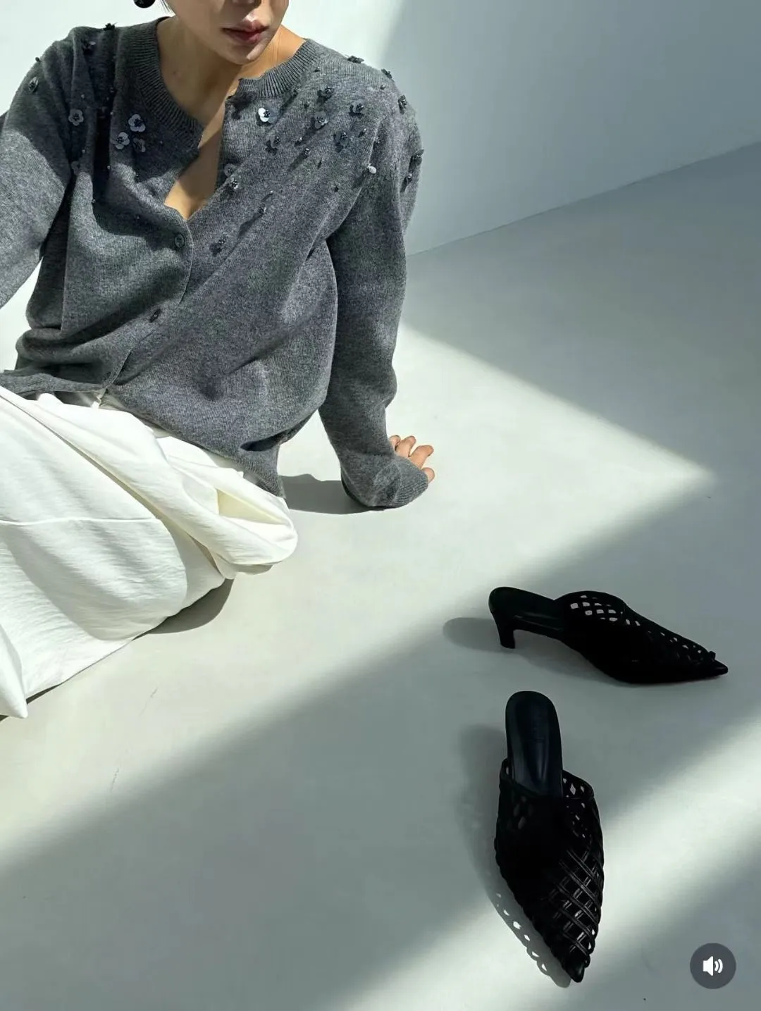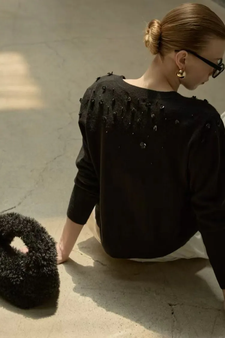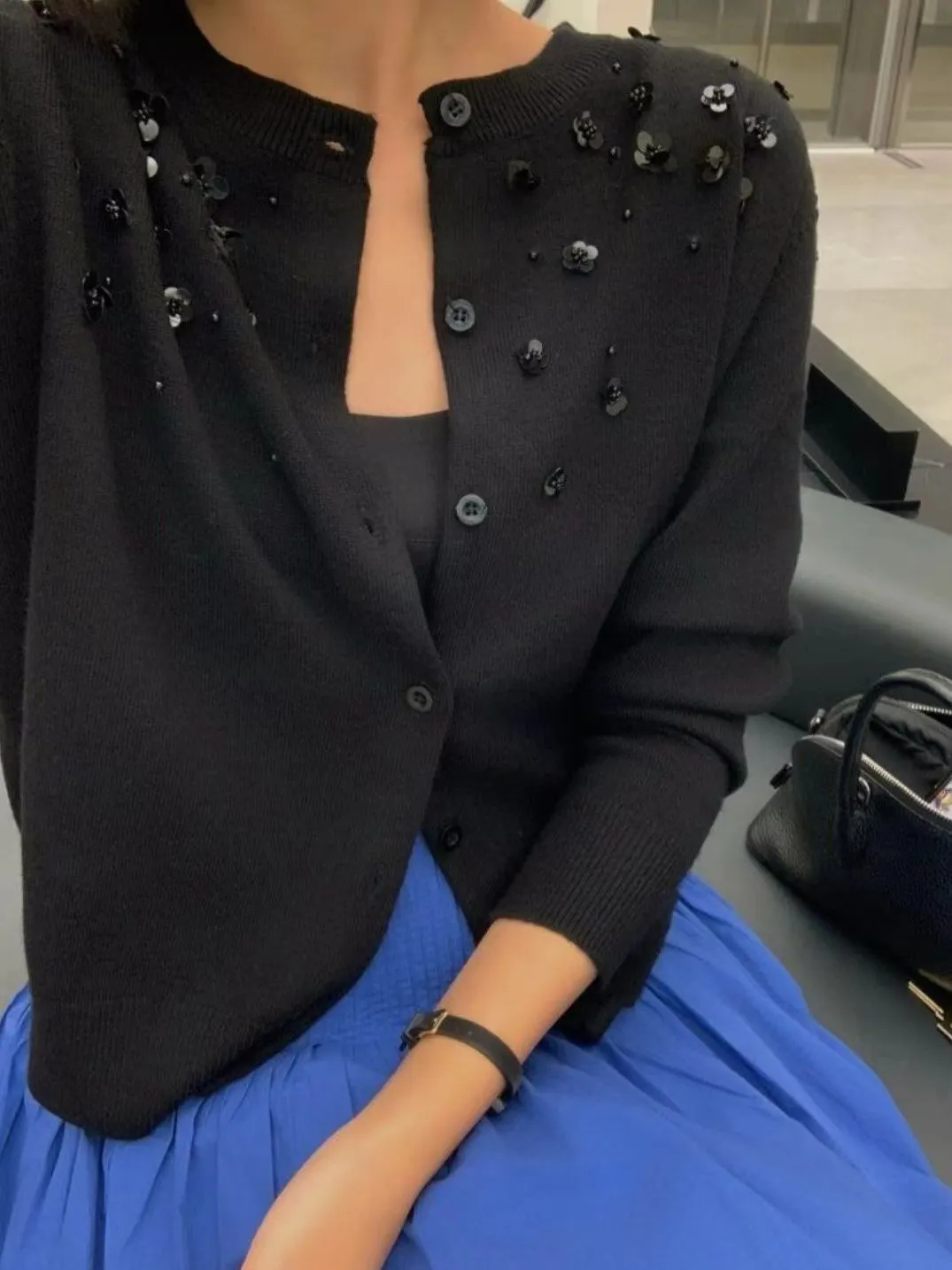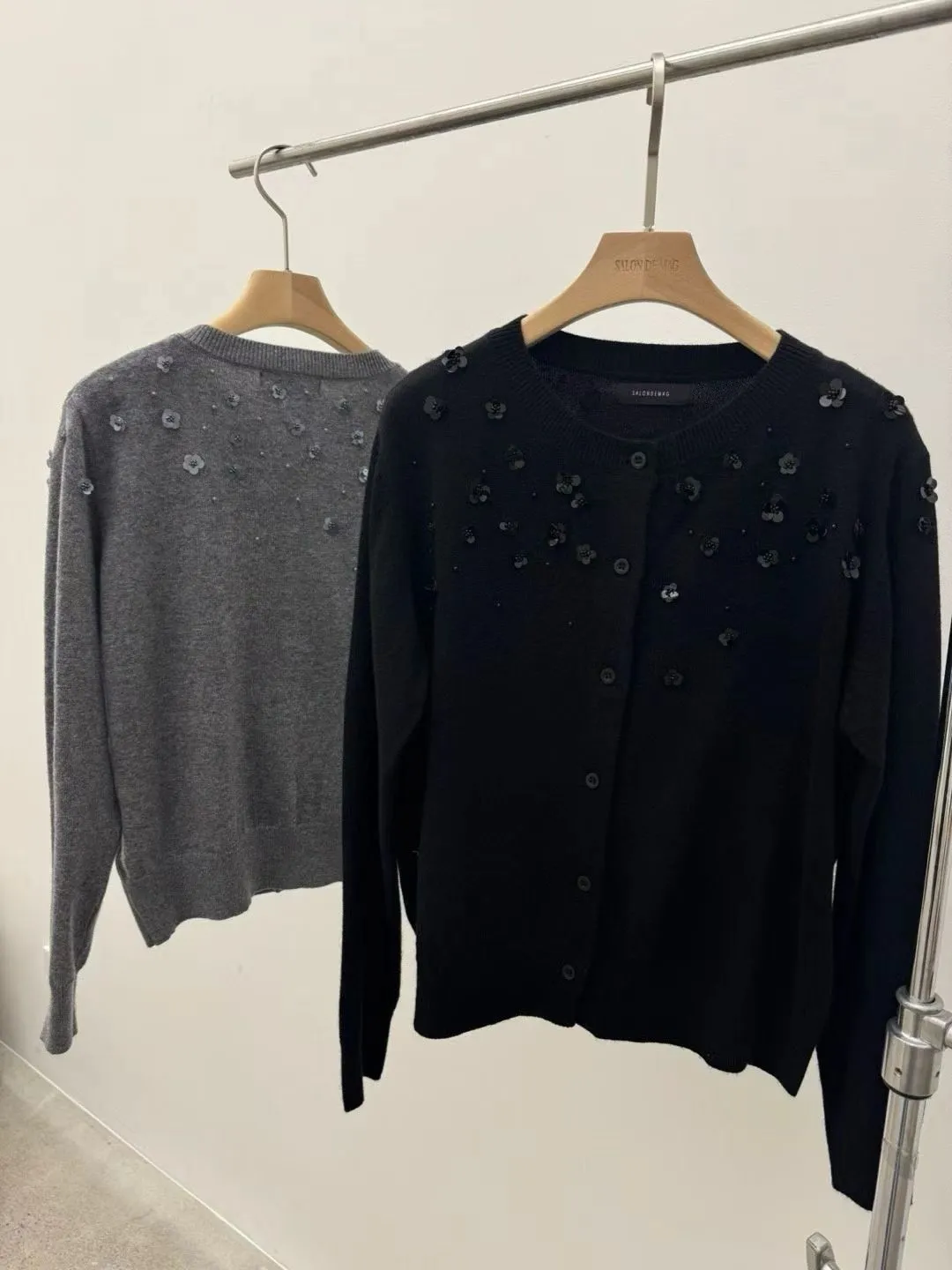 小花珠片點綴針織開襟外套