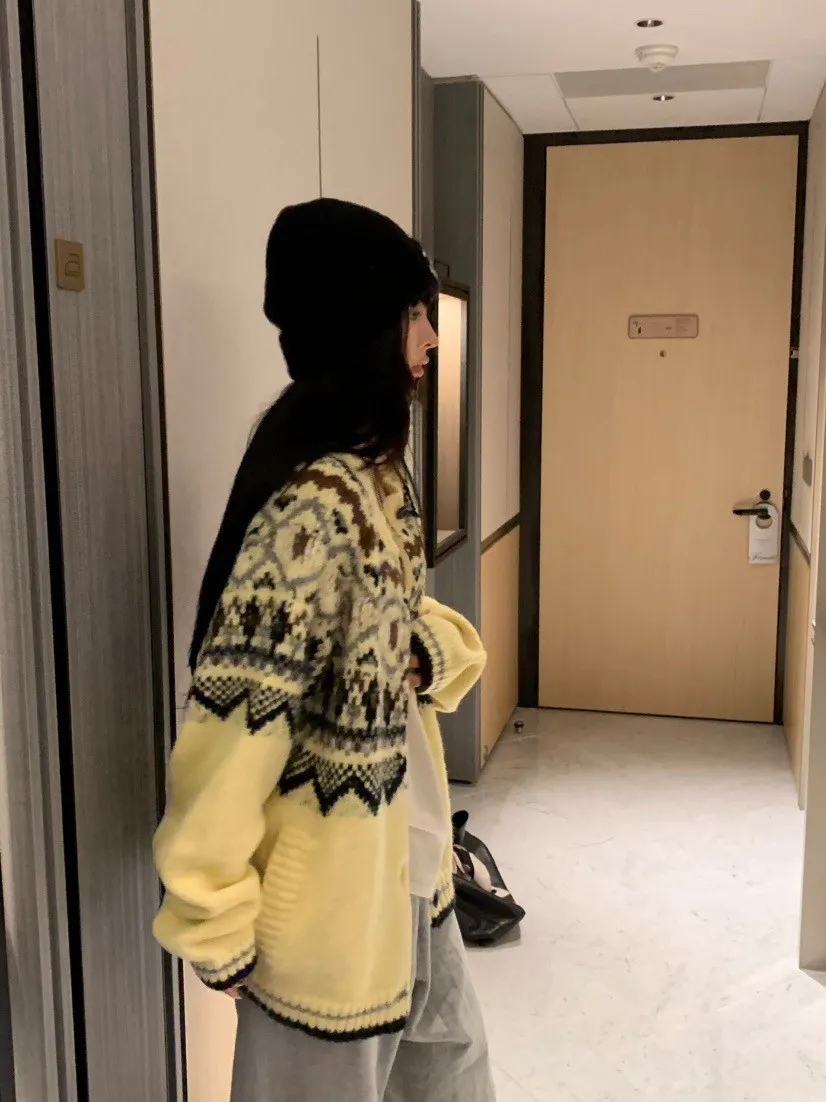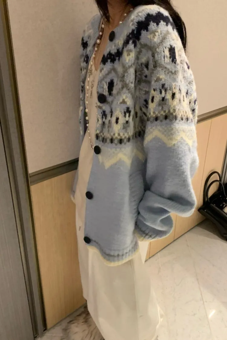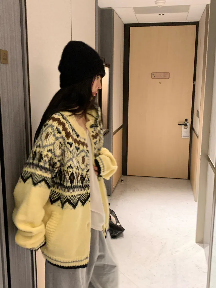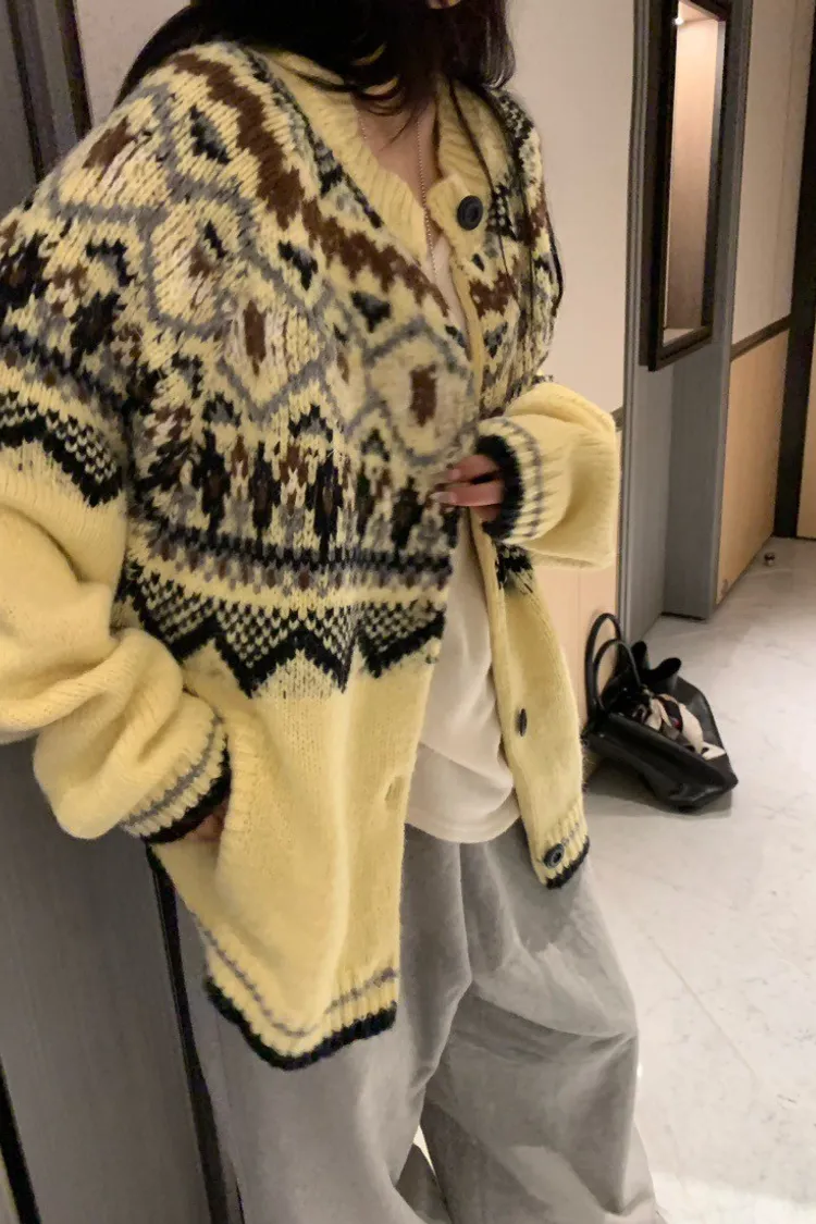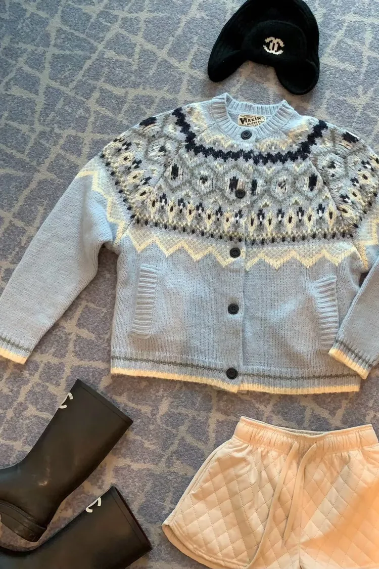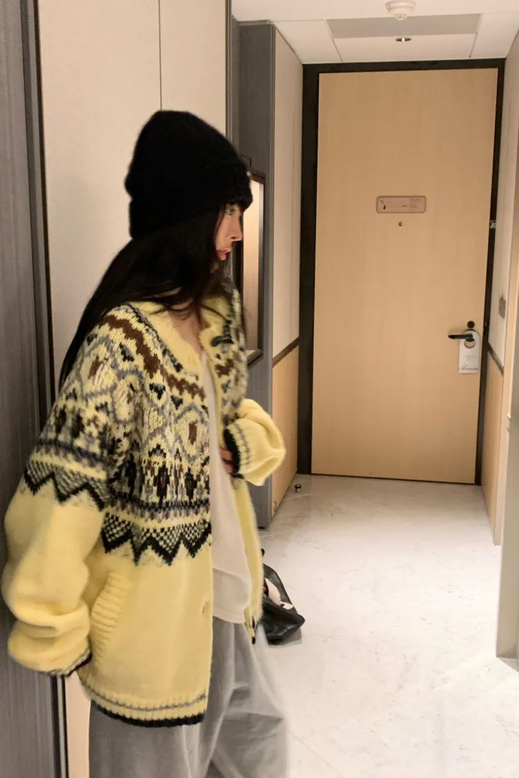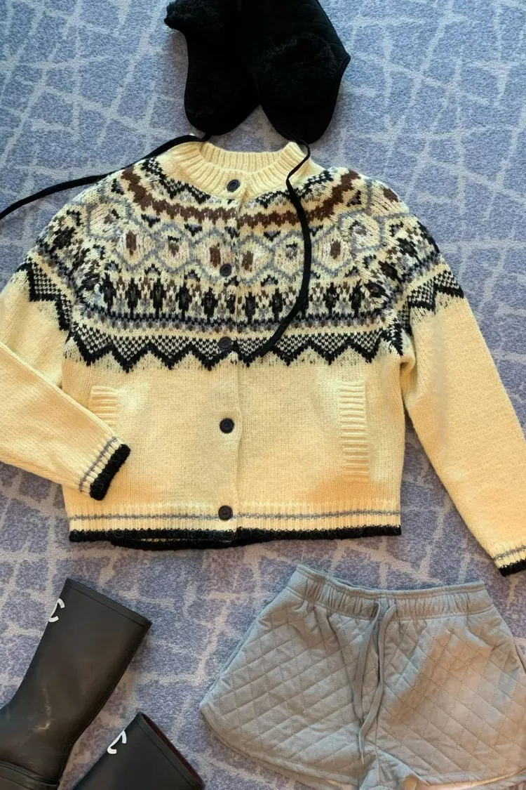 北歐風幾何織紋厚針織開襟外套
