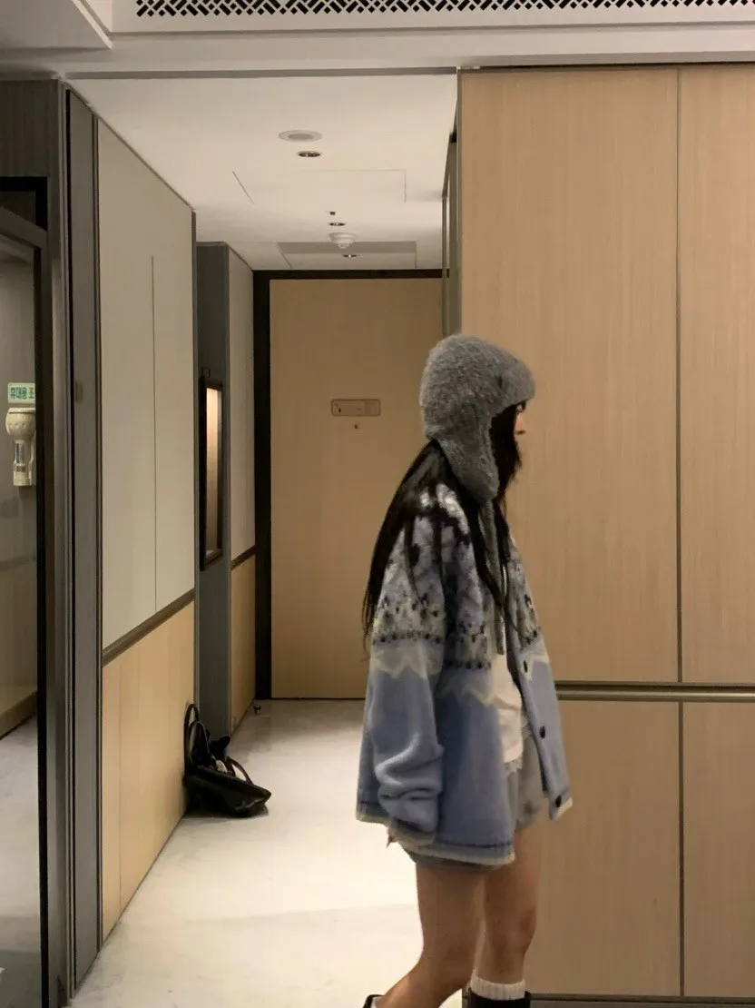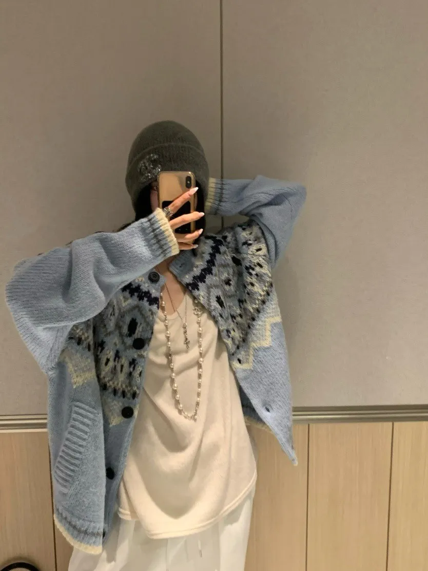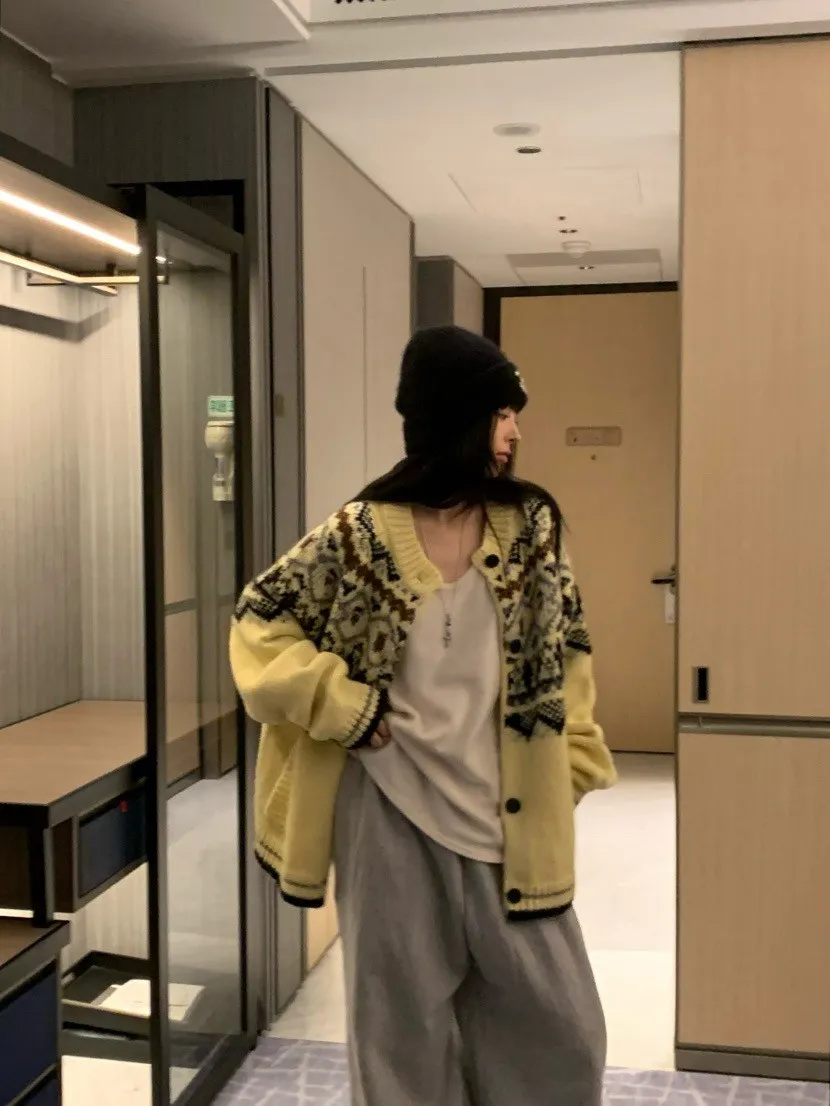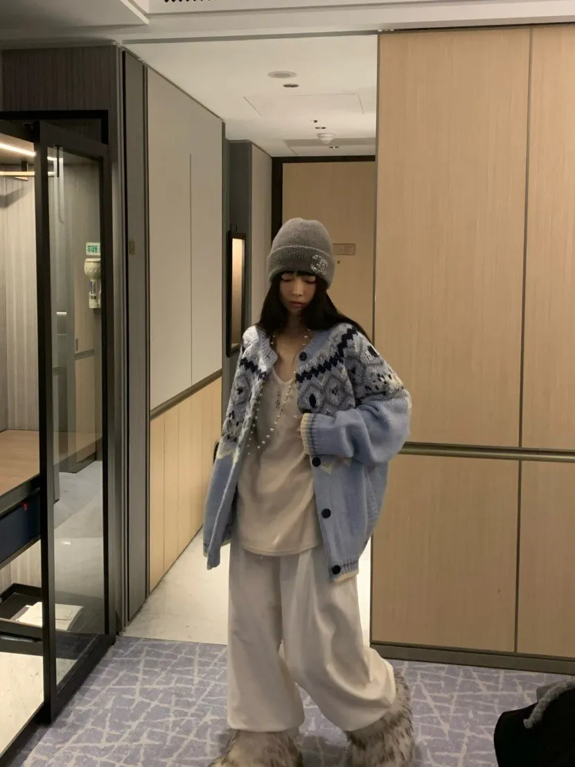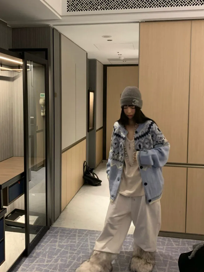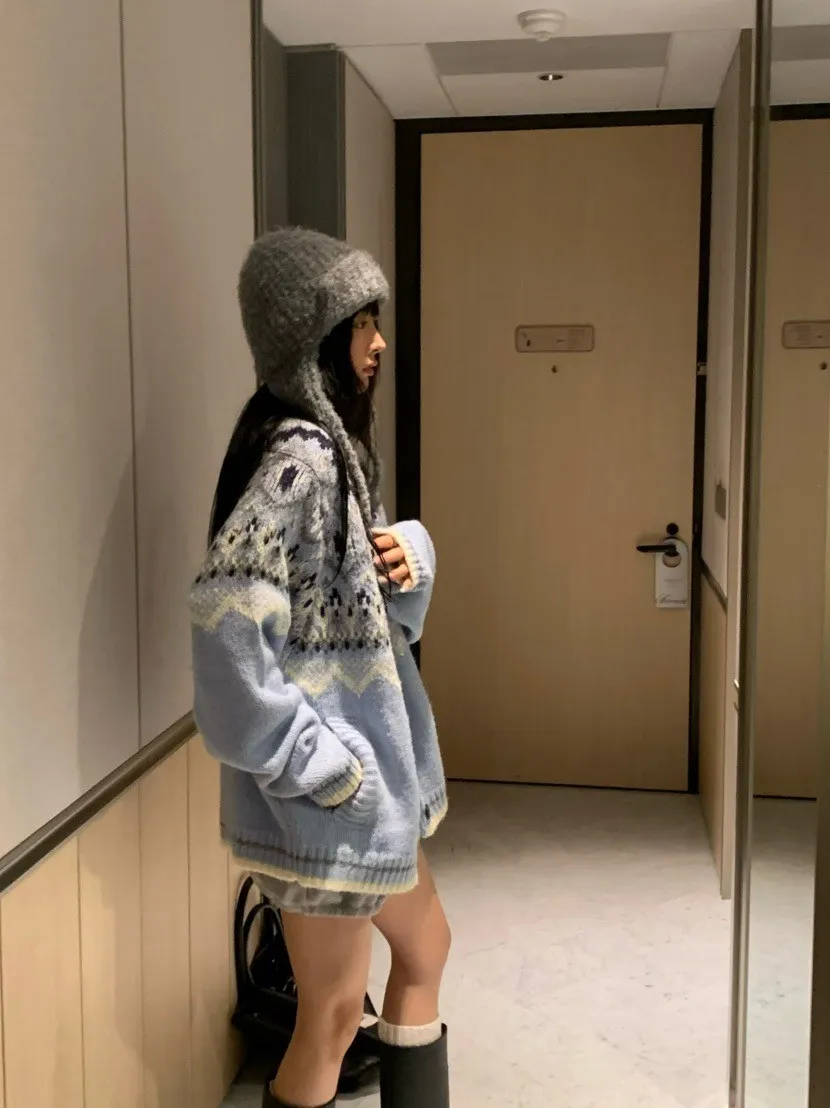 北歐風幾何織紋厚針織開襟外套