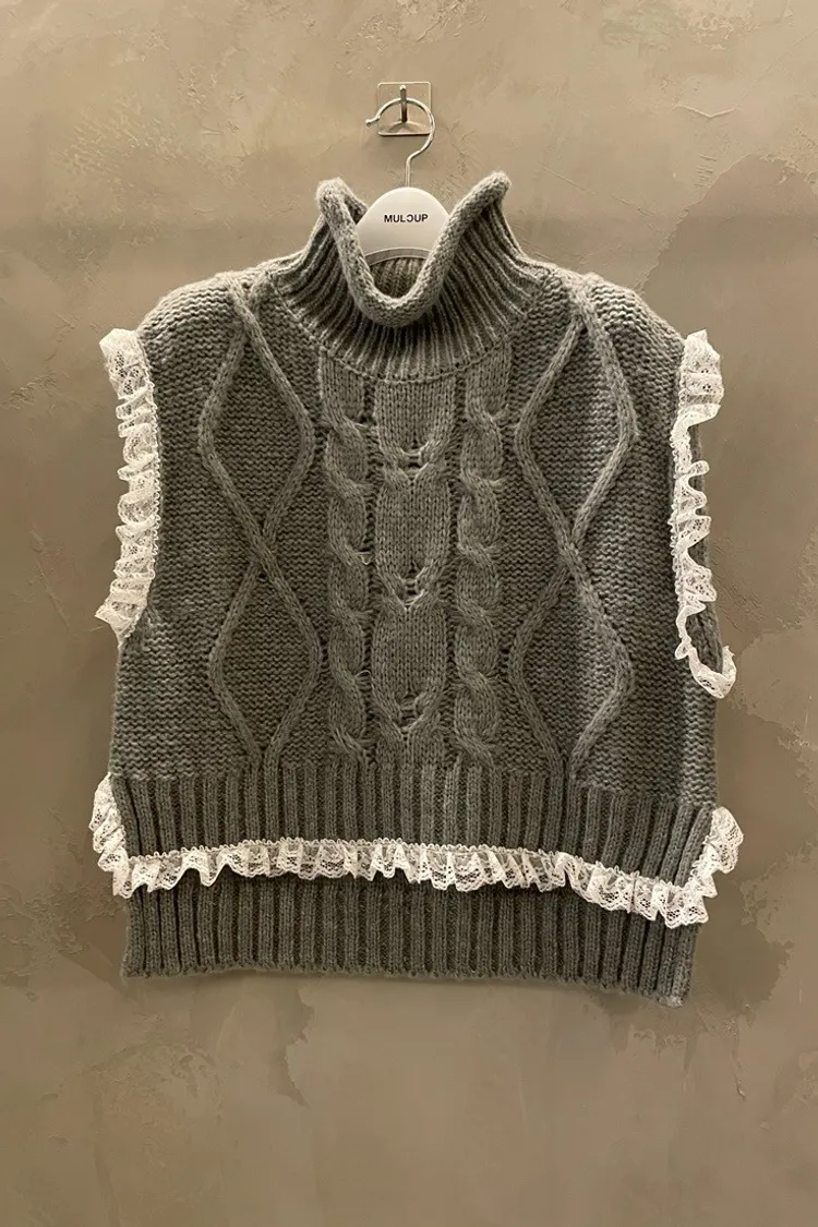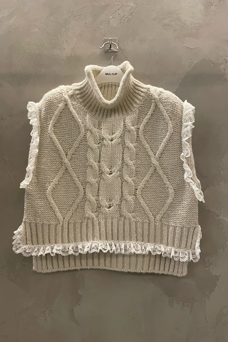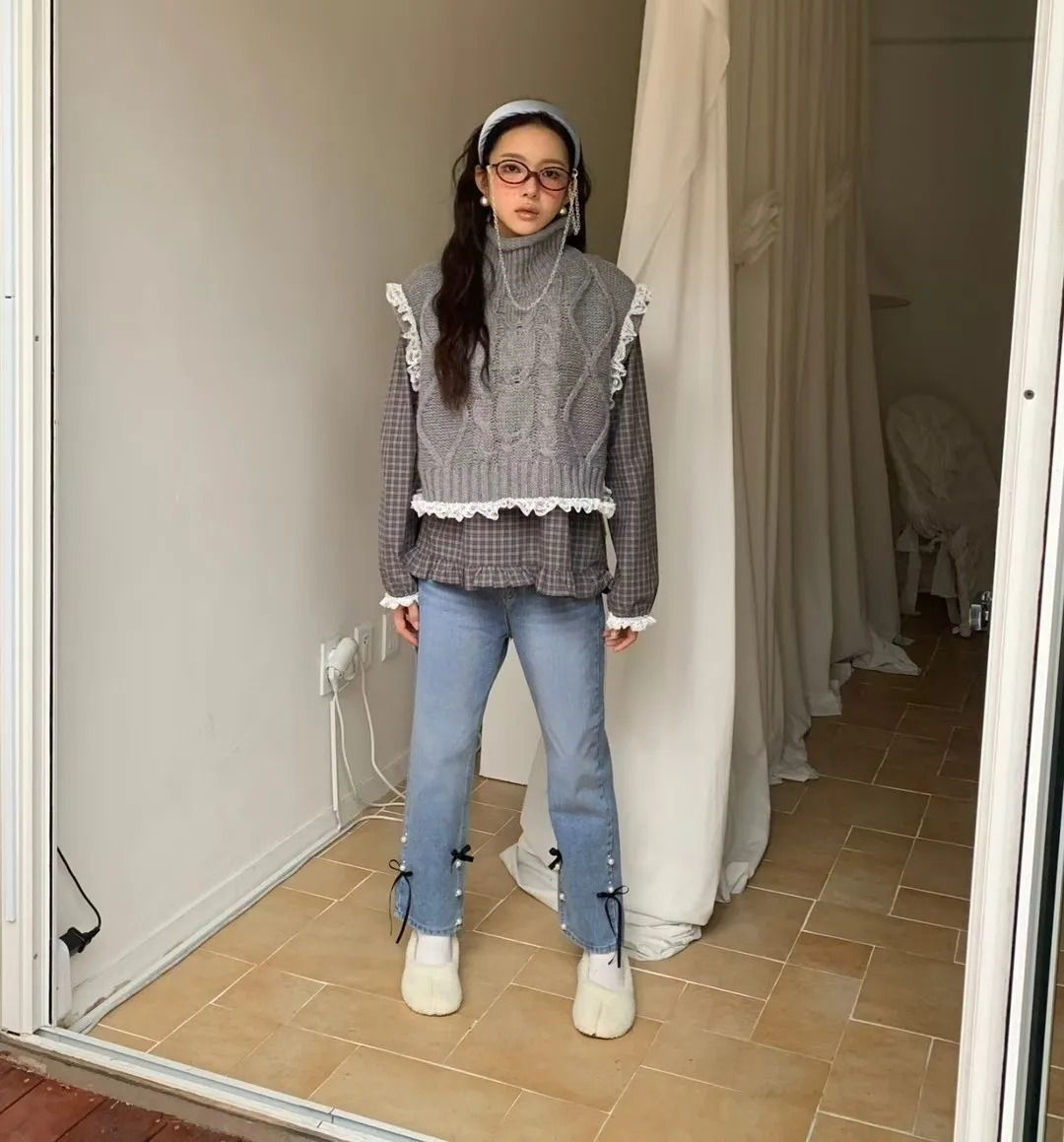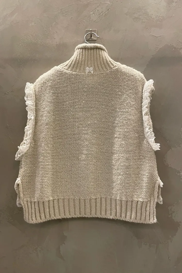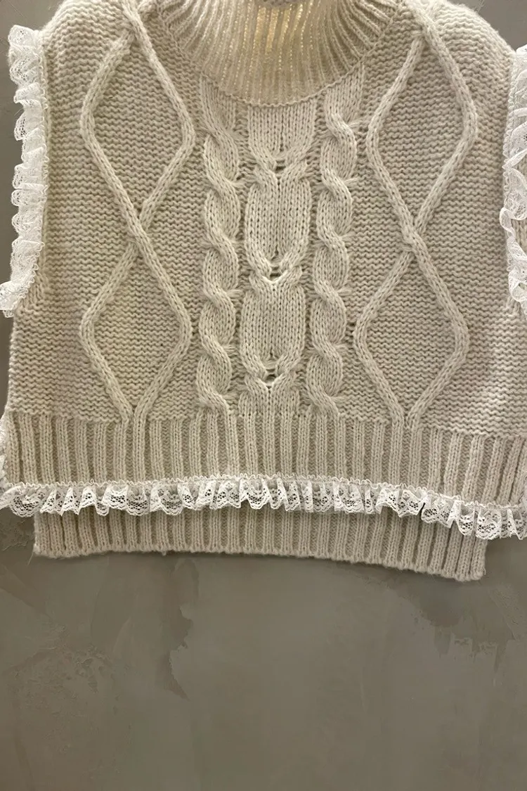蝴蝶結綁帶拼接蕾絲荷葉邊襯衫上衣