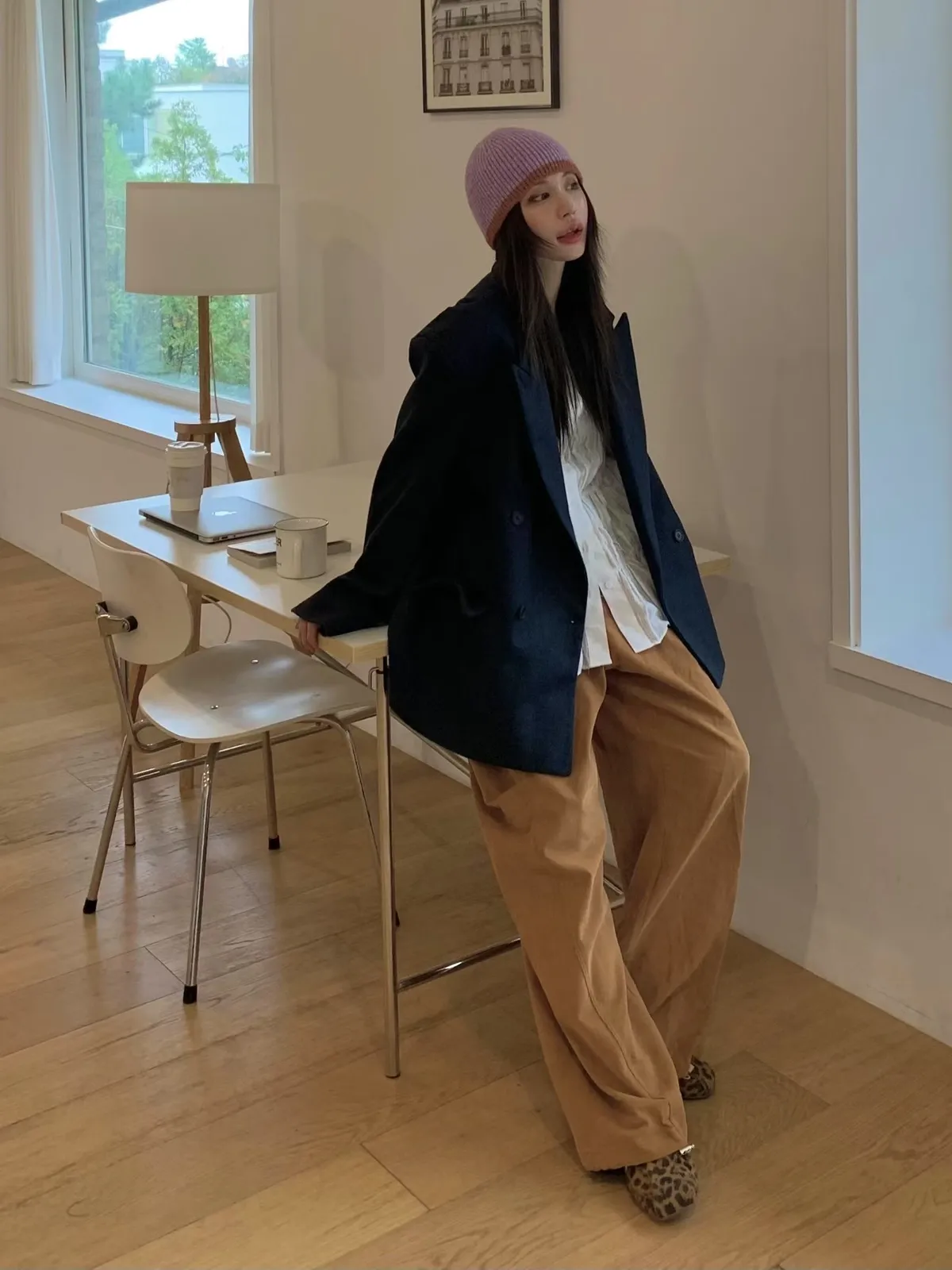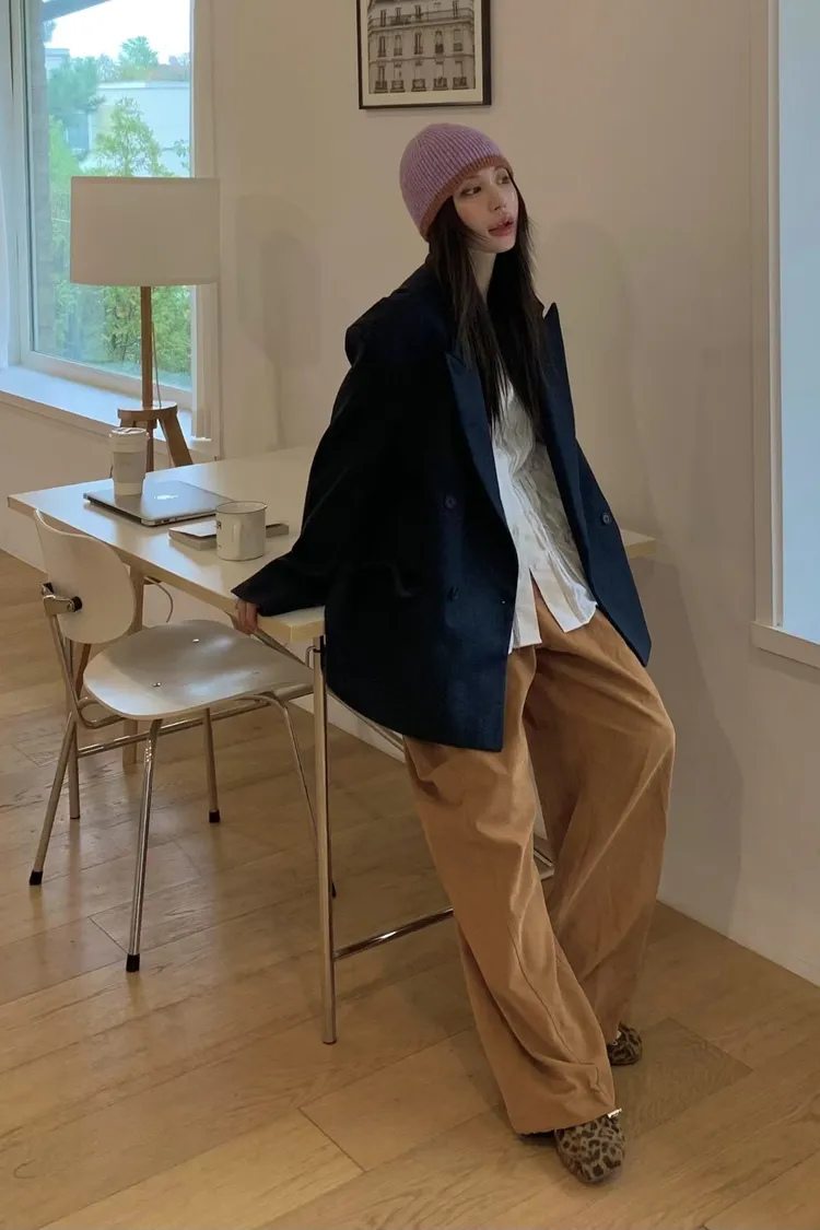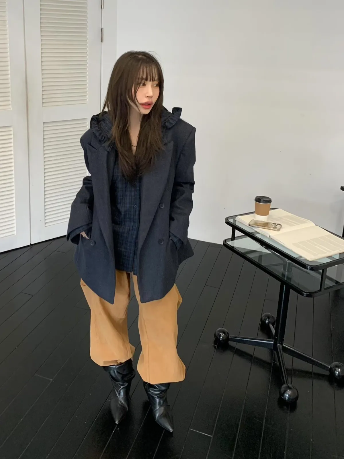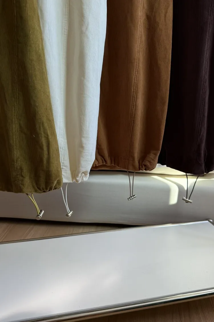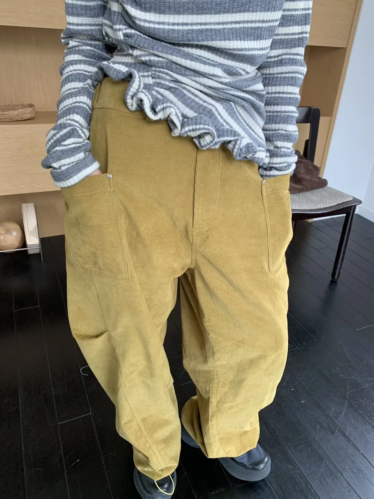 不對稱抓皺抽皺條紋棉上衣(下擺波浪設計)