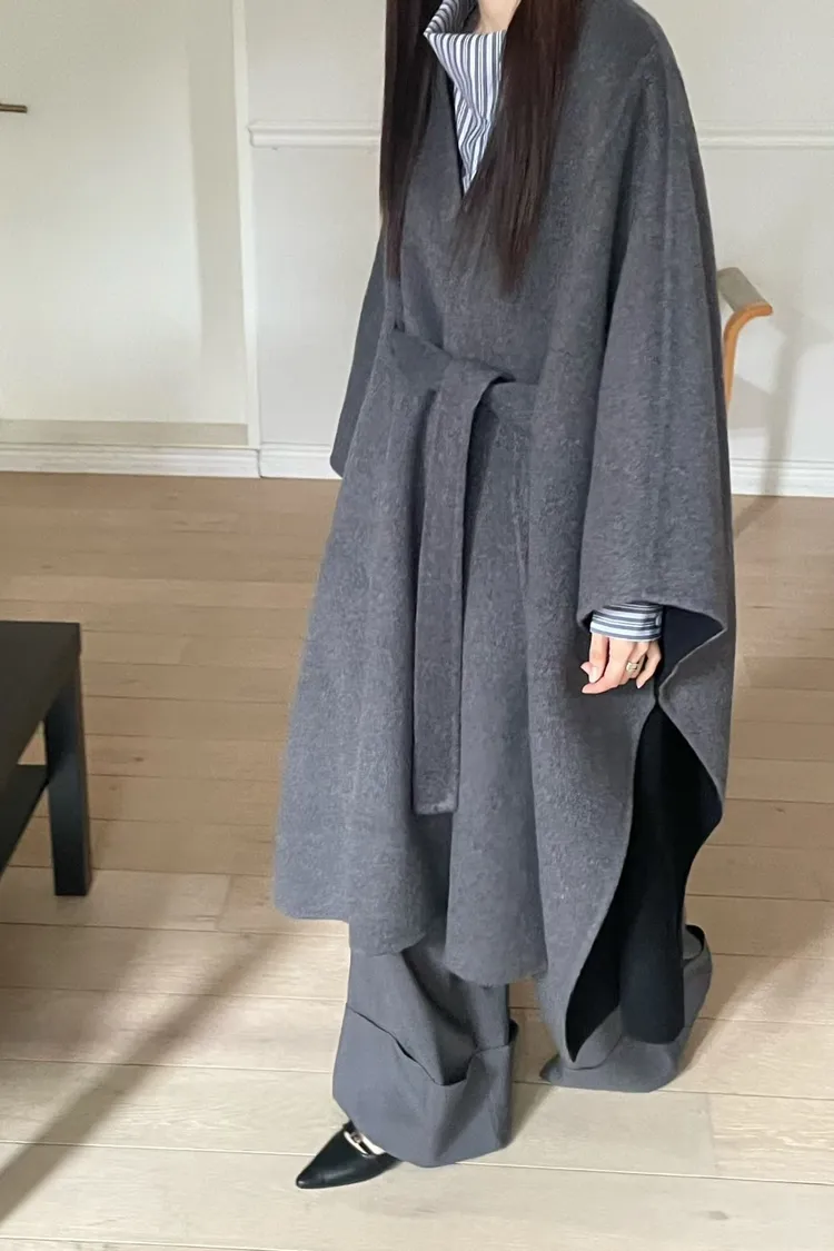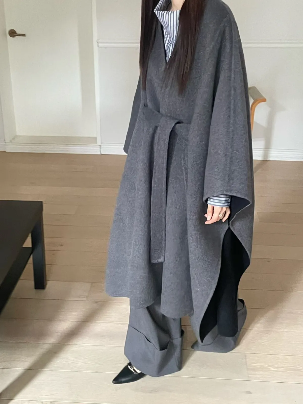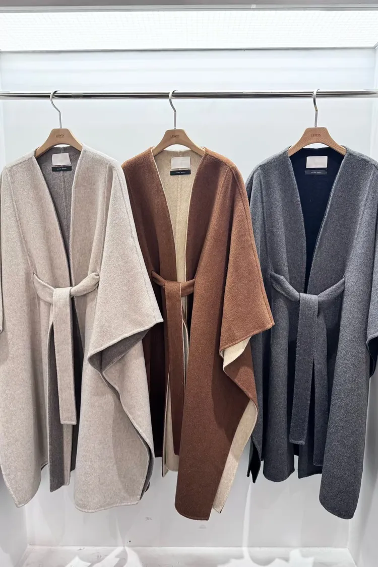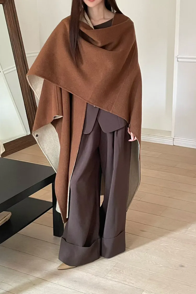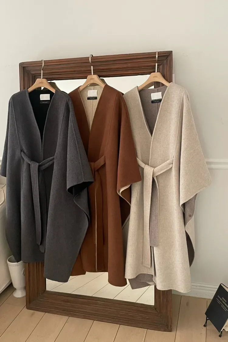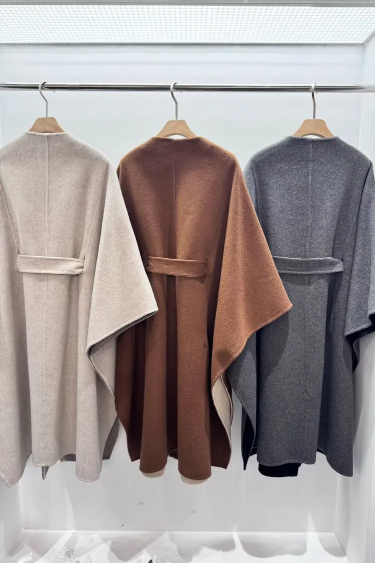 90%羊毛雙面拼接斗篷外套(附綁帶)