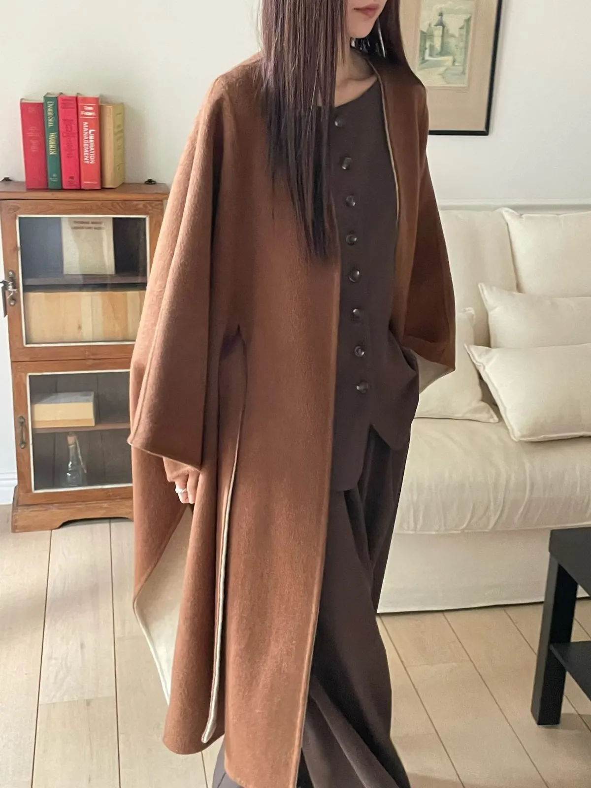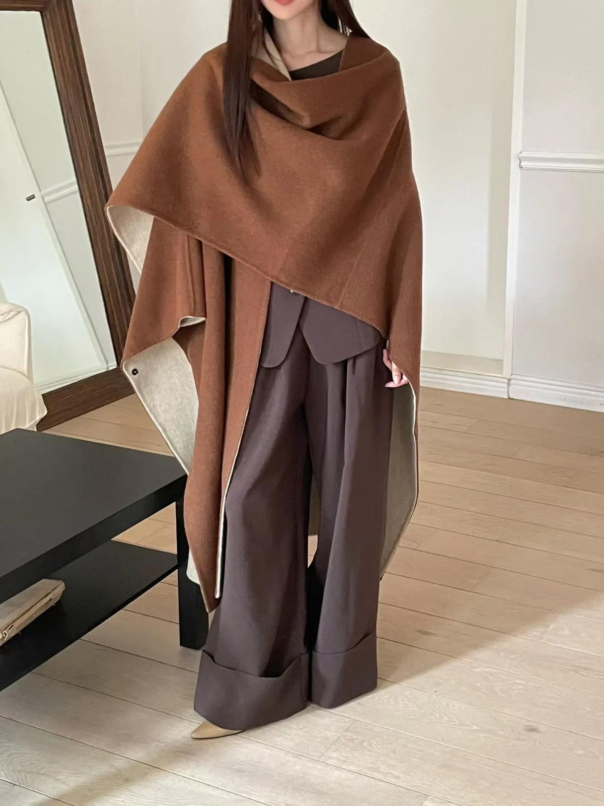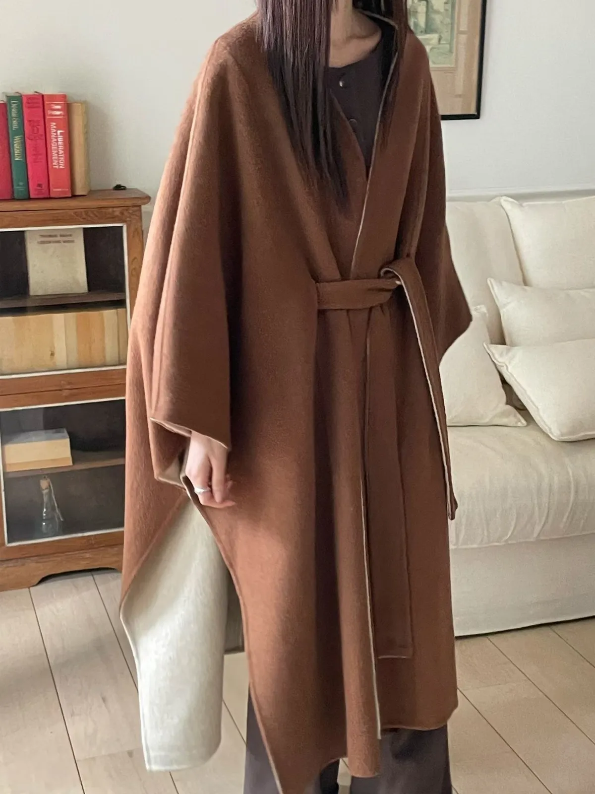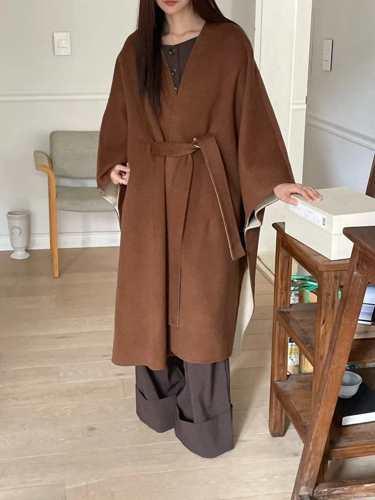90%羊毛雙面拼接斗篷外套(附綁帶)