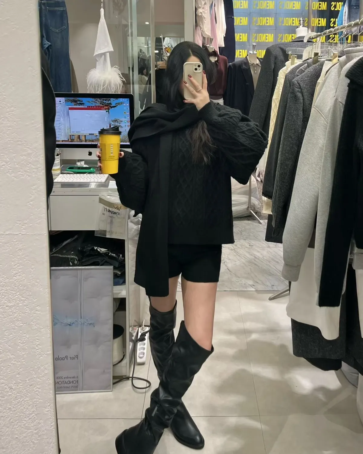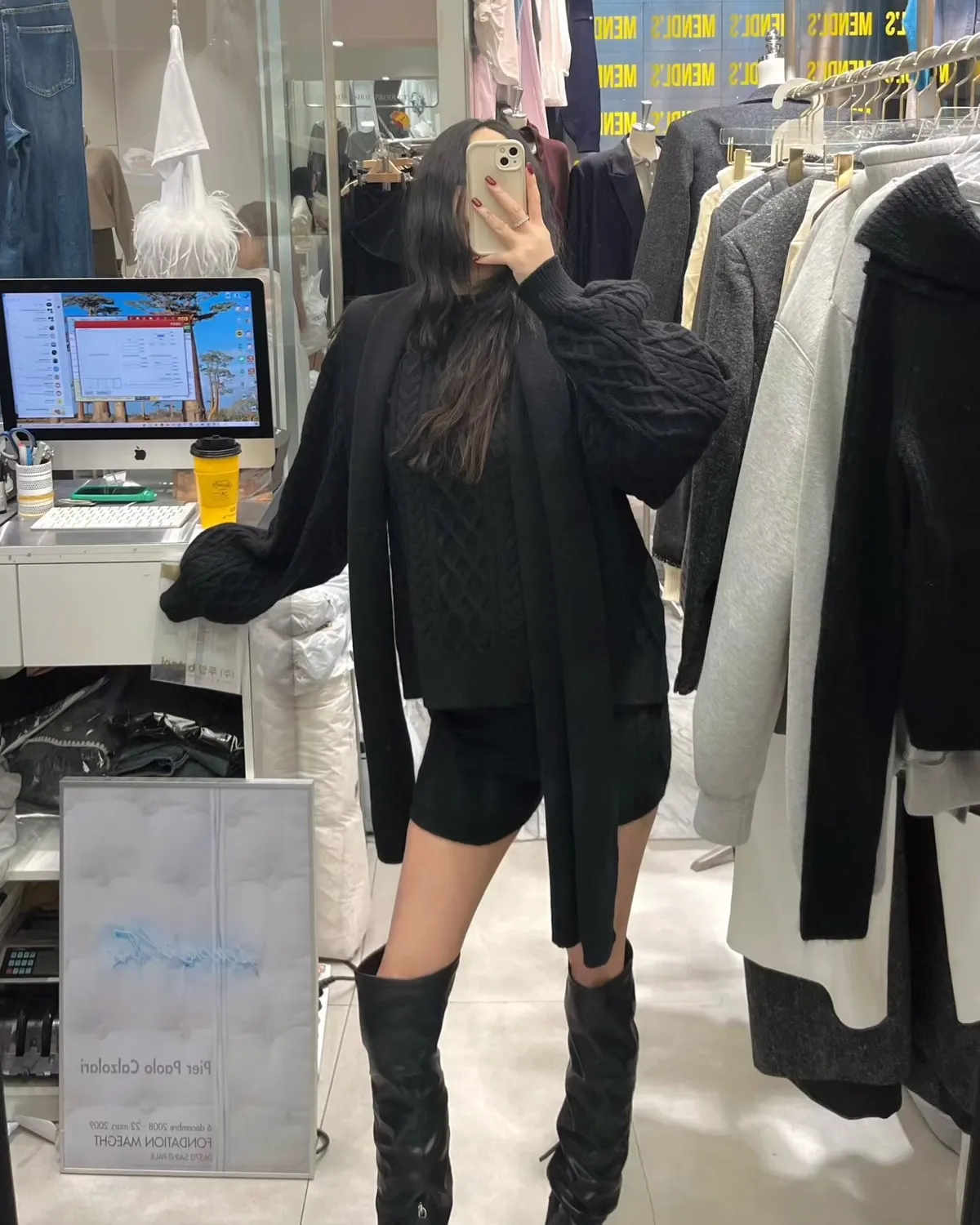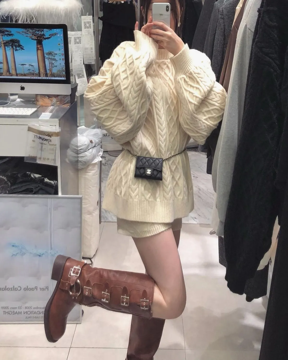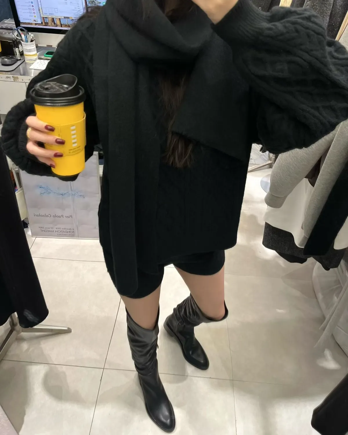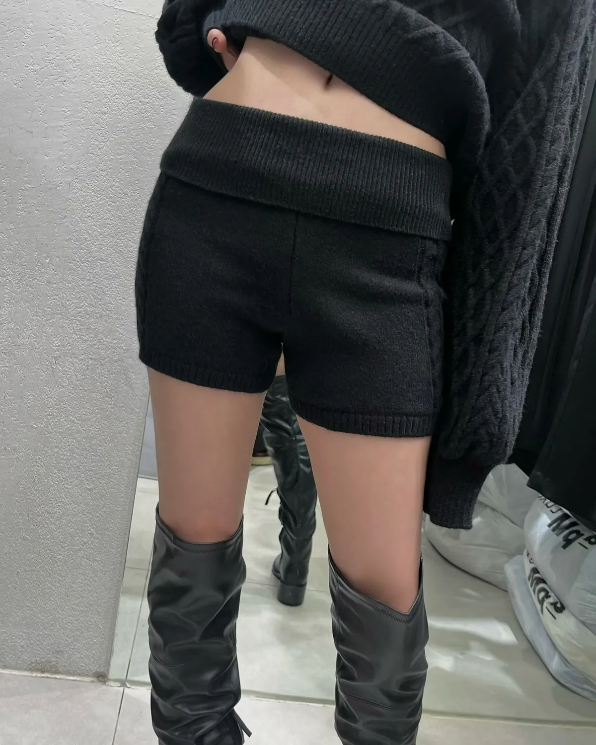 慵懶感麻花毛衣+短褲+同色圍巾套裝