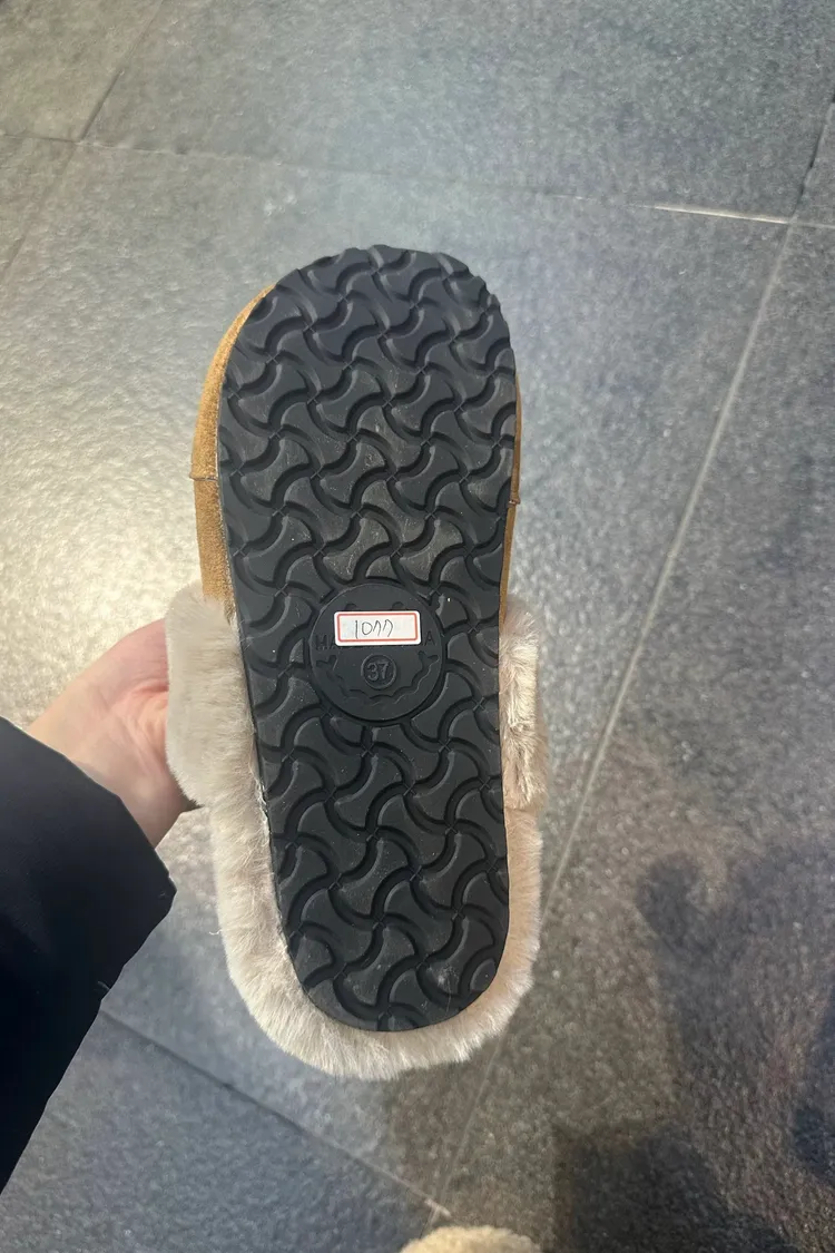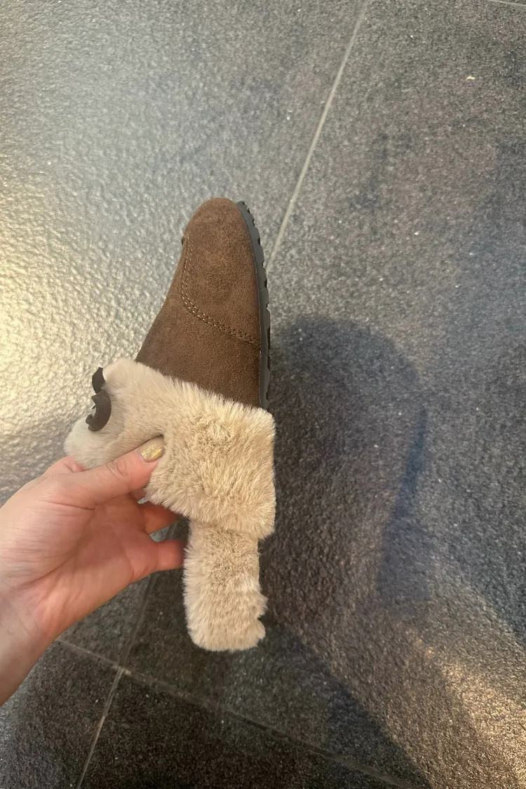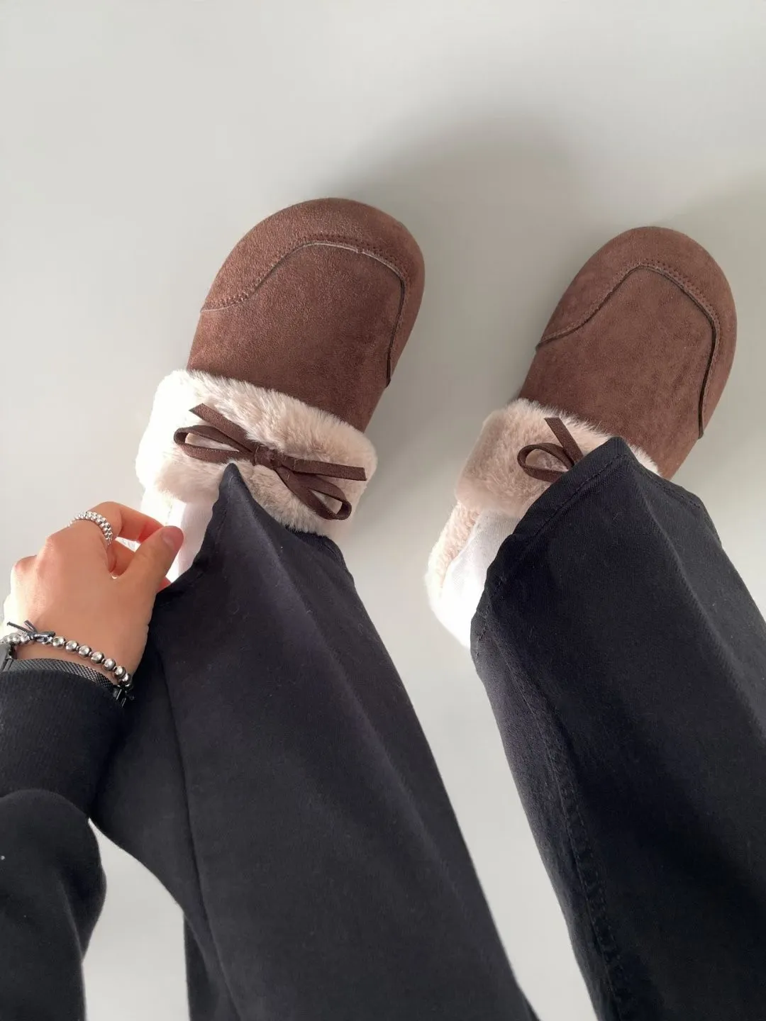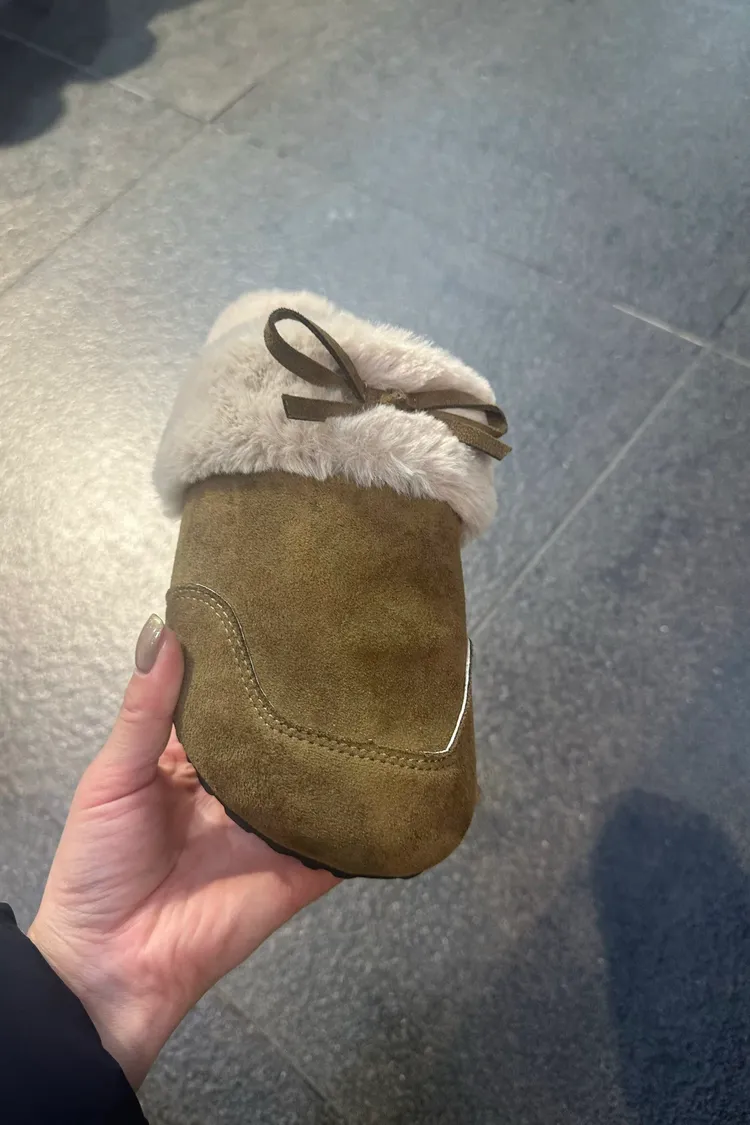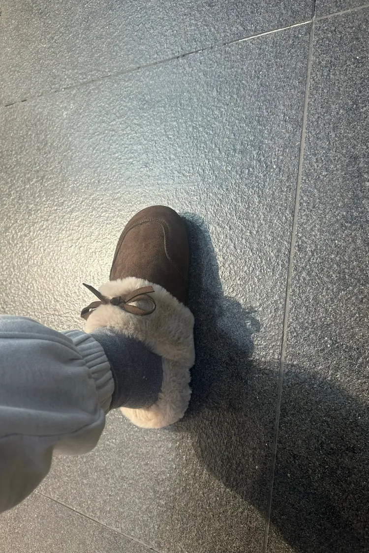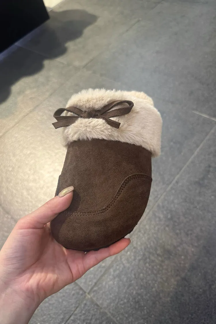 柔軟麂皮拼接蝴蝶結毛毛拖