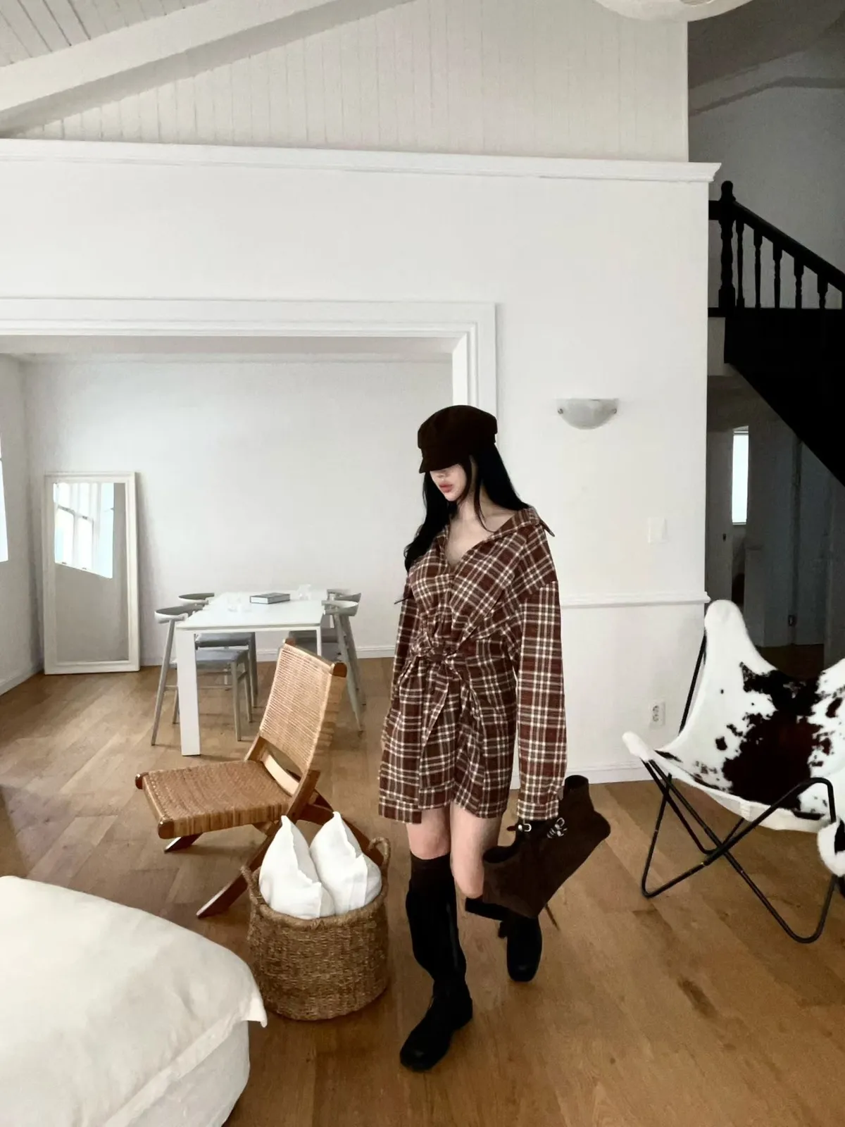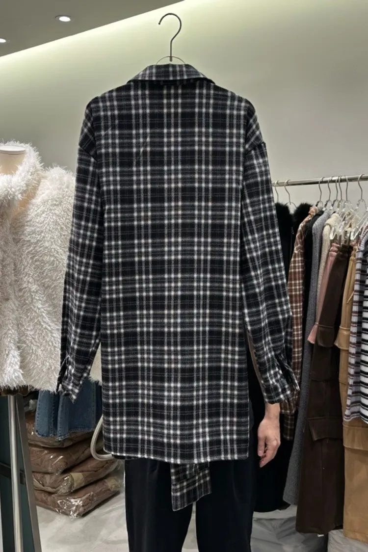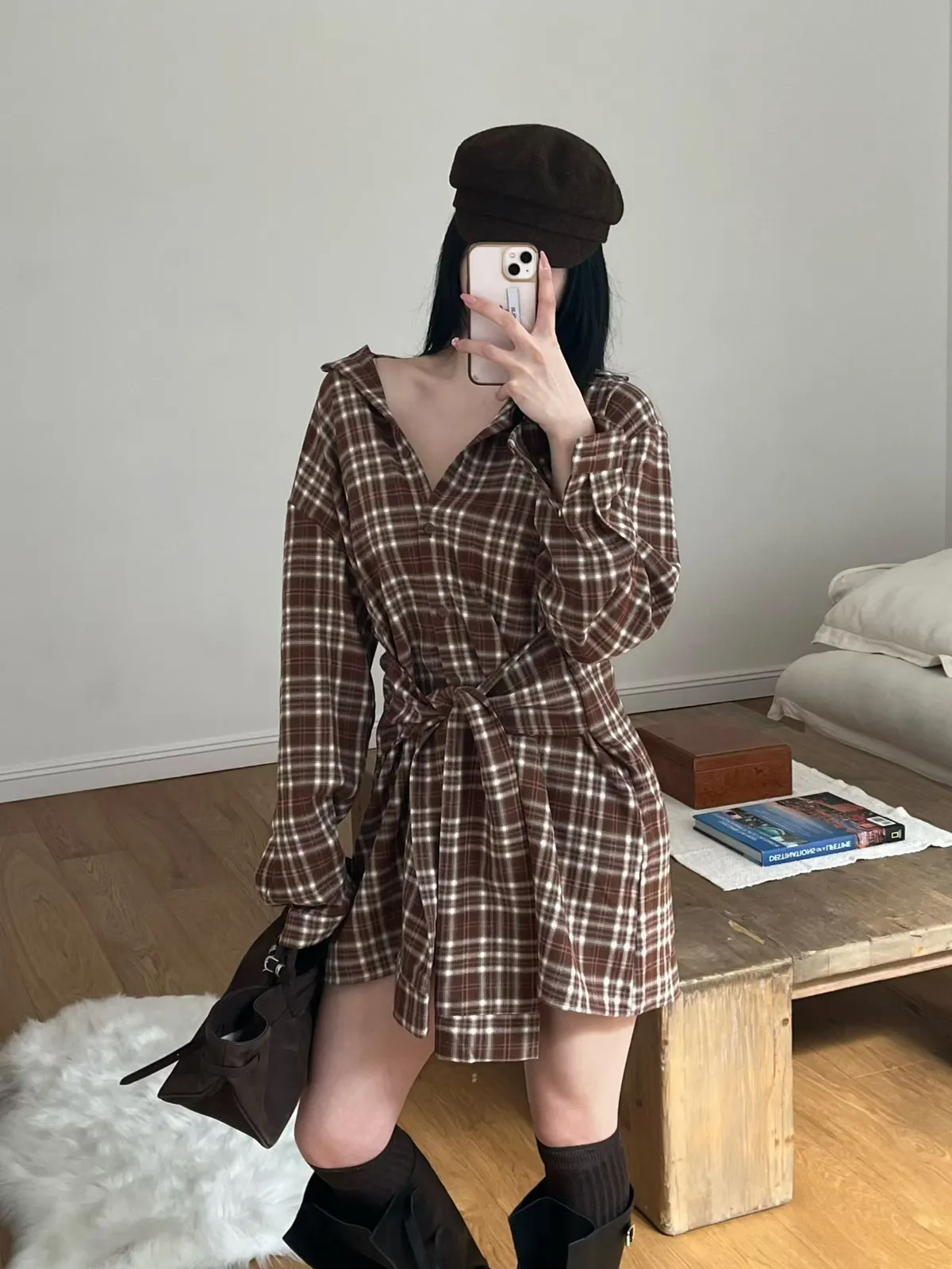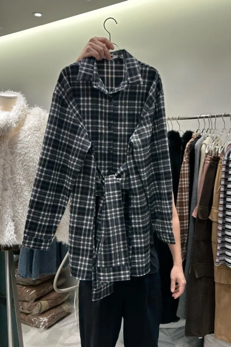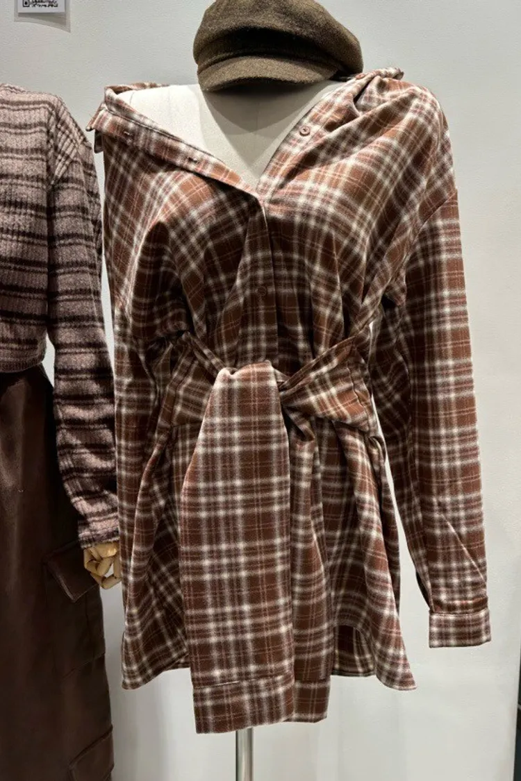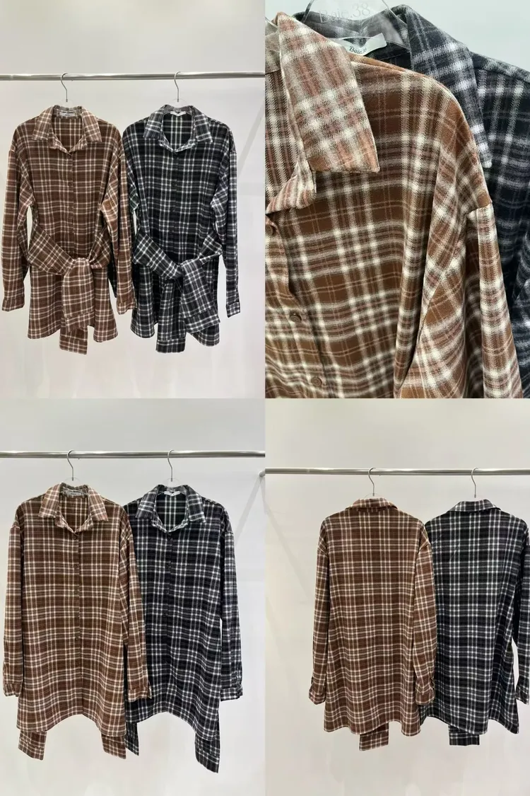 格紋綁帶襯衫連身裙