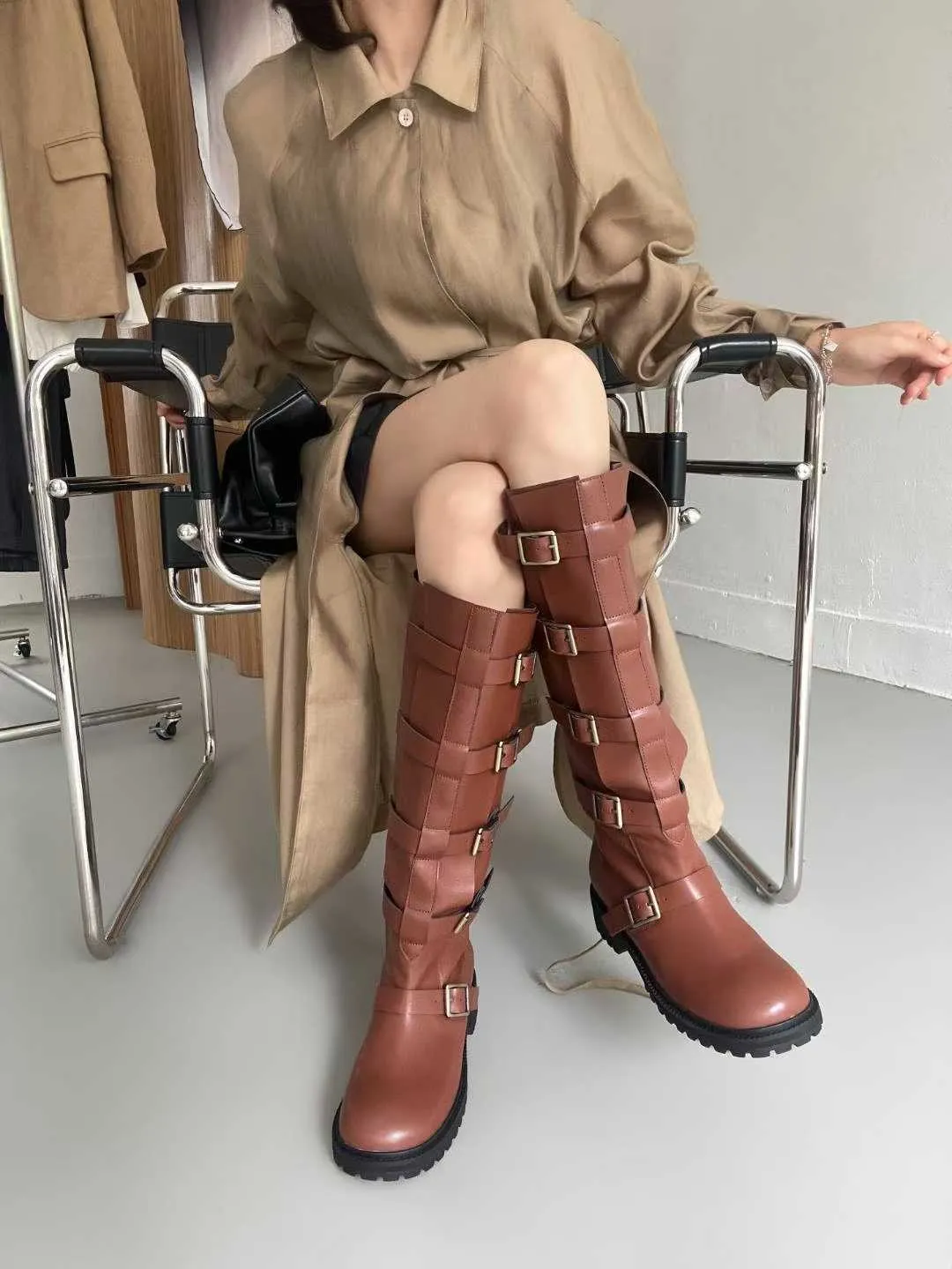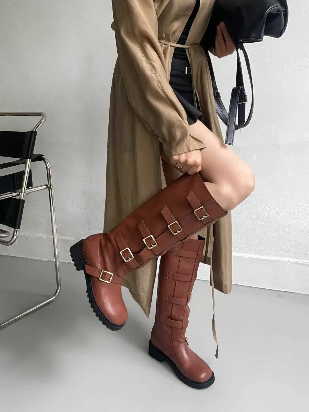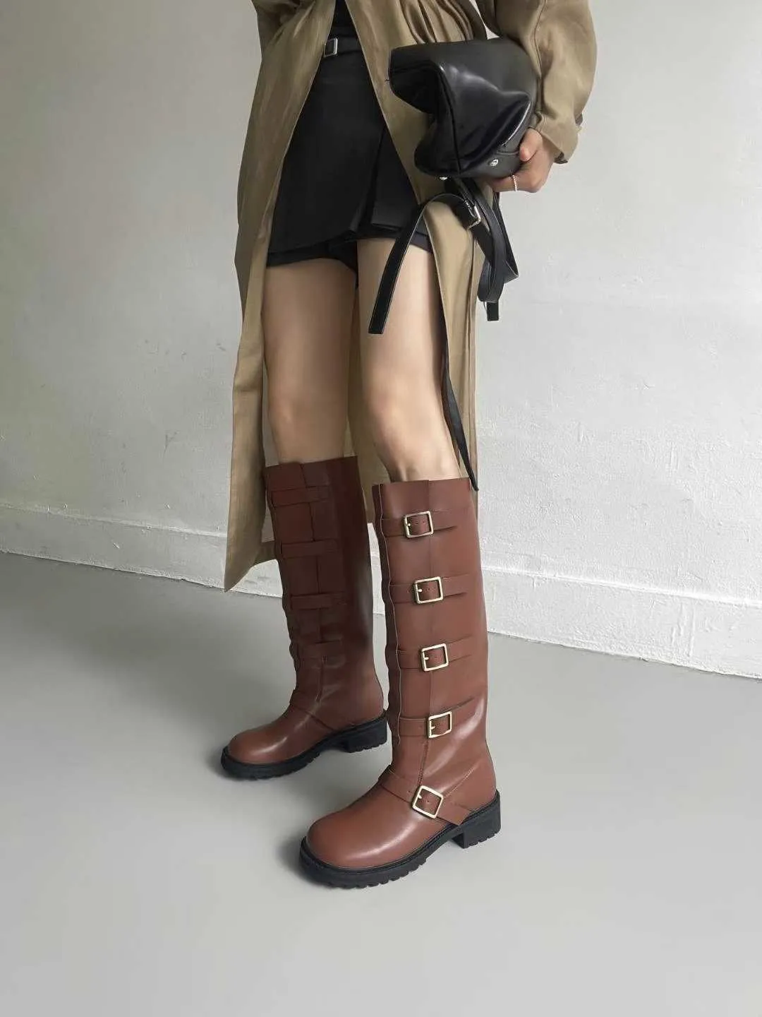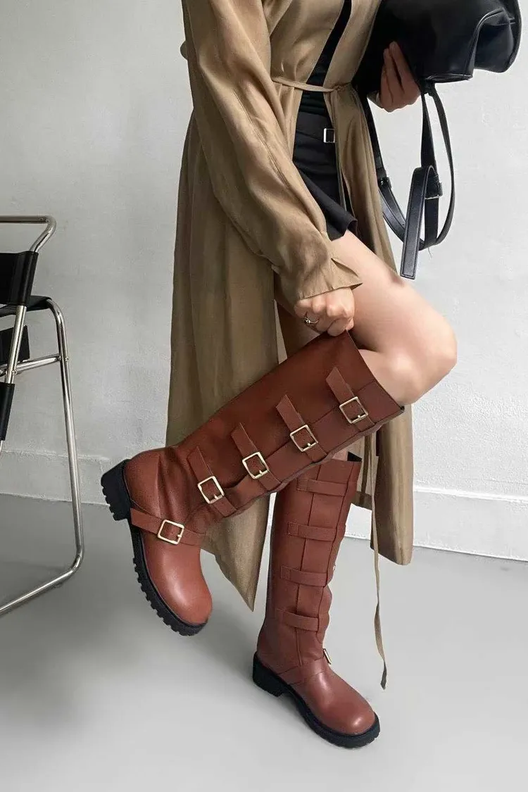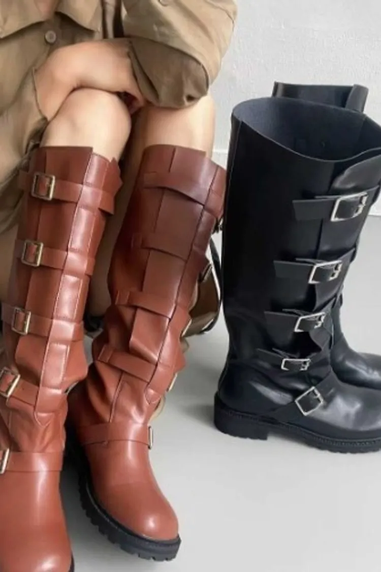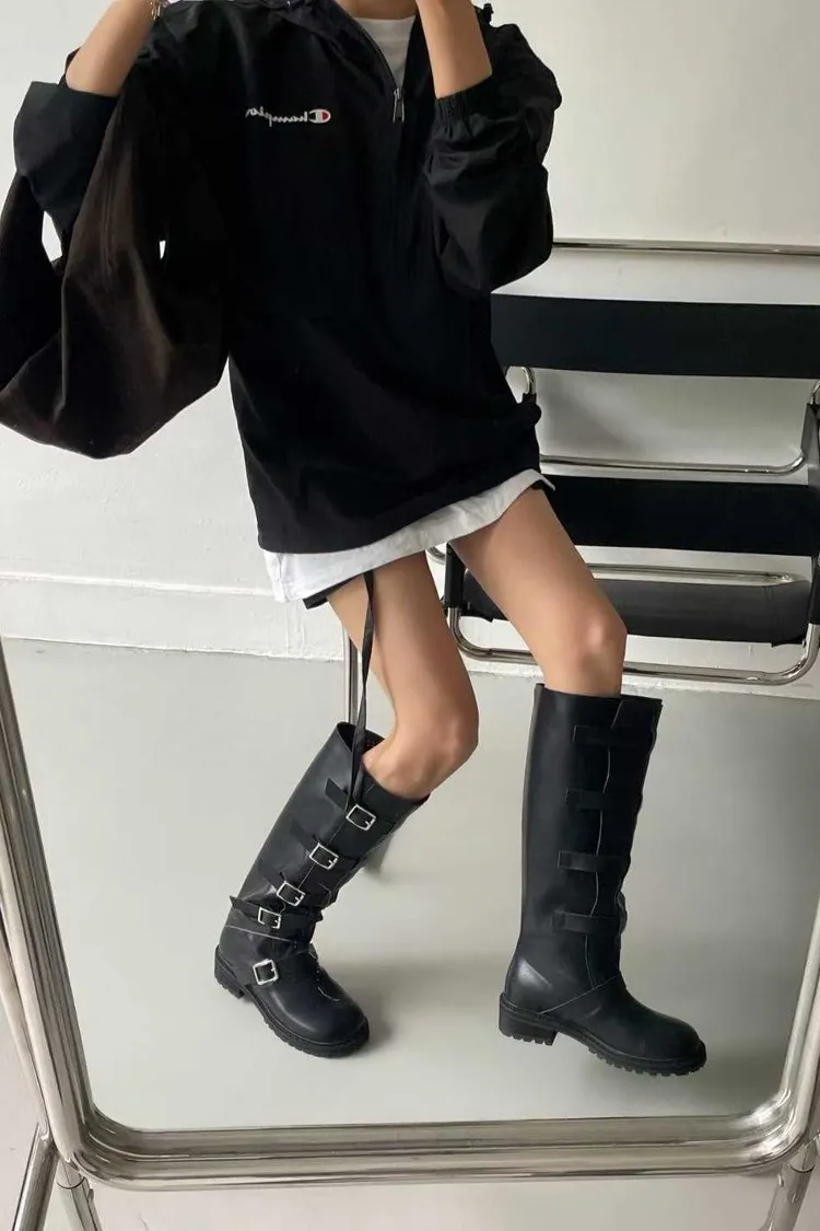 多釦皮革騎士靴