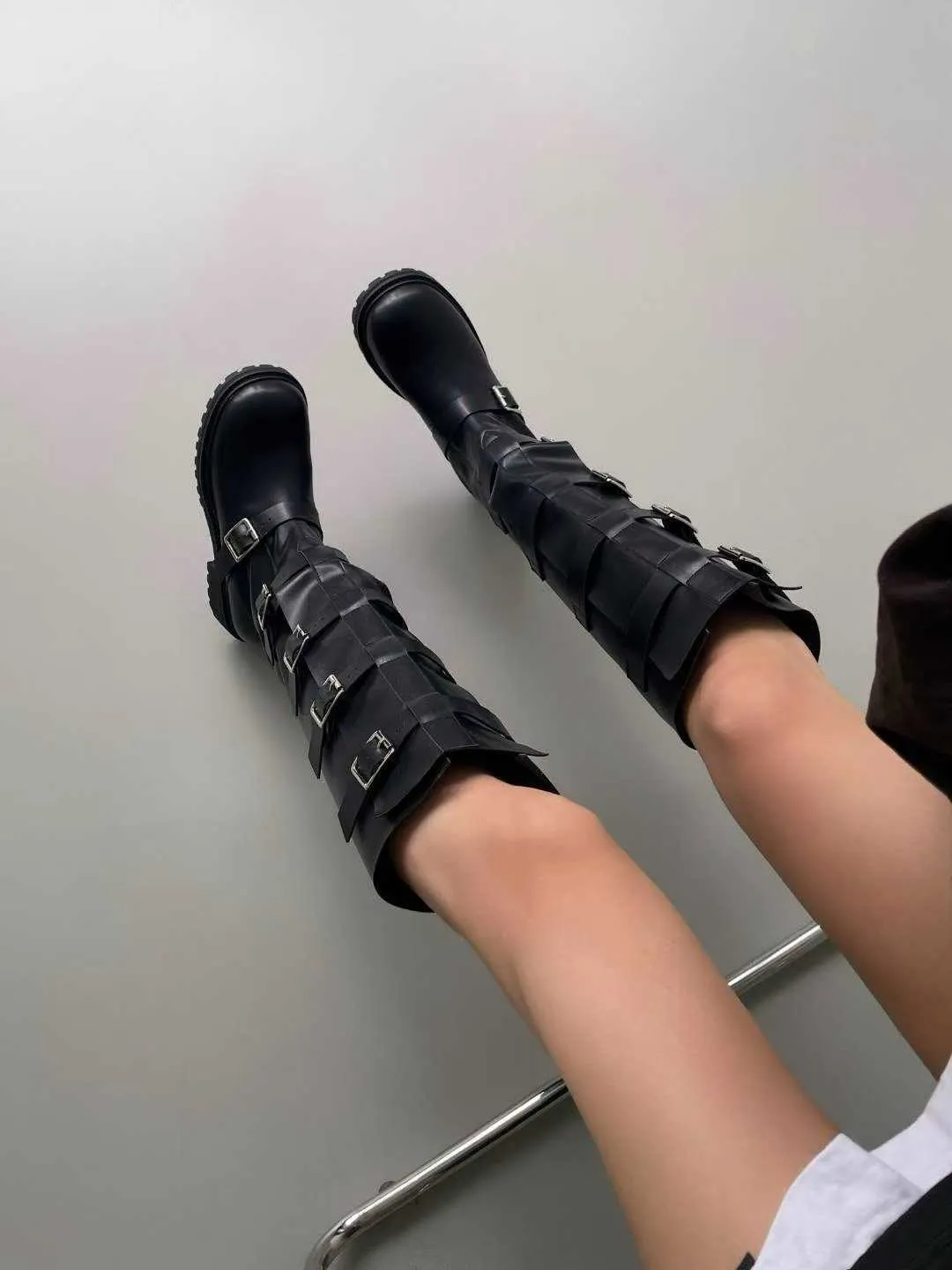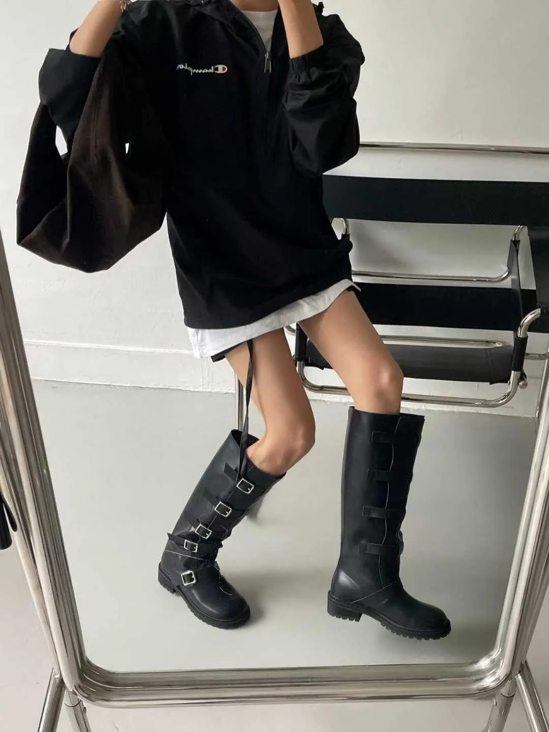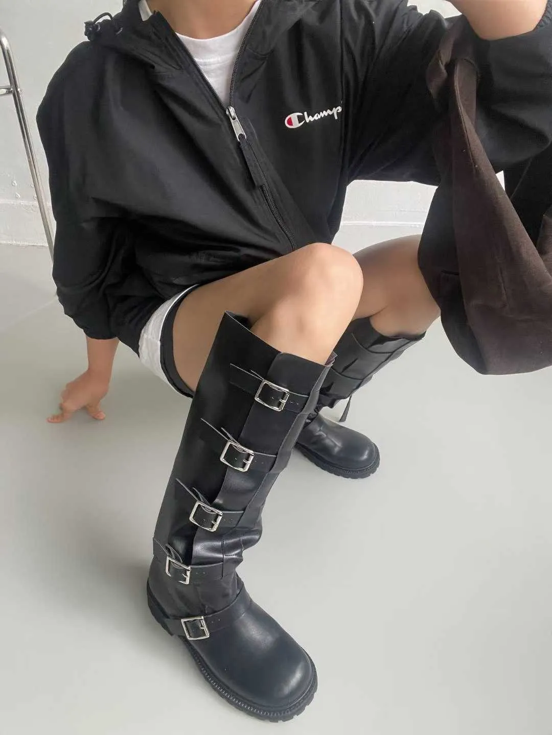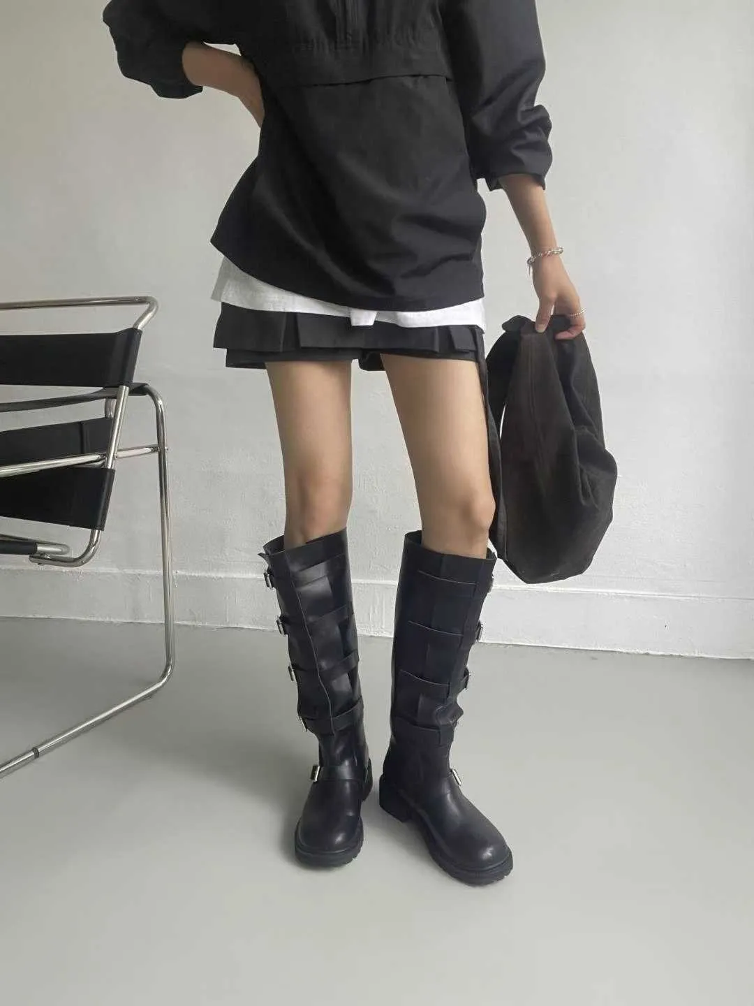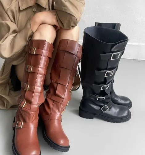 多釦皮革騎士靴