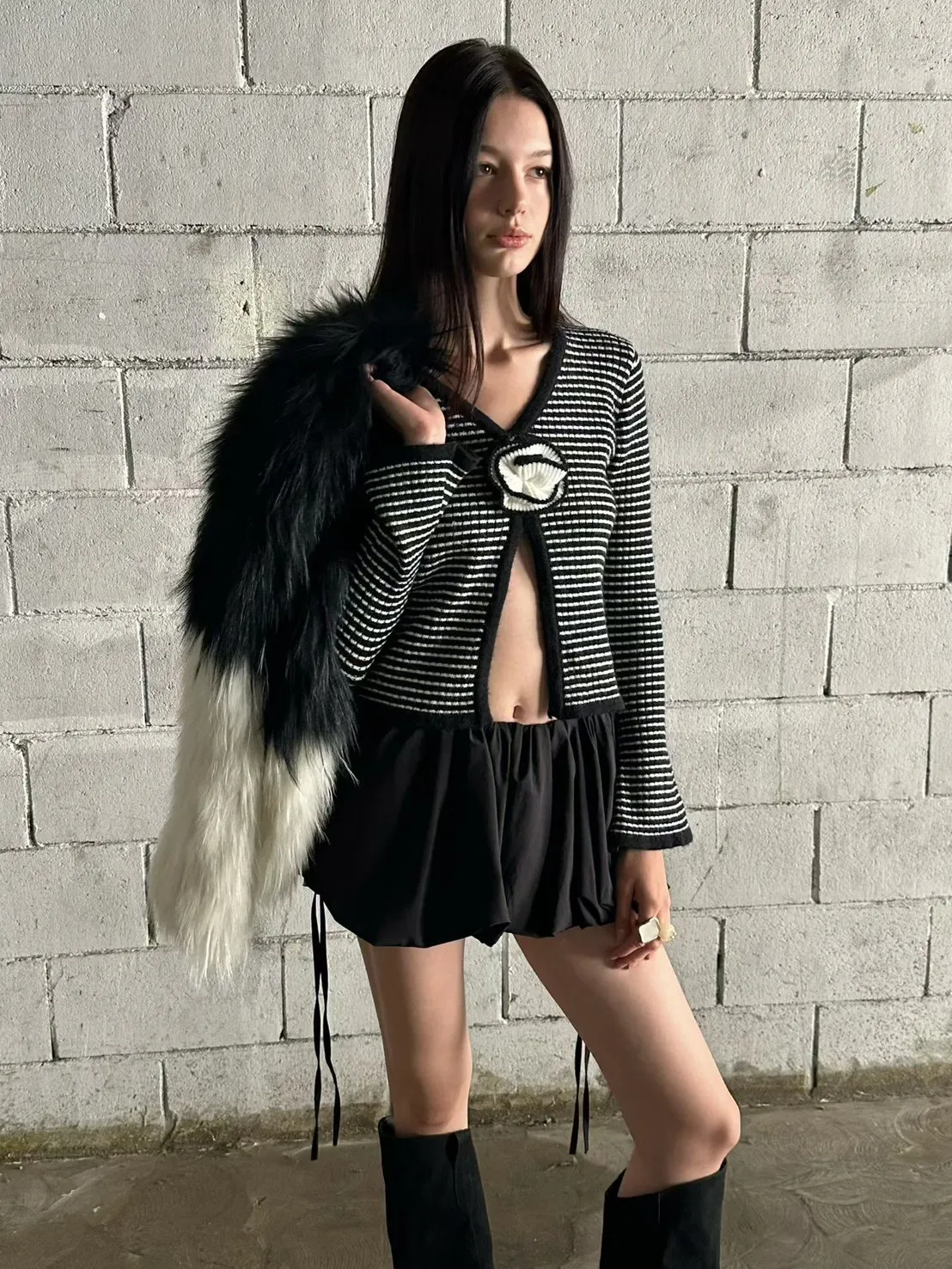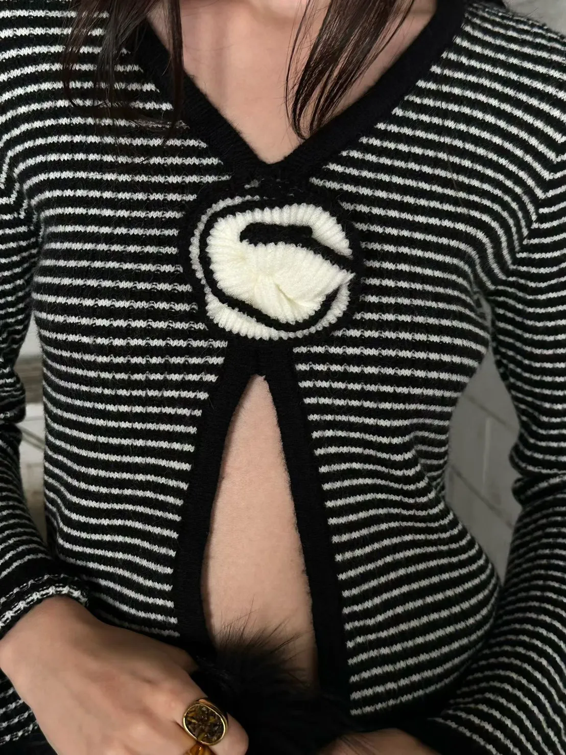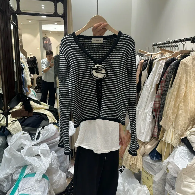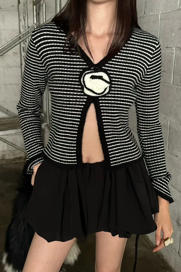 線條花朵條紋外套