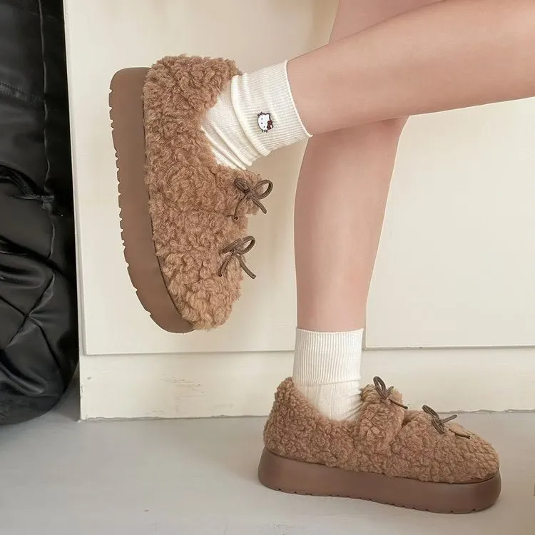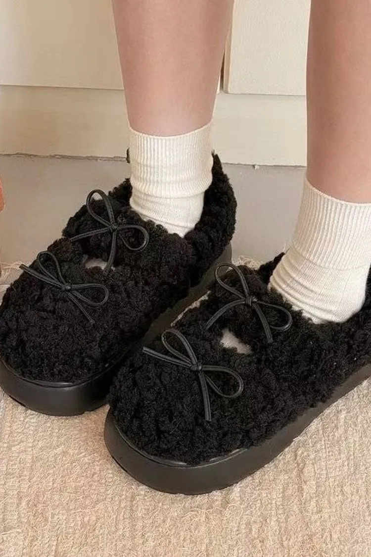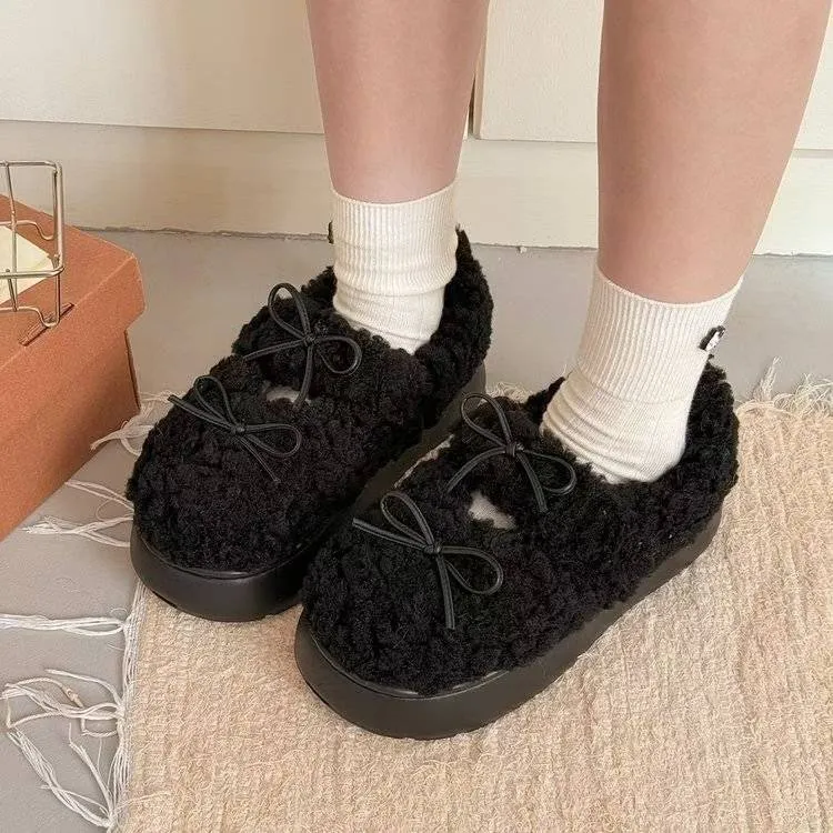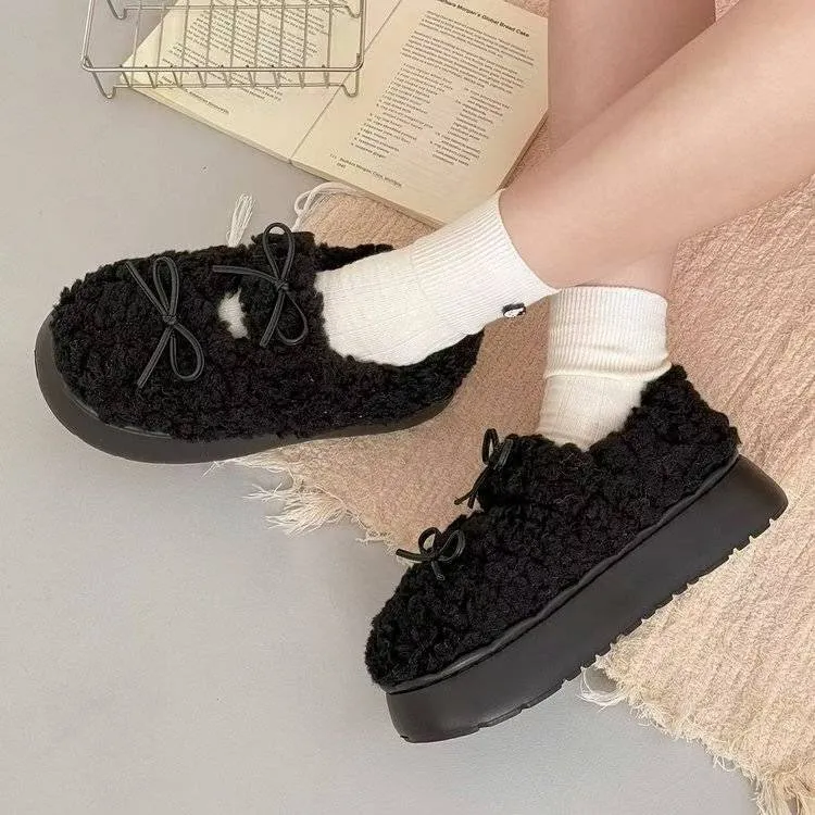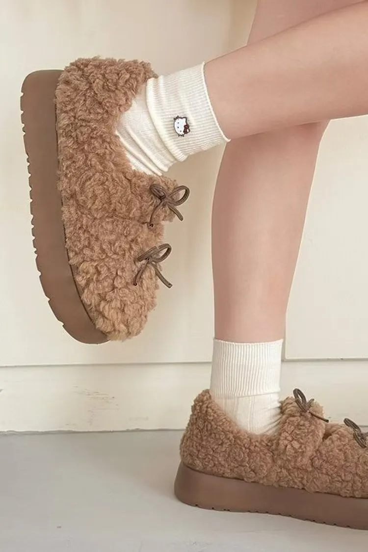 雙蝴蝶結厚底麵包鞋