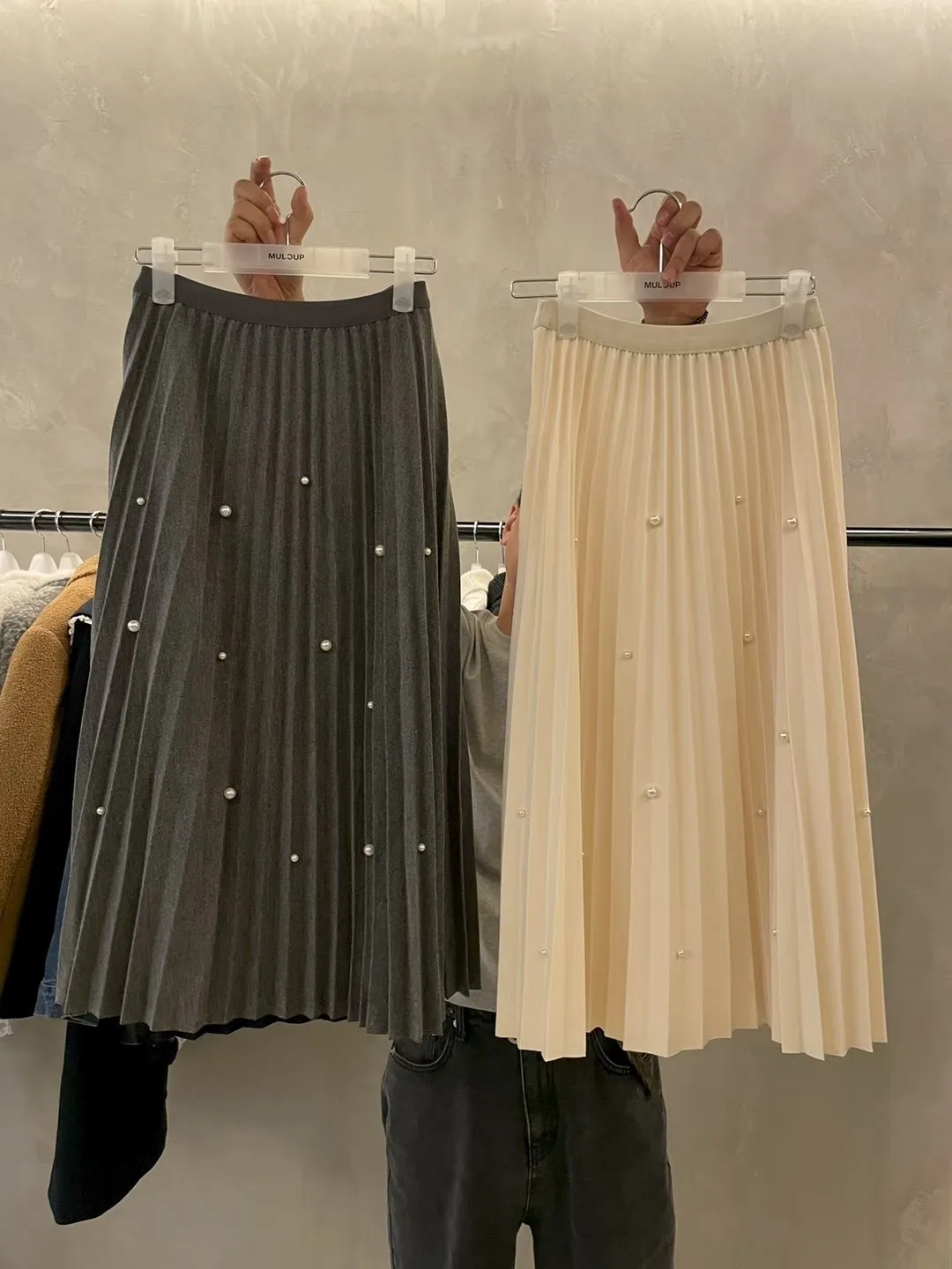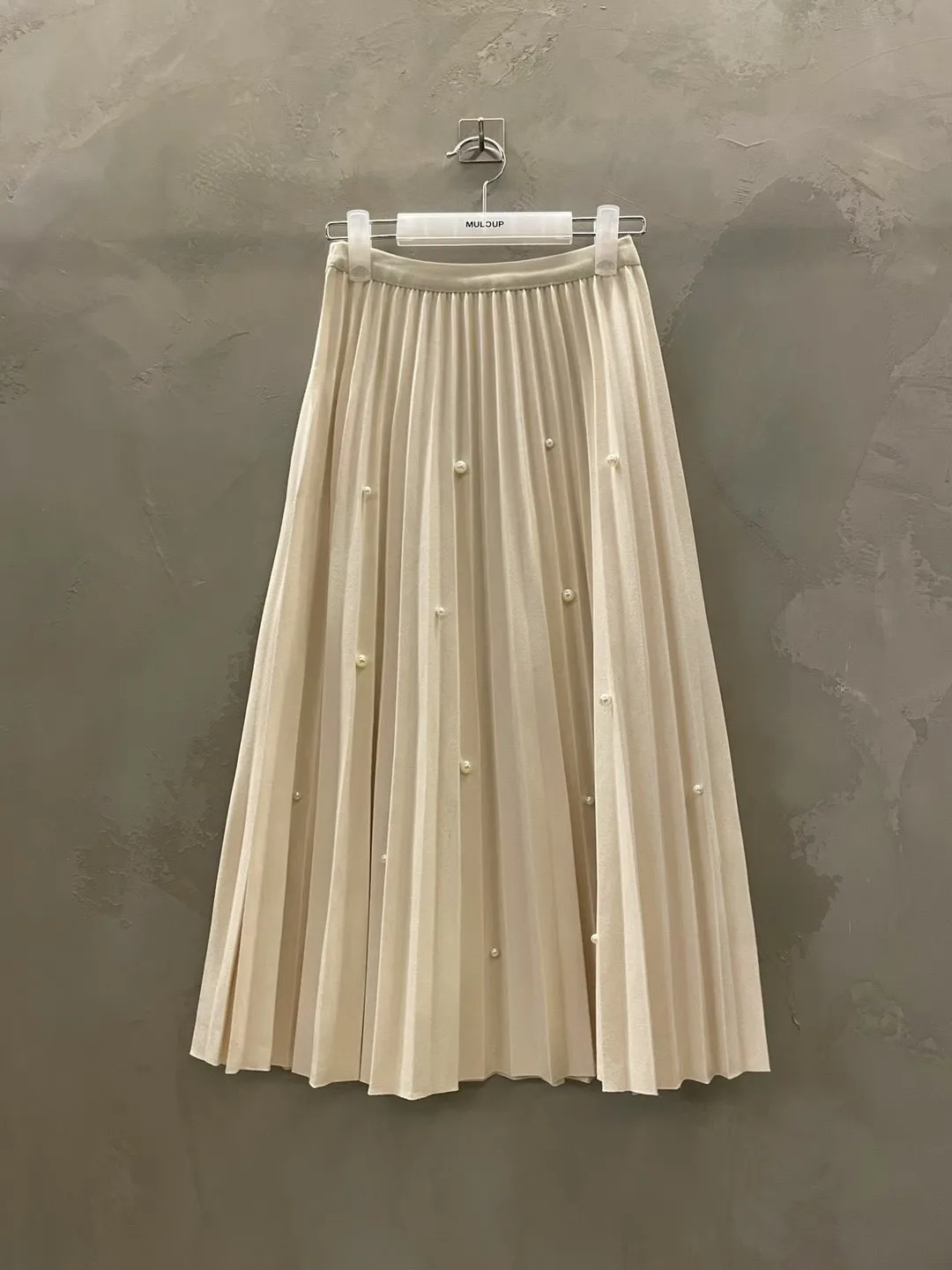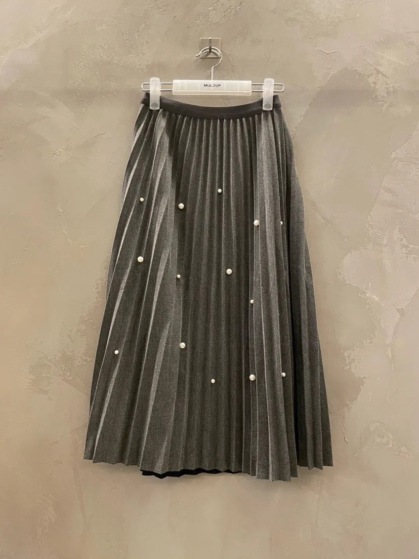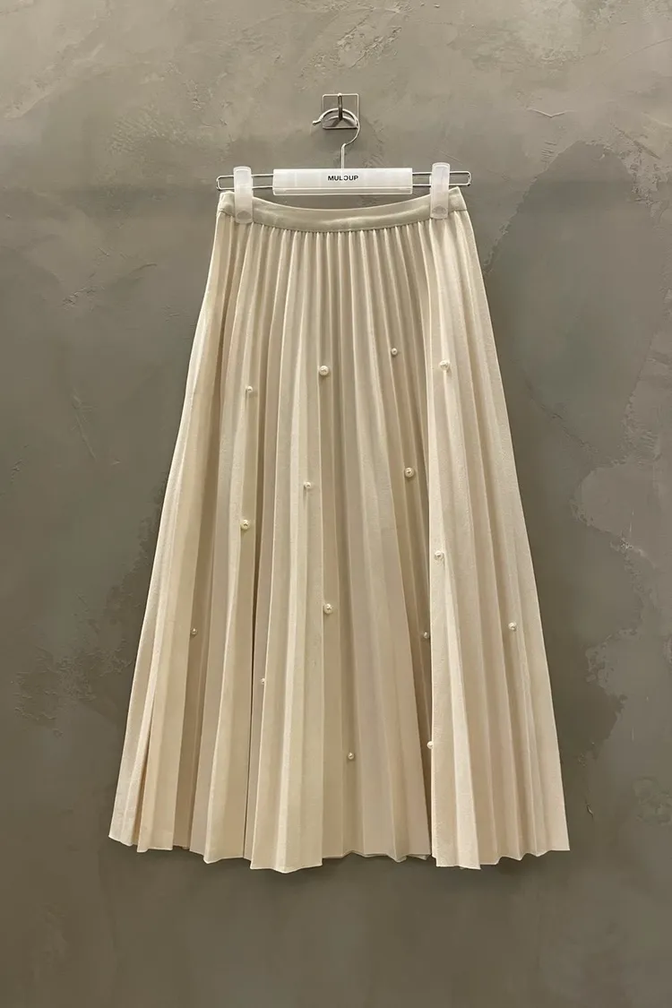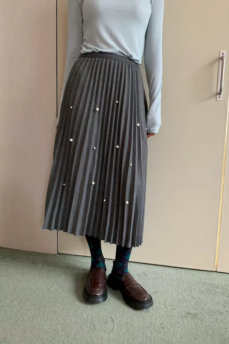珍珠釦百摺長裙