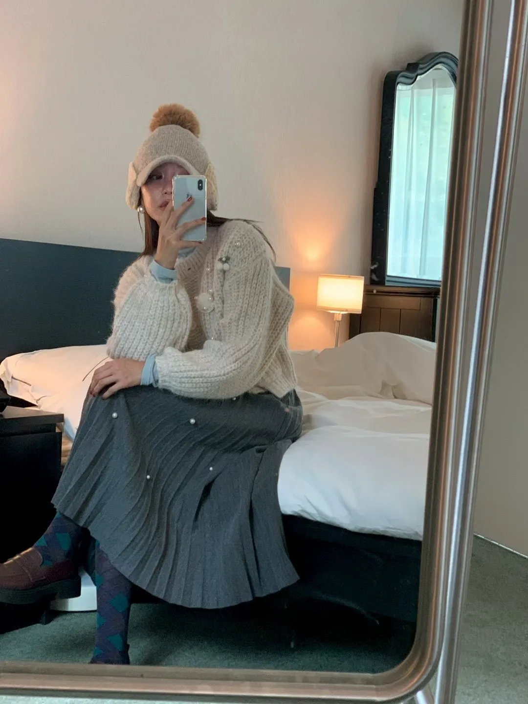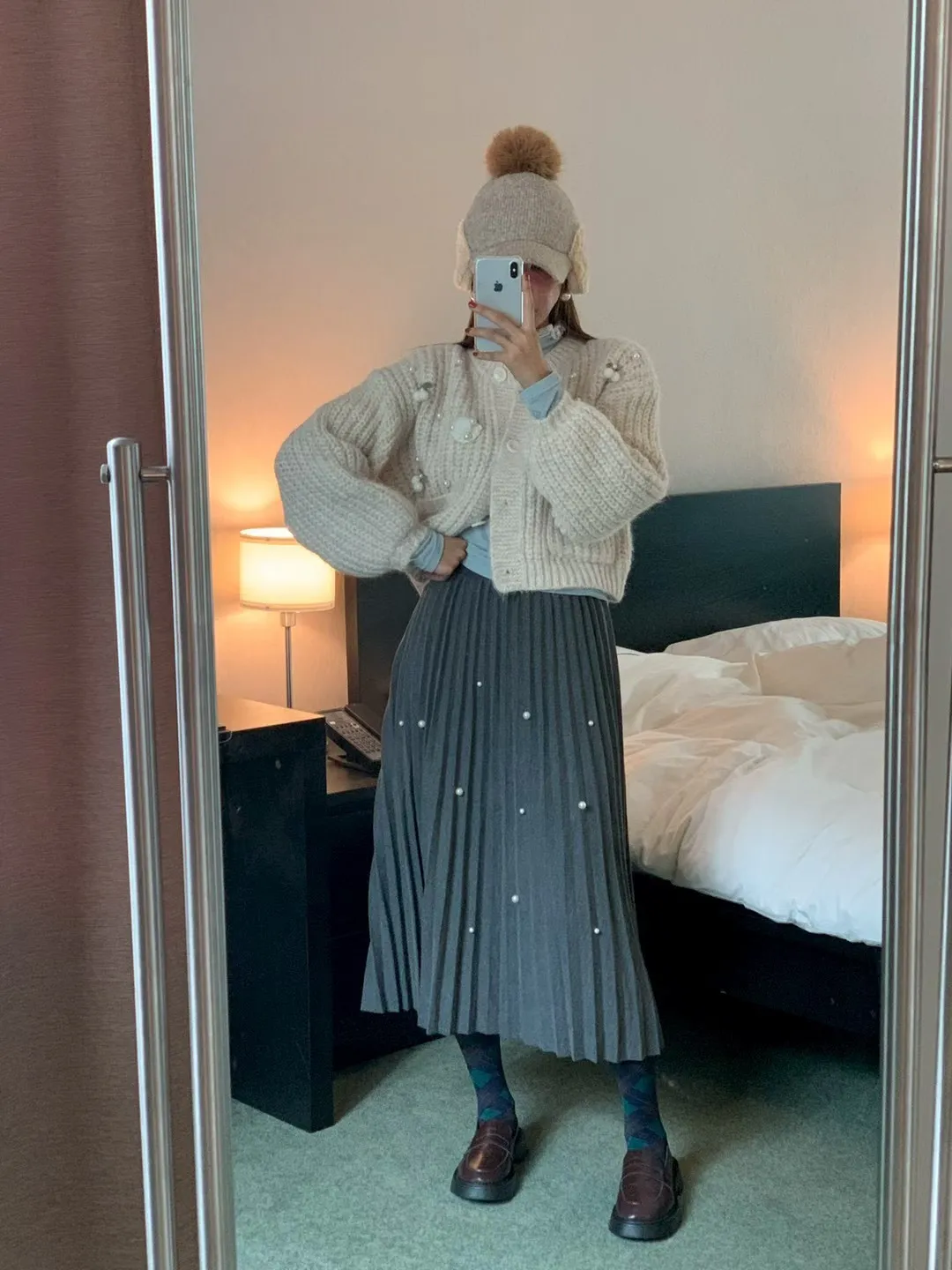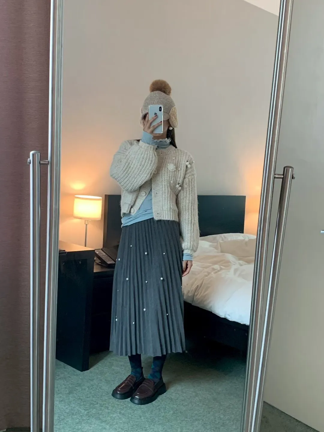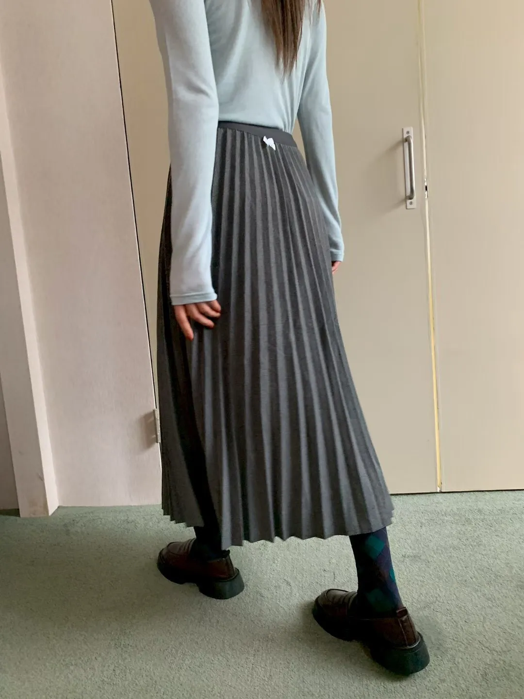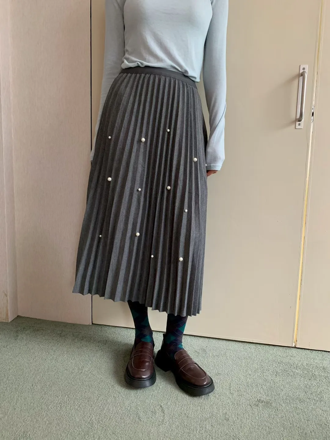 珍珠釦百摺長裙