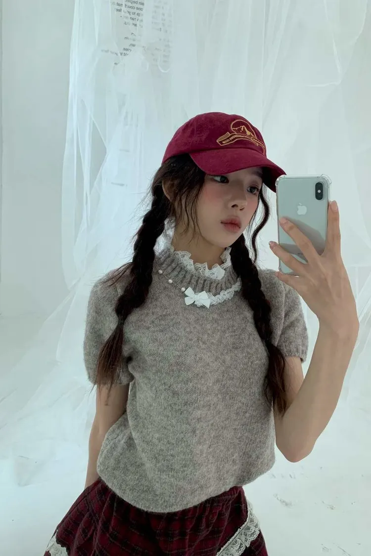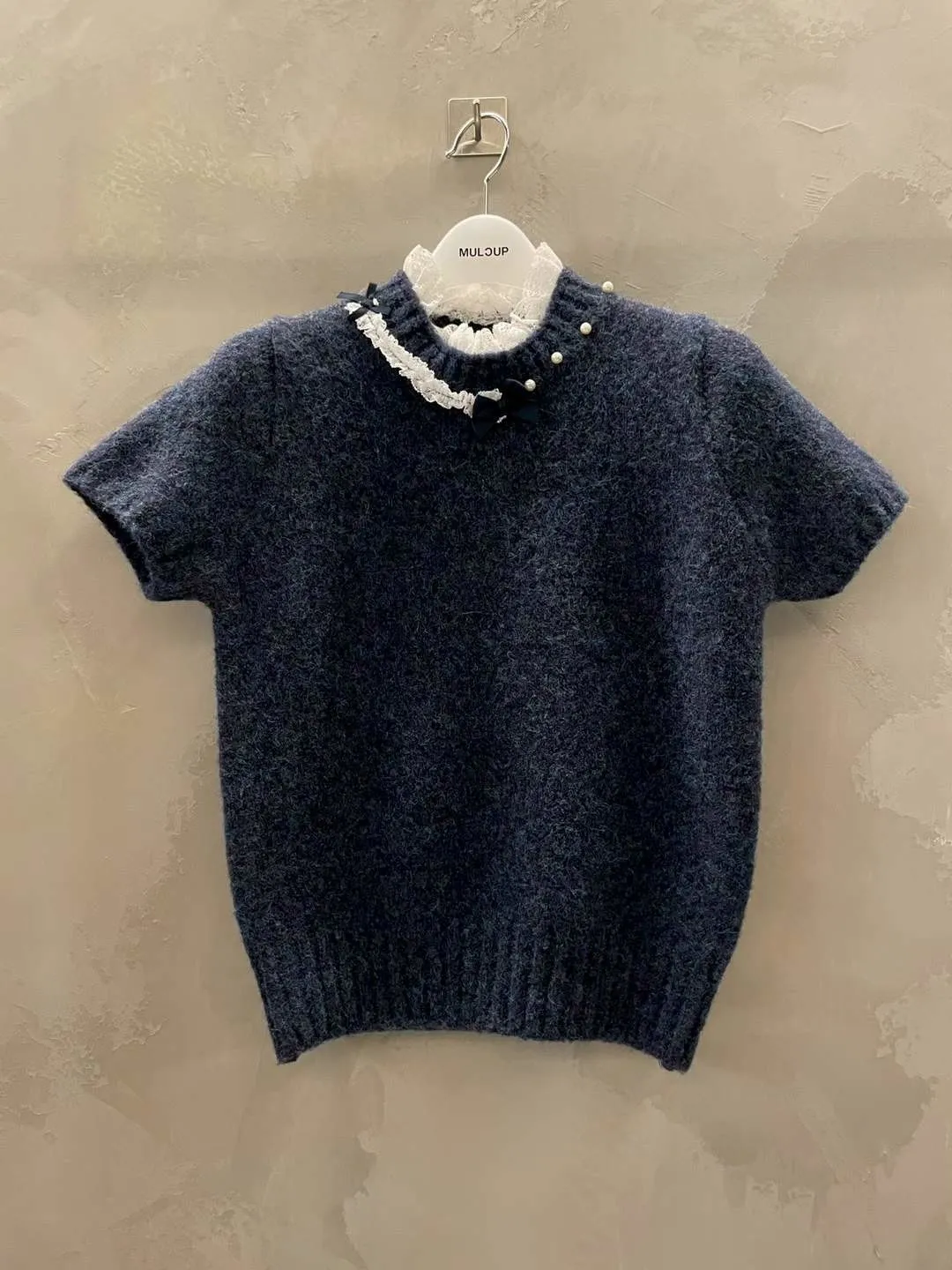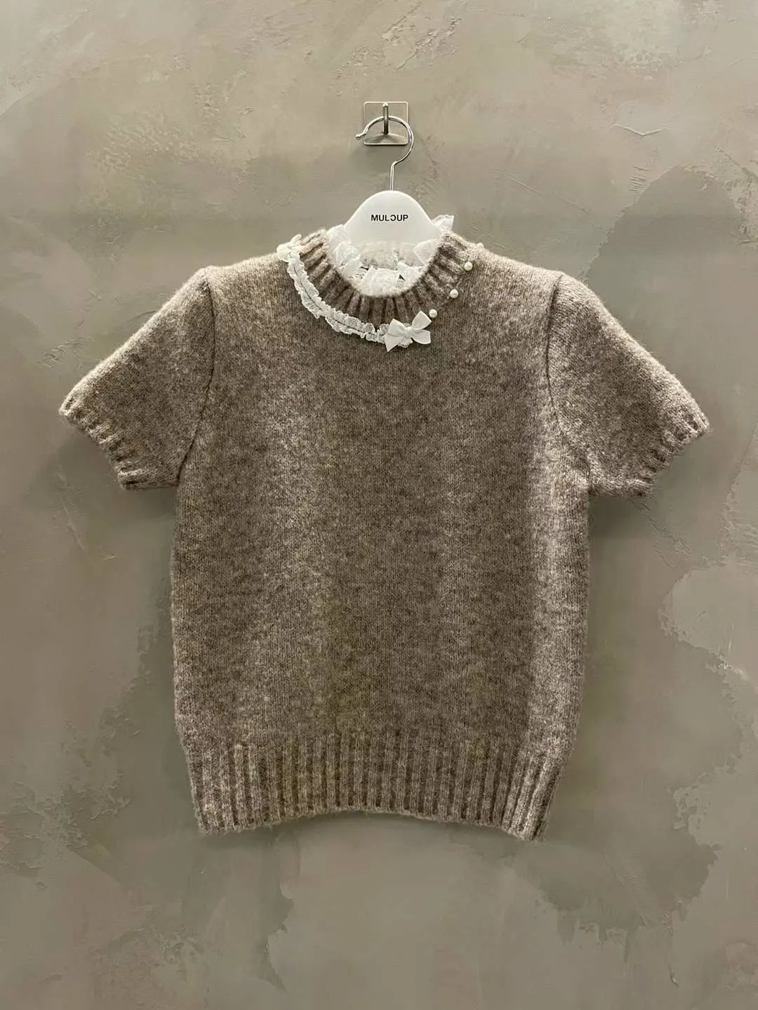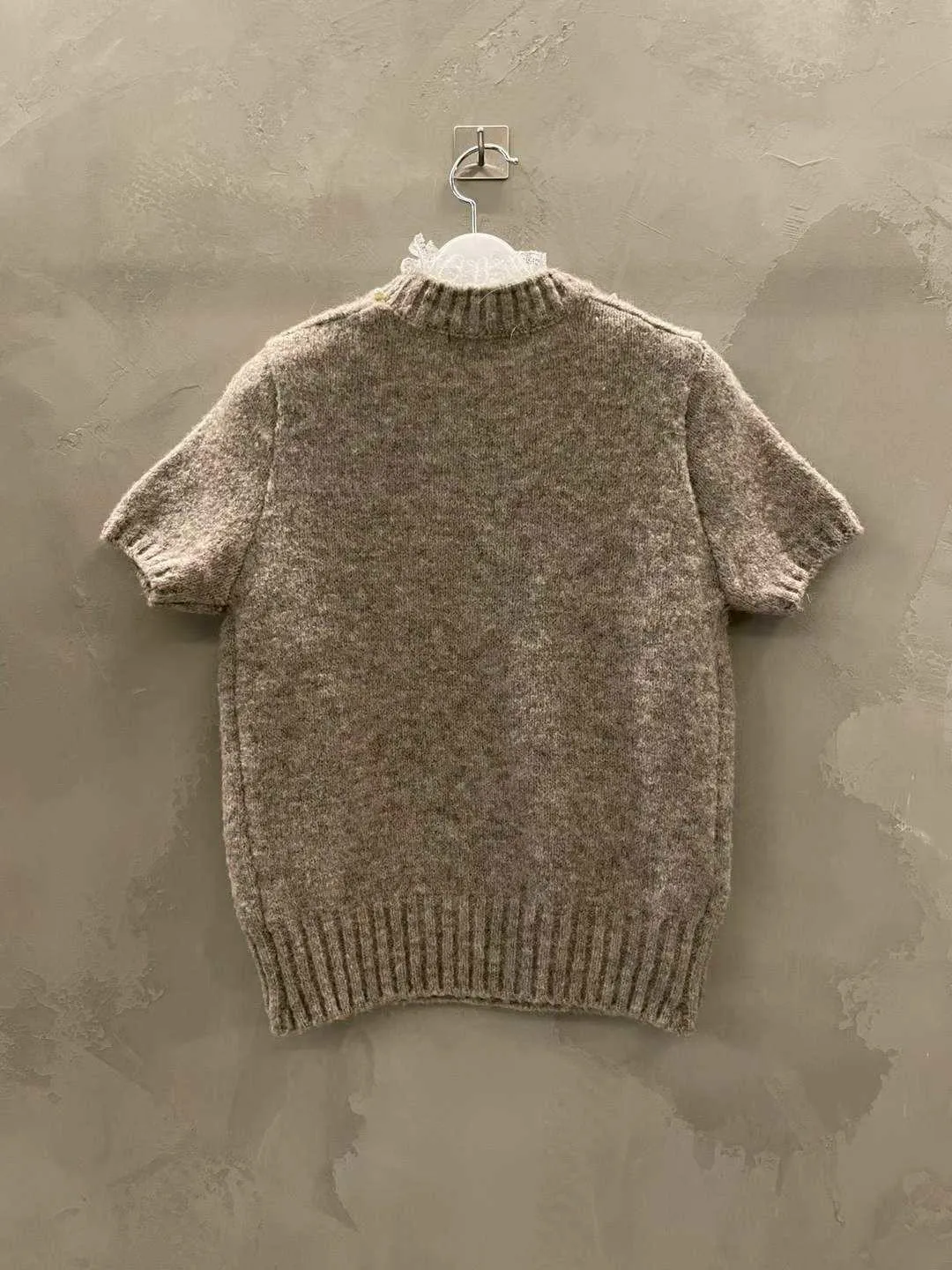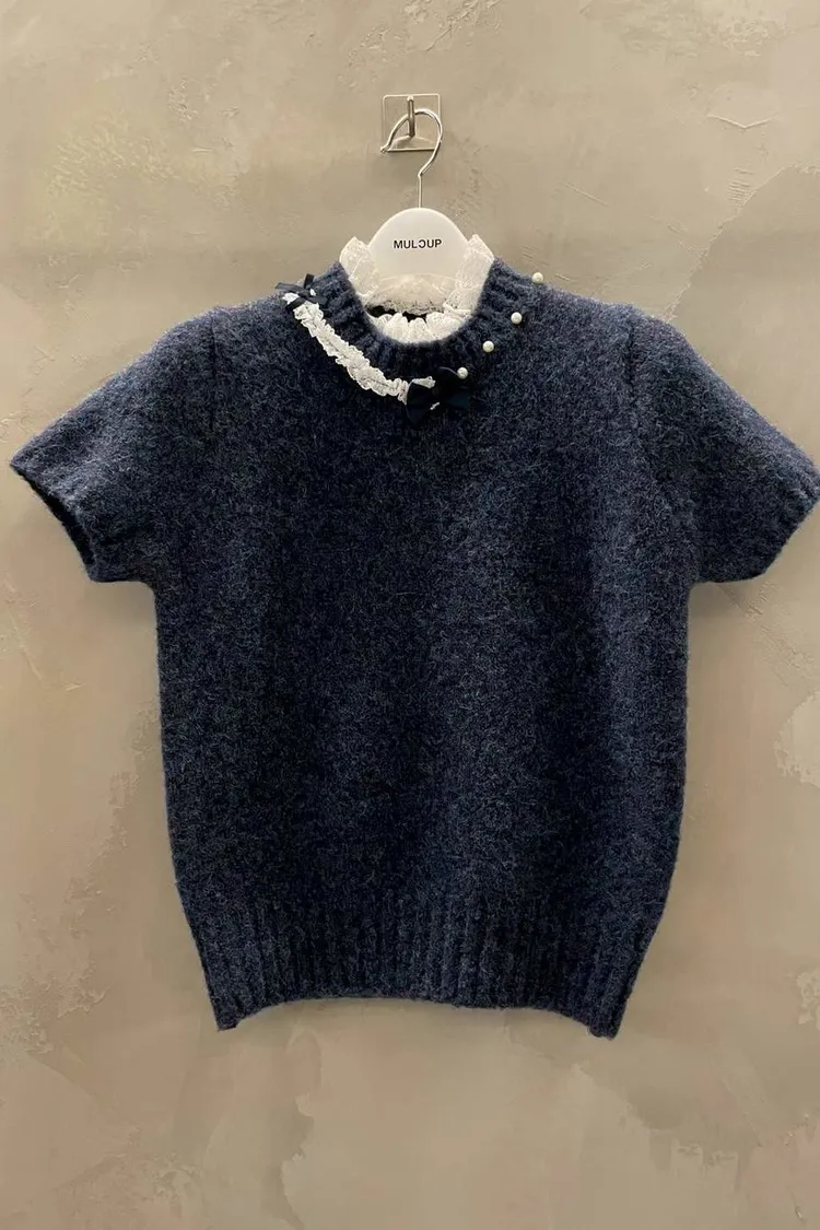蕾絲拼接五分袖針織毛衣