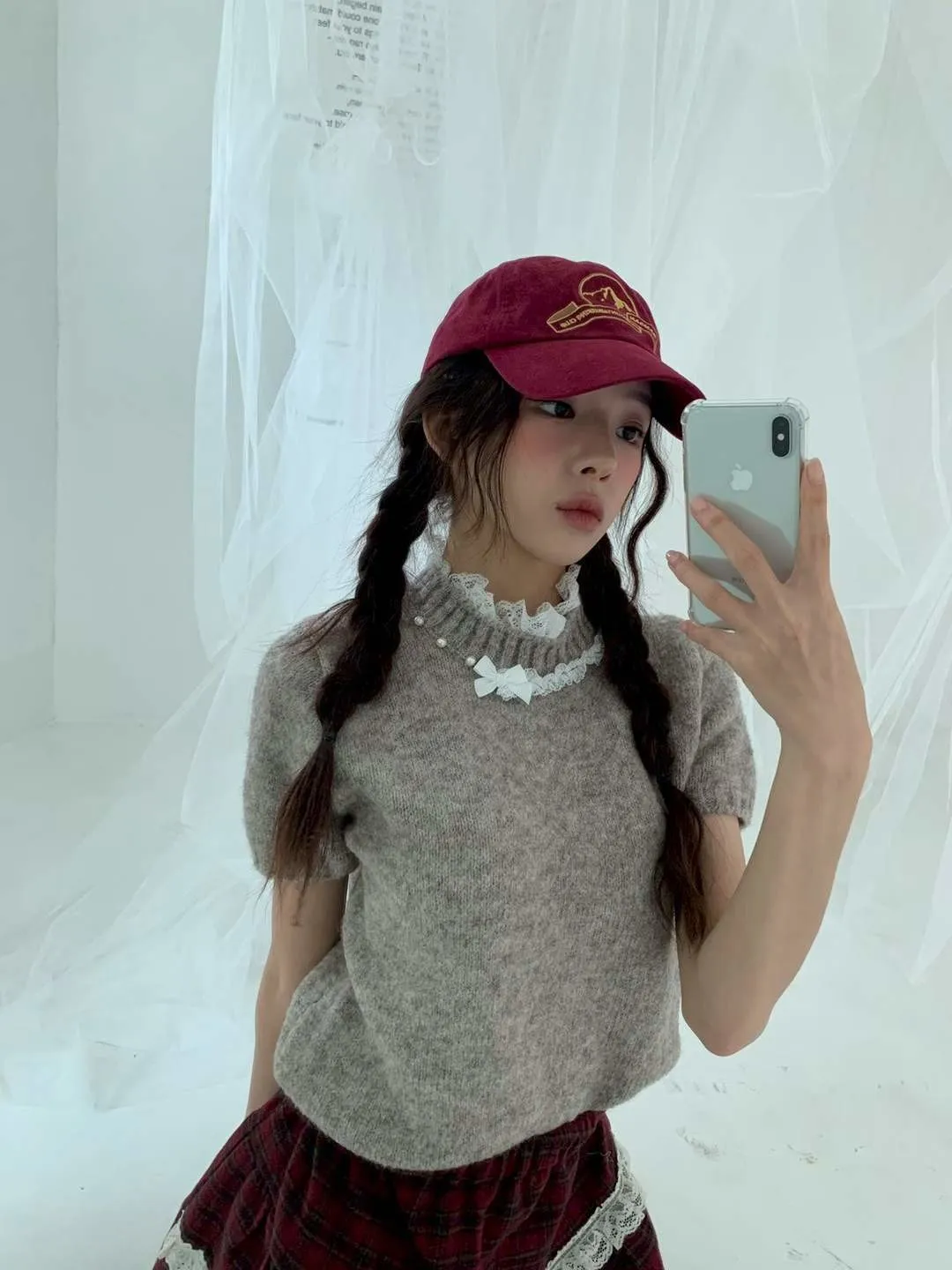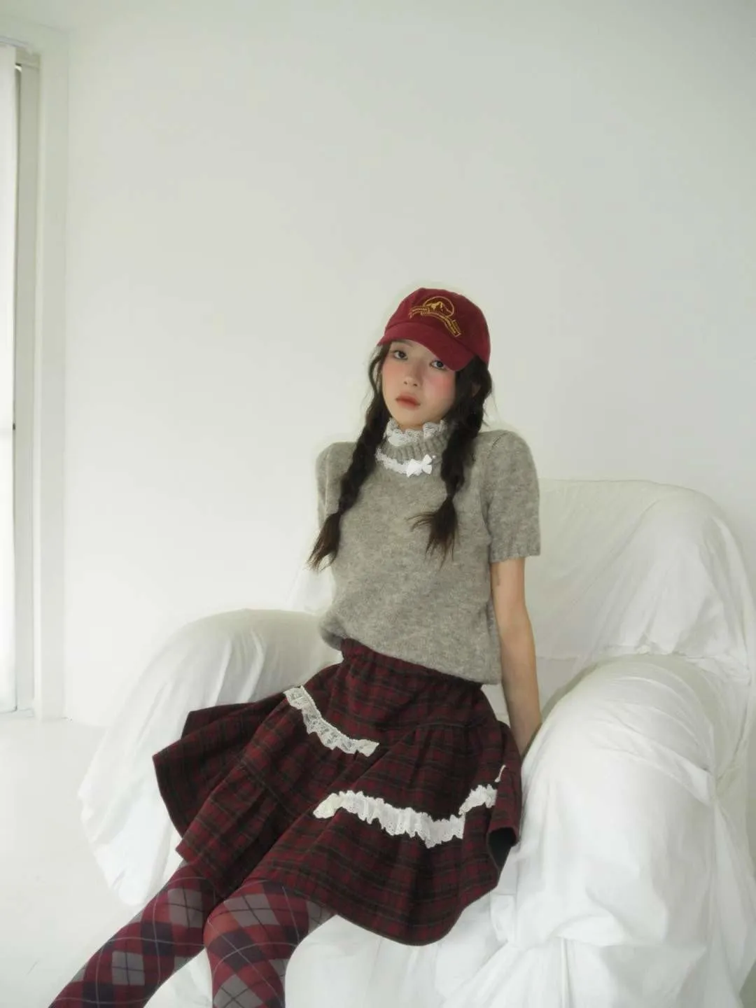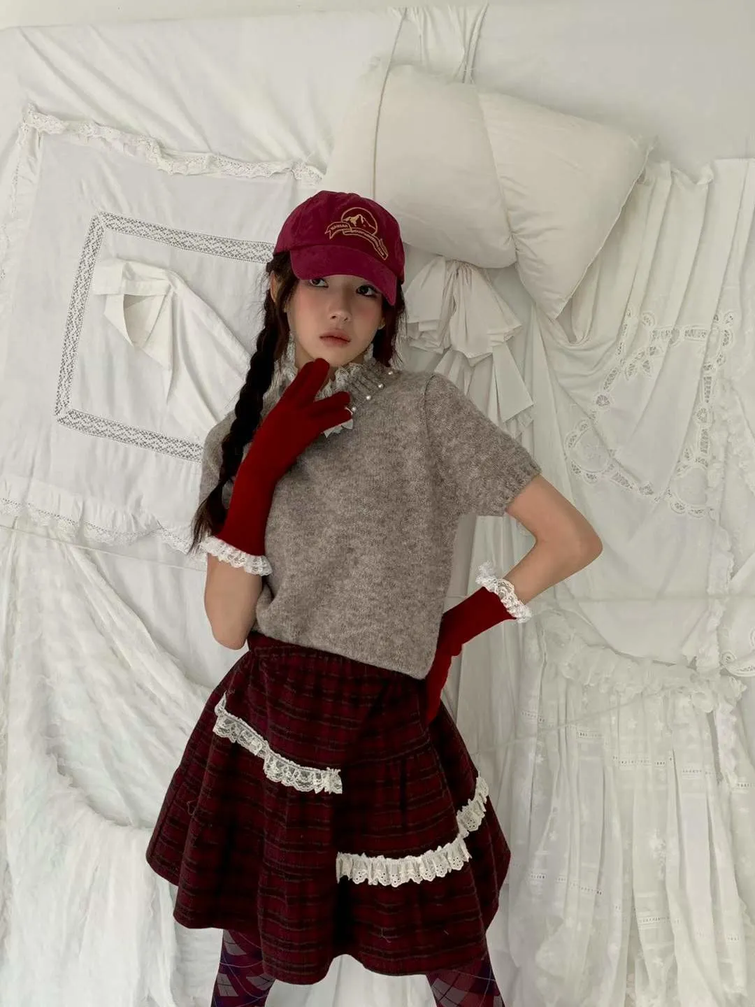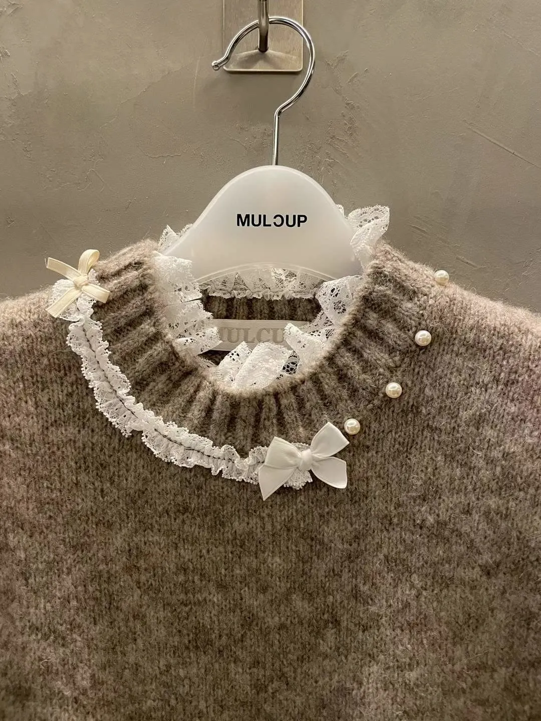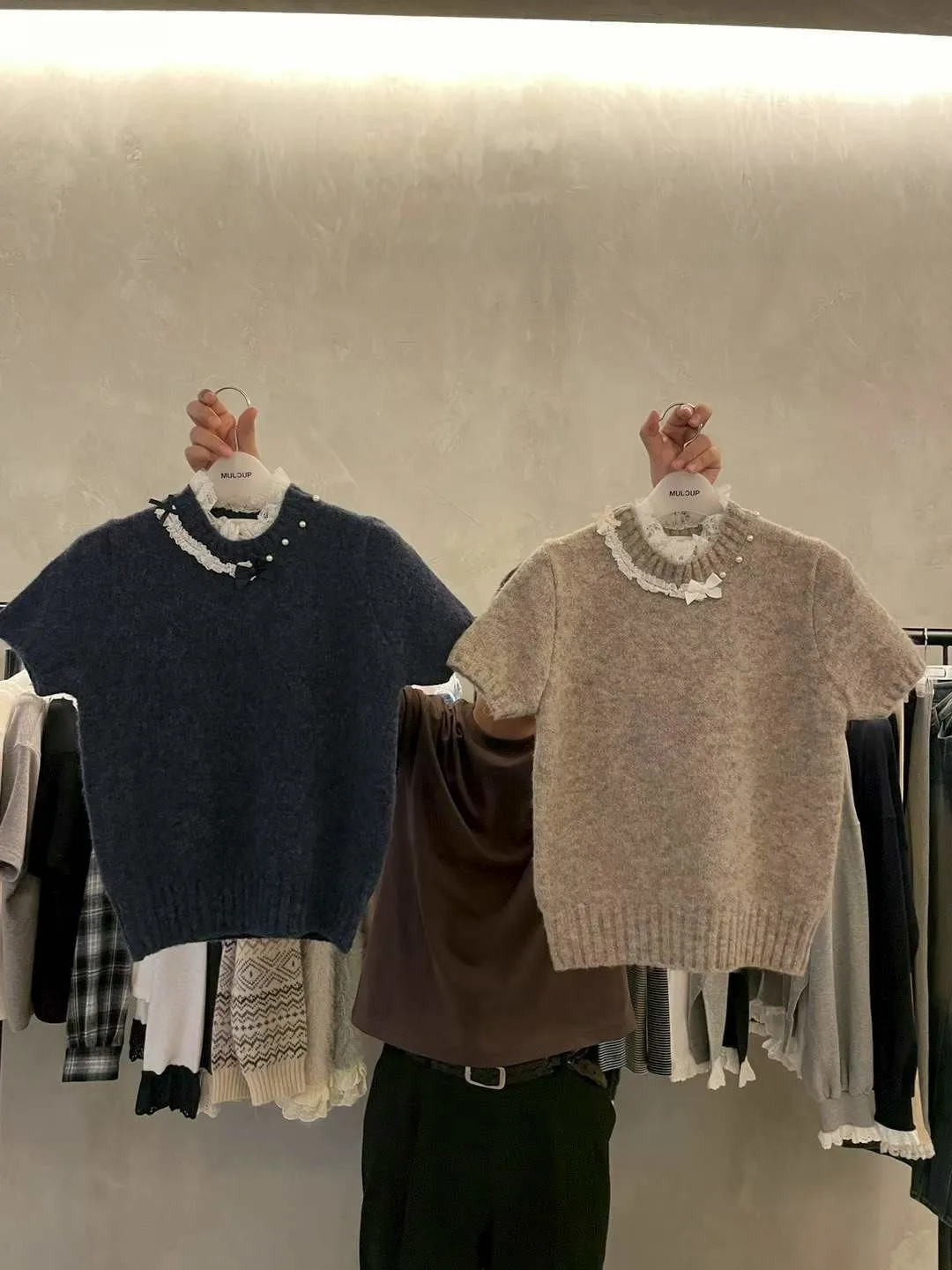 蕾絲拼接五分袖針織毛衣