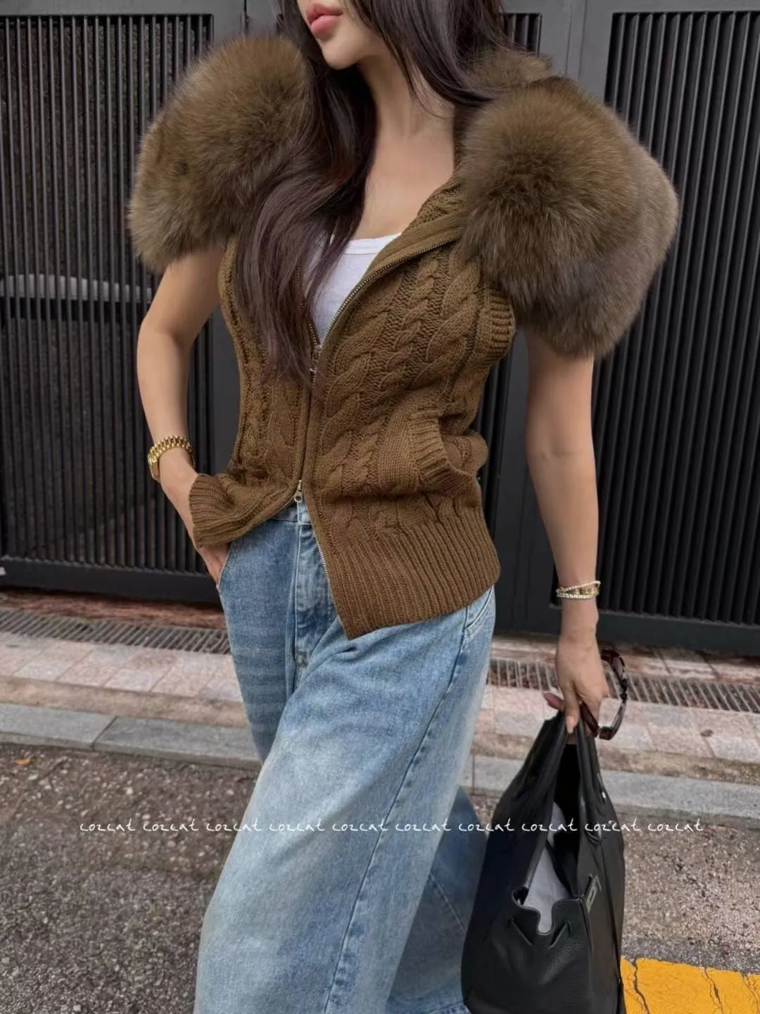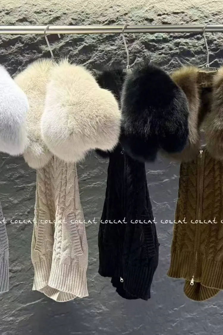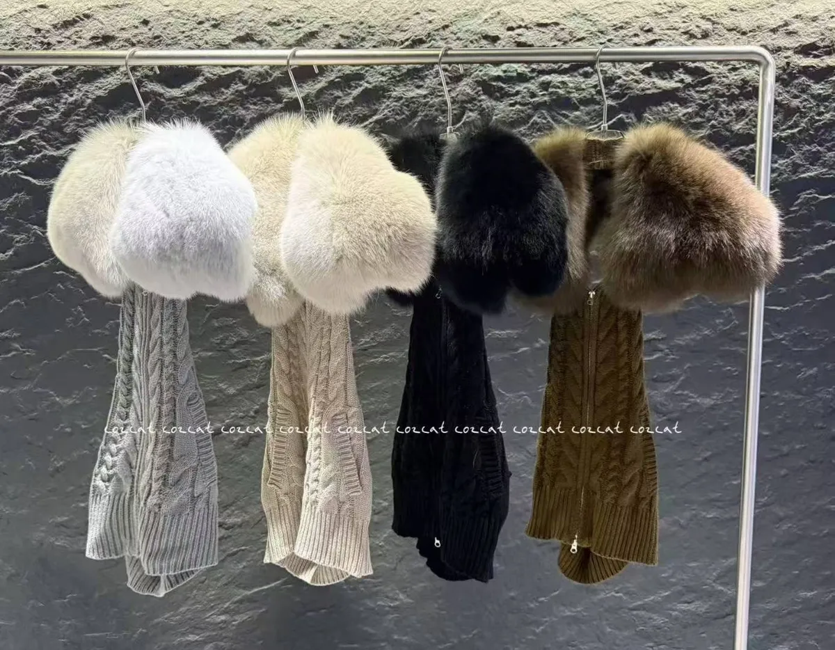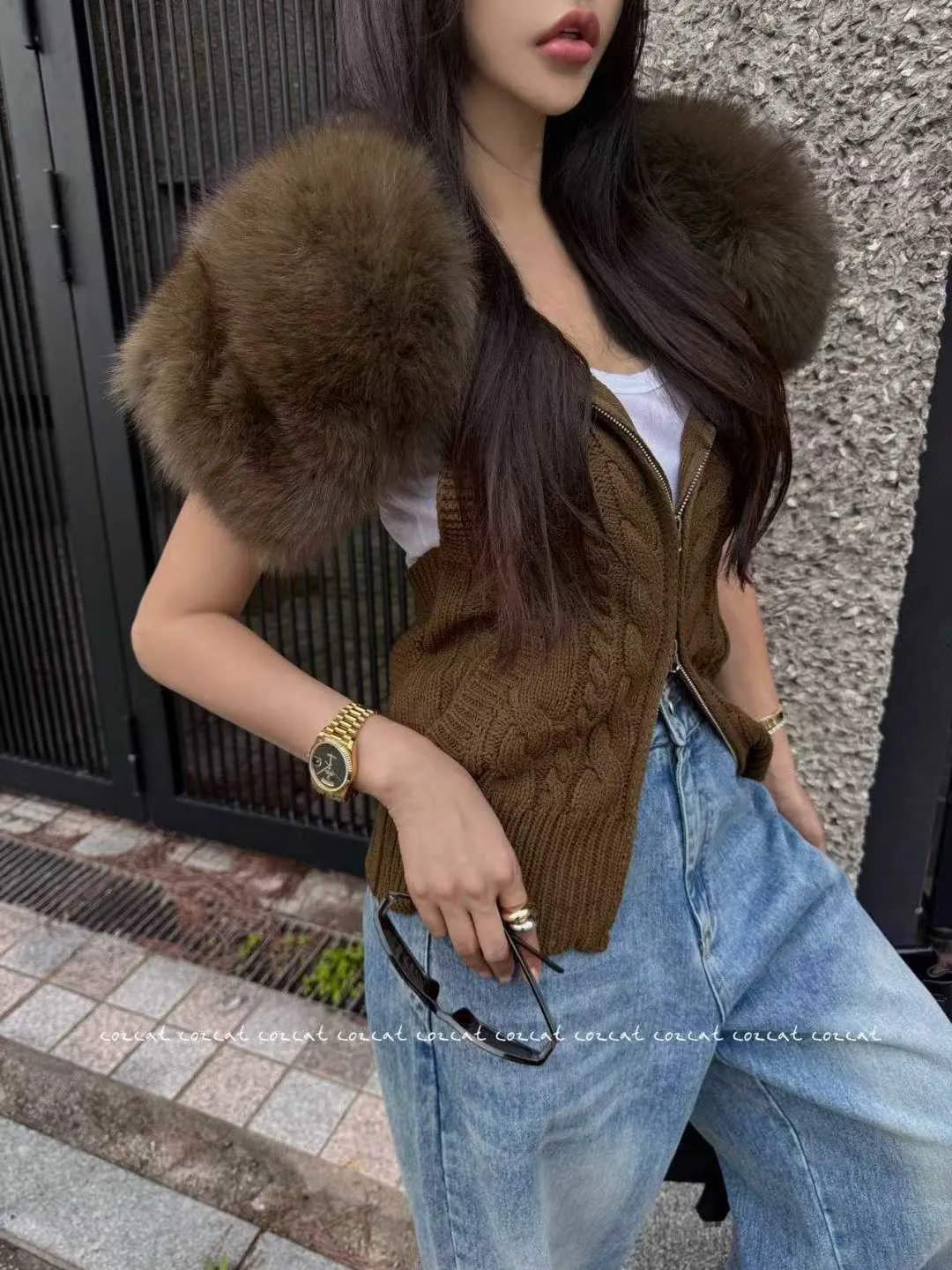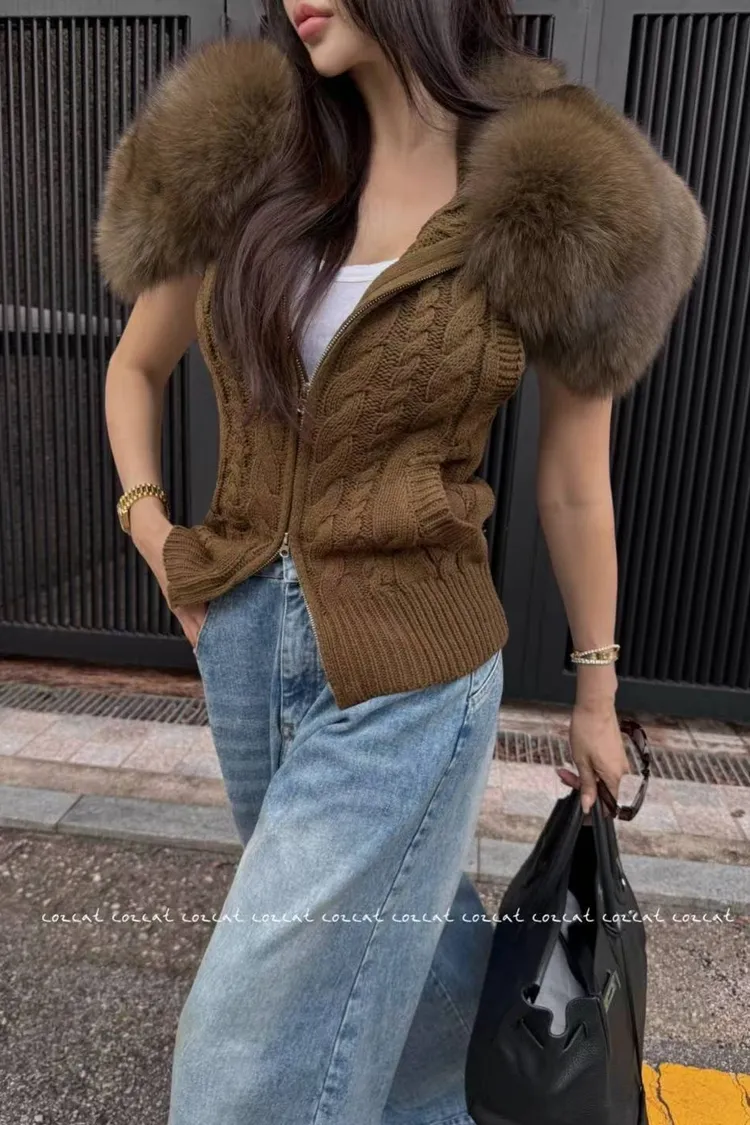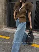 大片領真毛針織背心