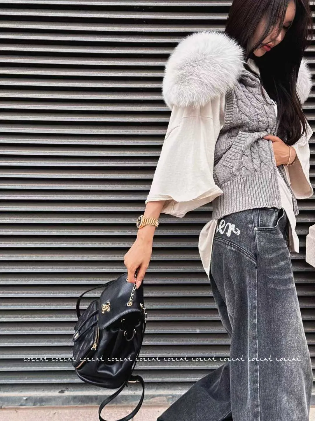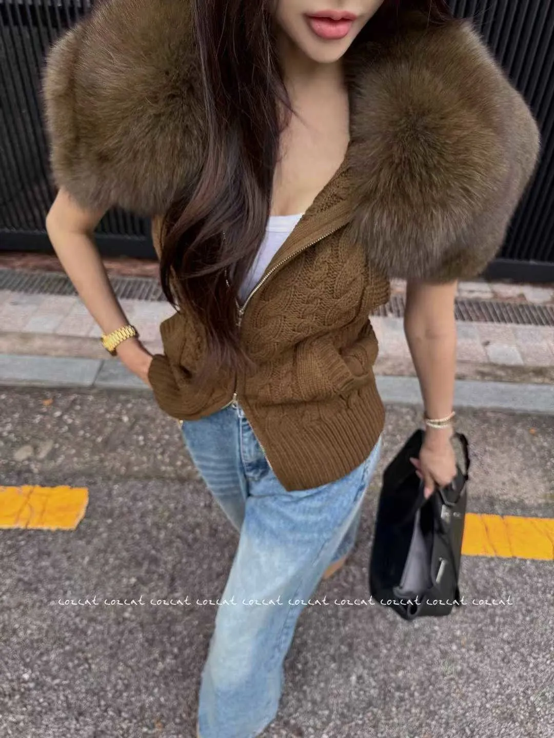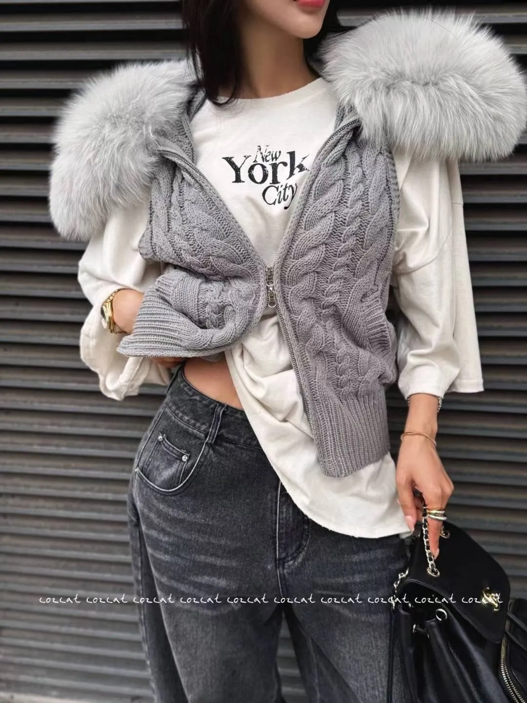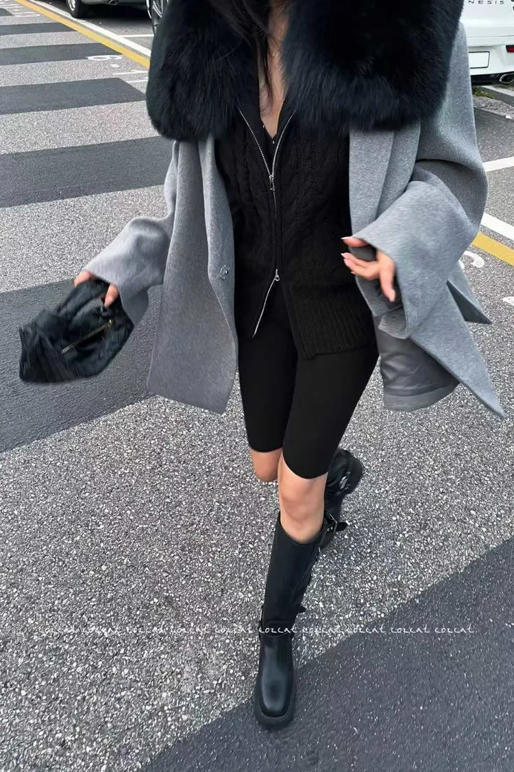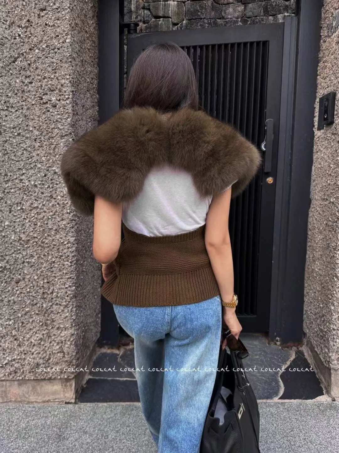 大片領真毛針織背心