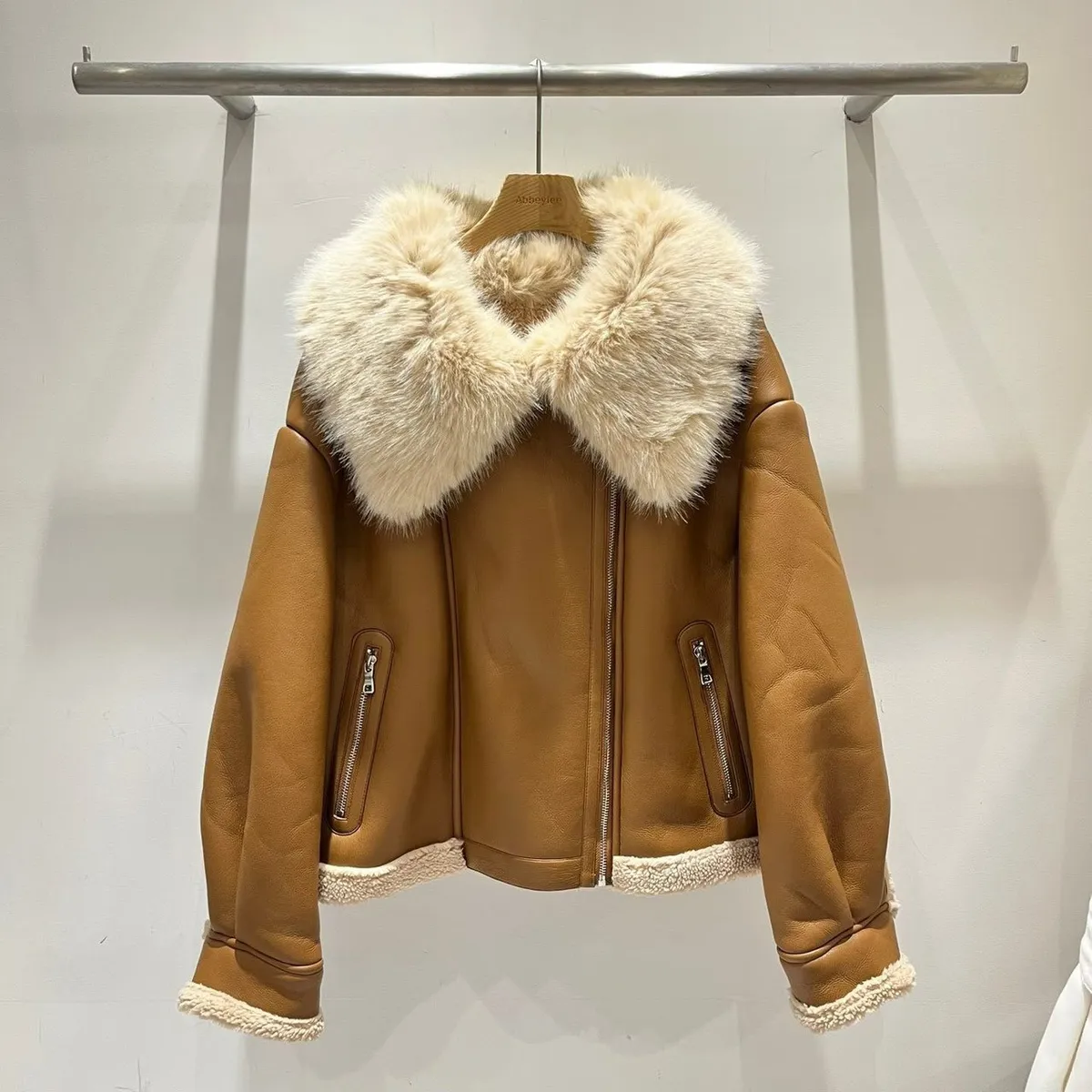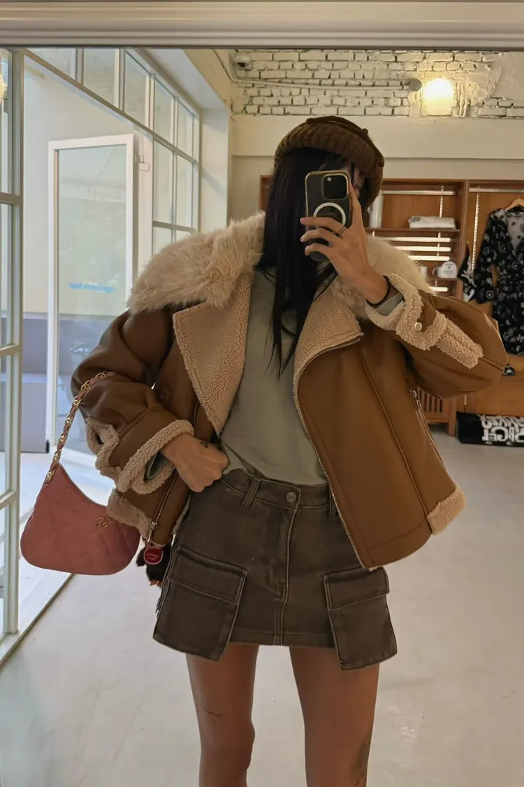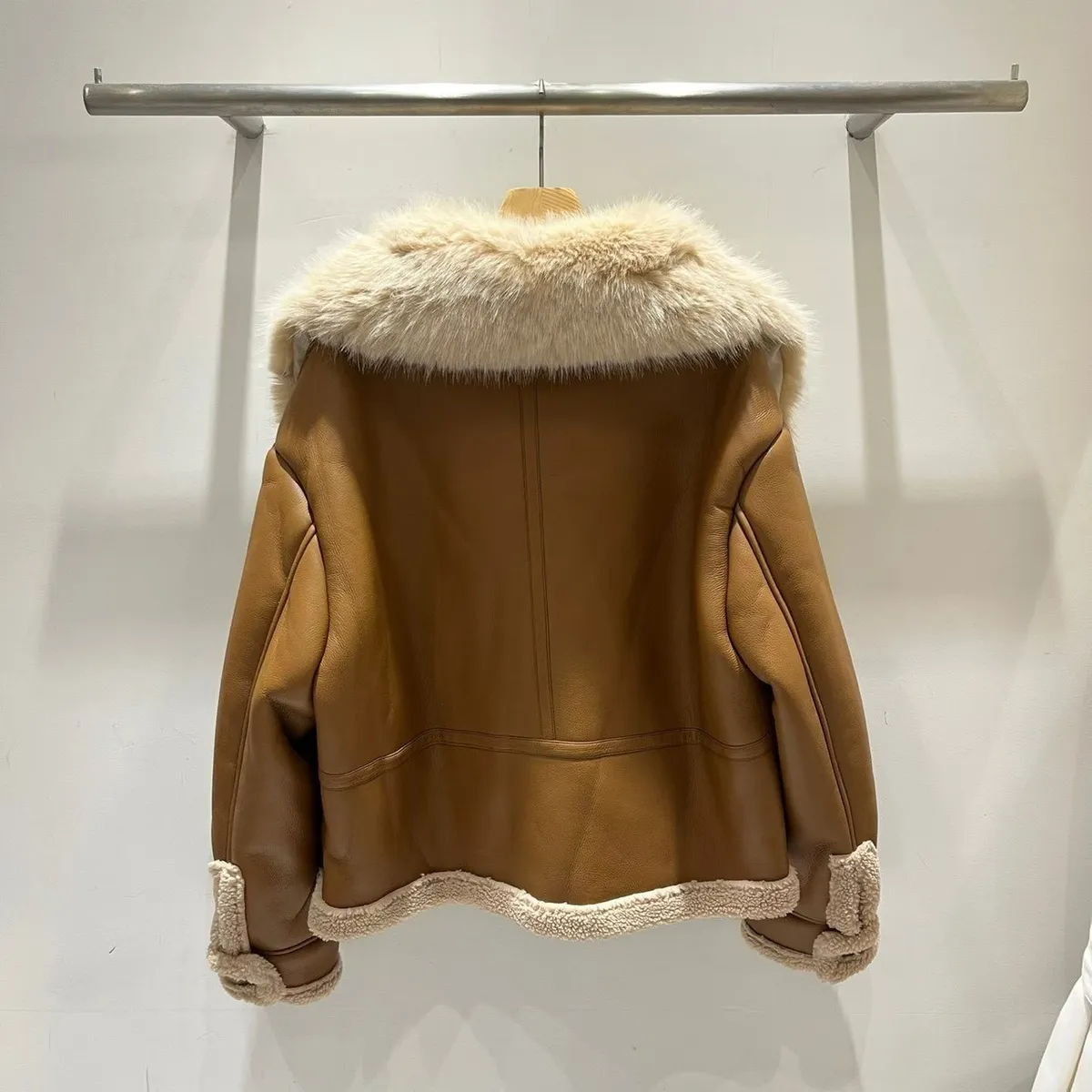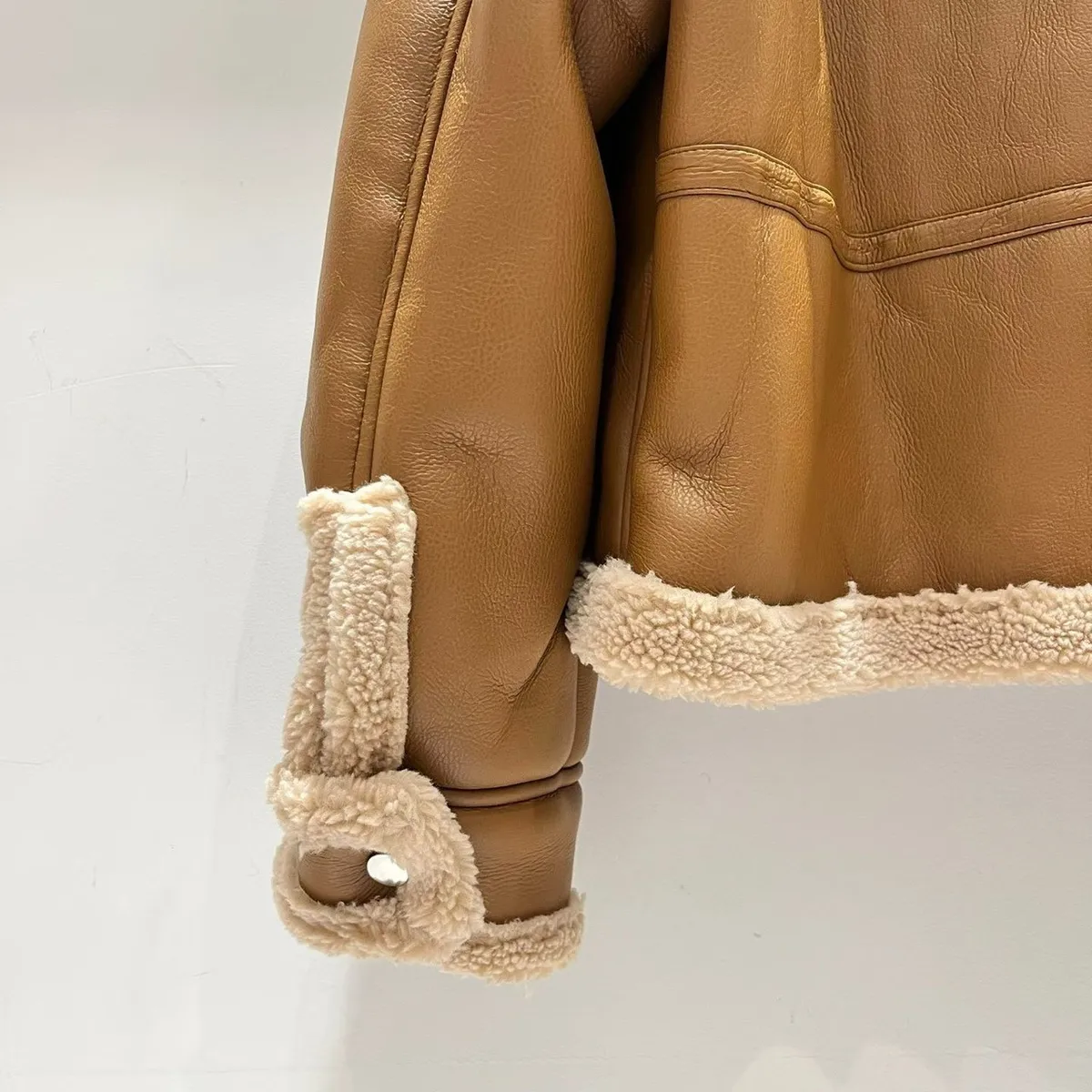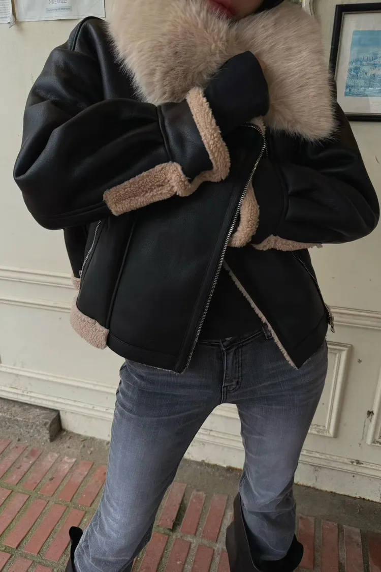 大翻領羊羔毛皮革外套