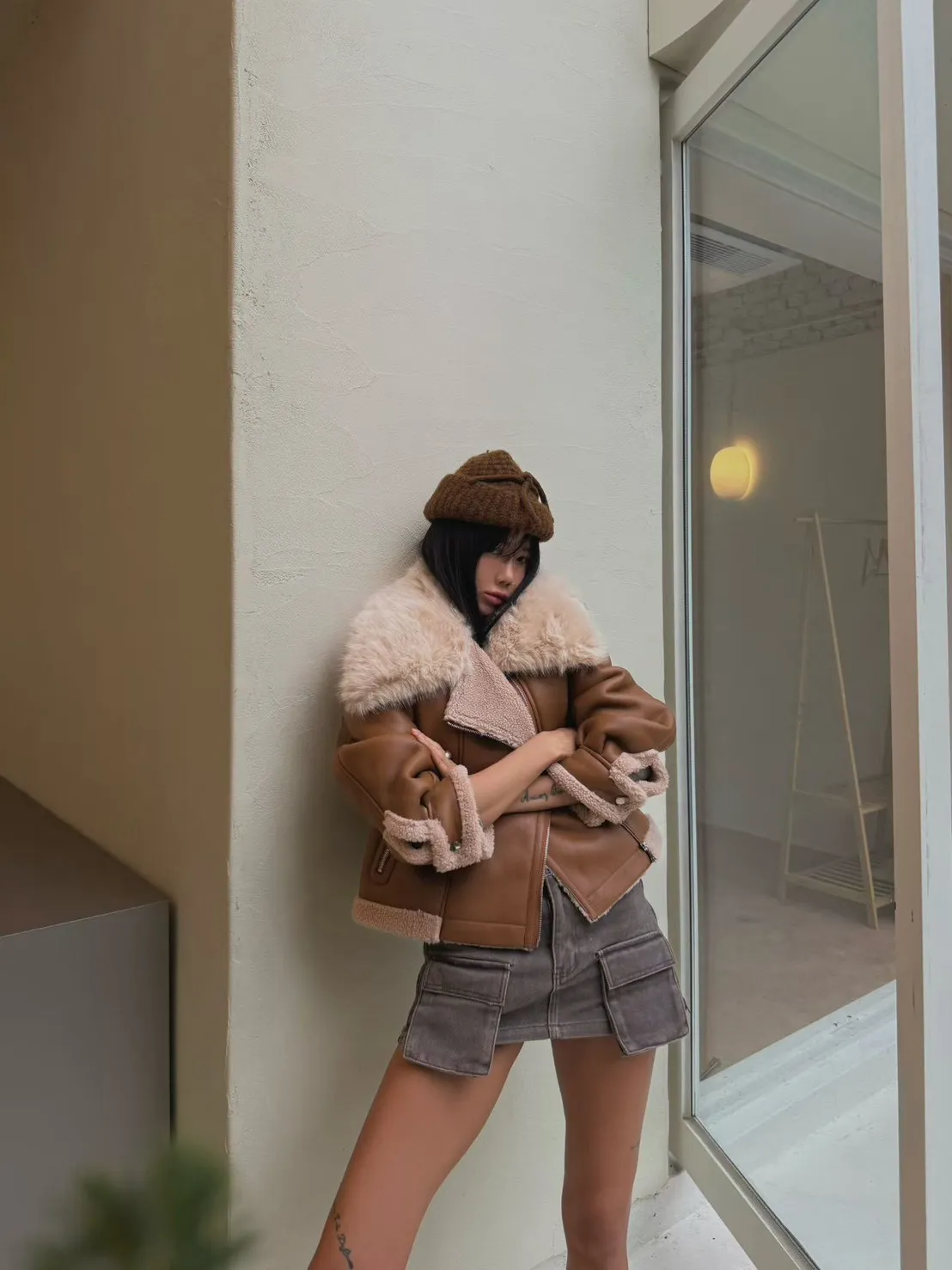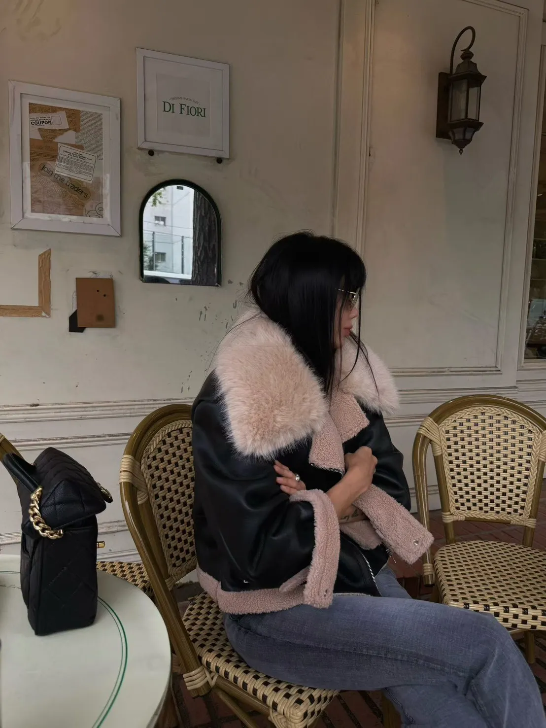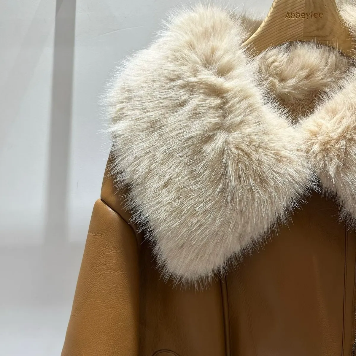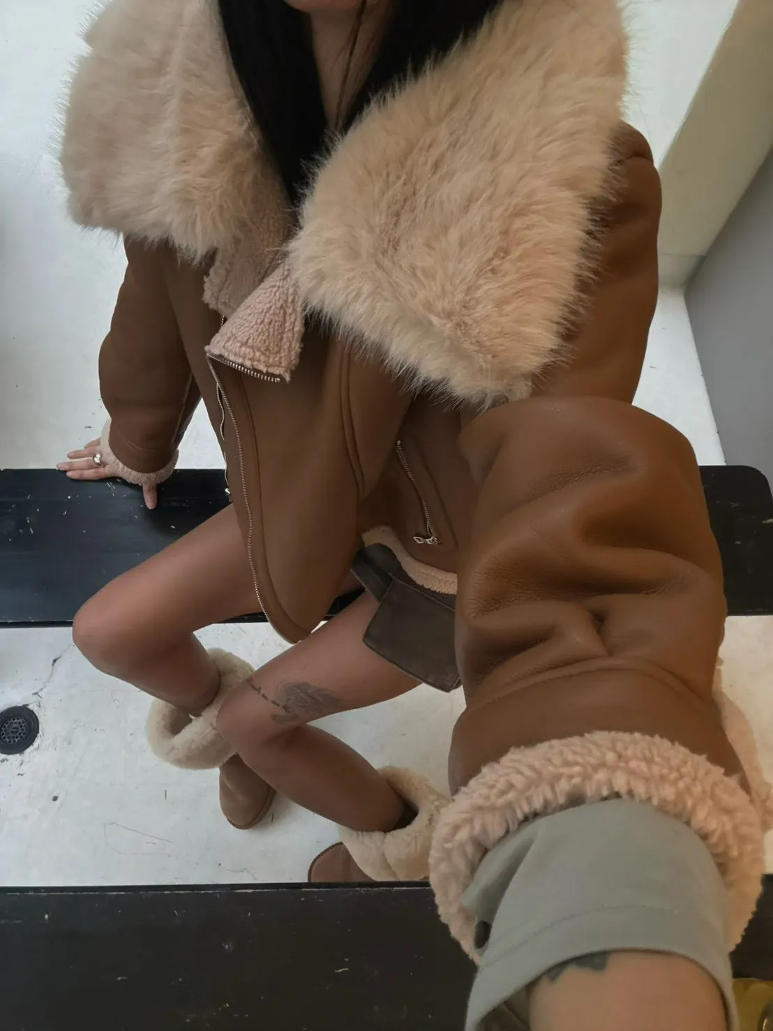 大翻領羊羔毛皮革外套