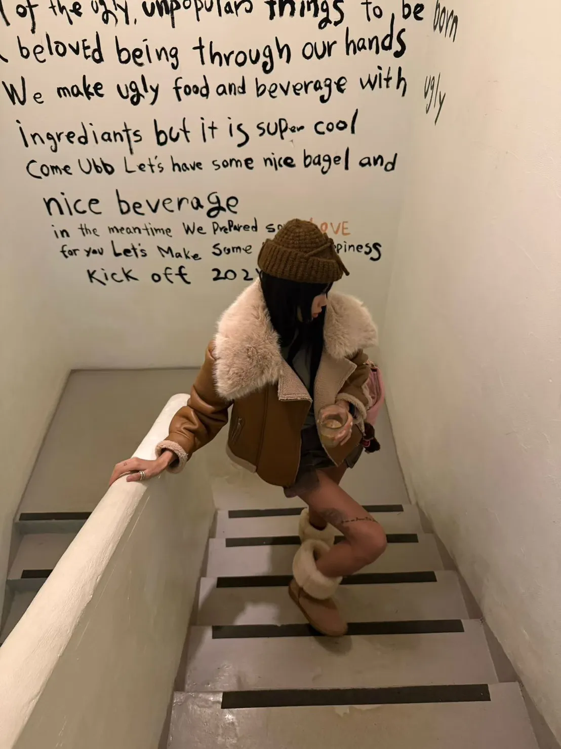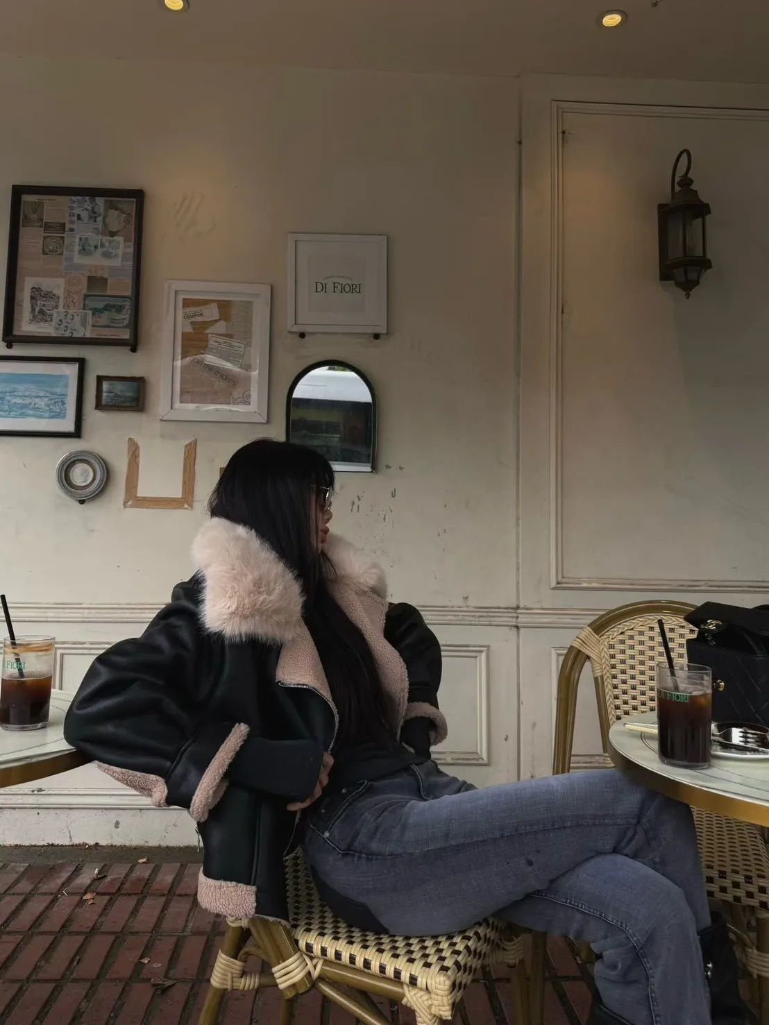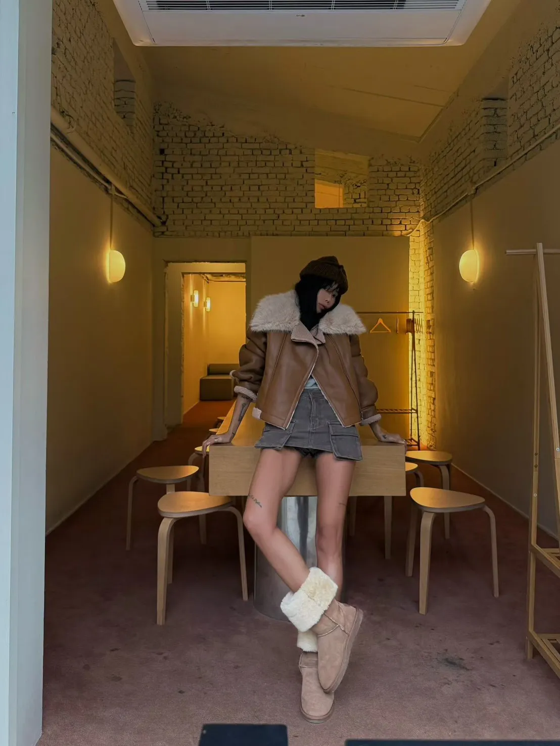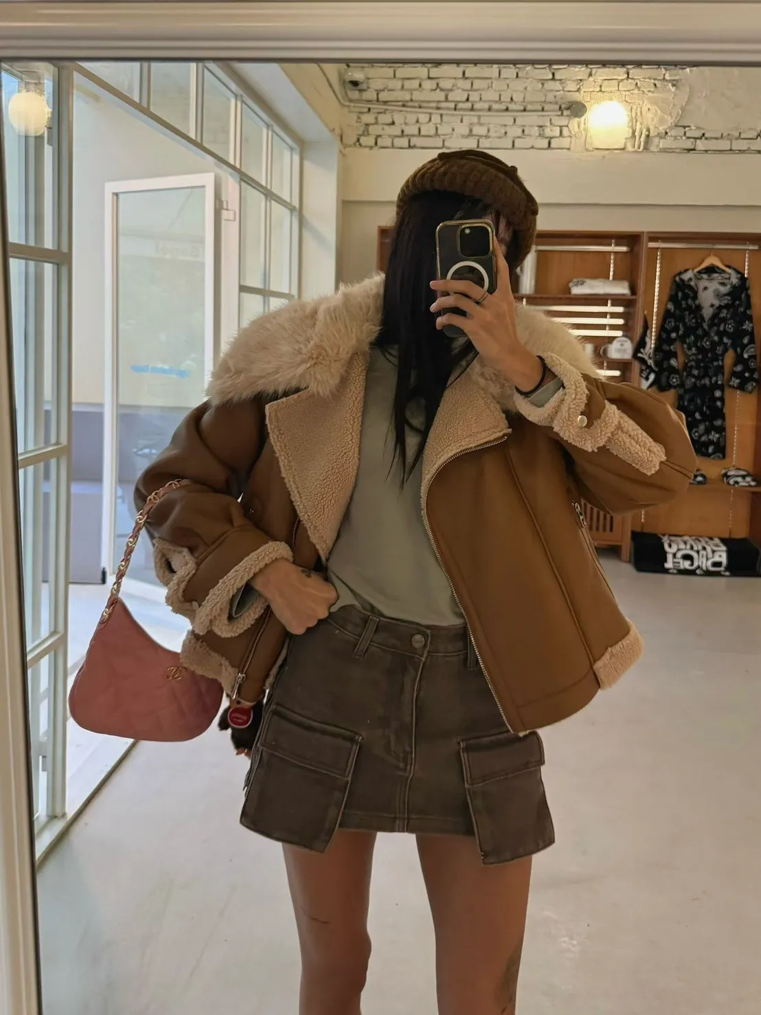 大翻領羊羔毛皮革外套
