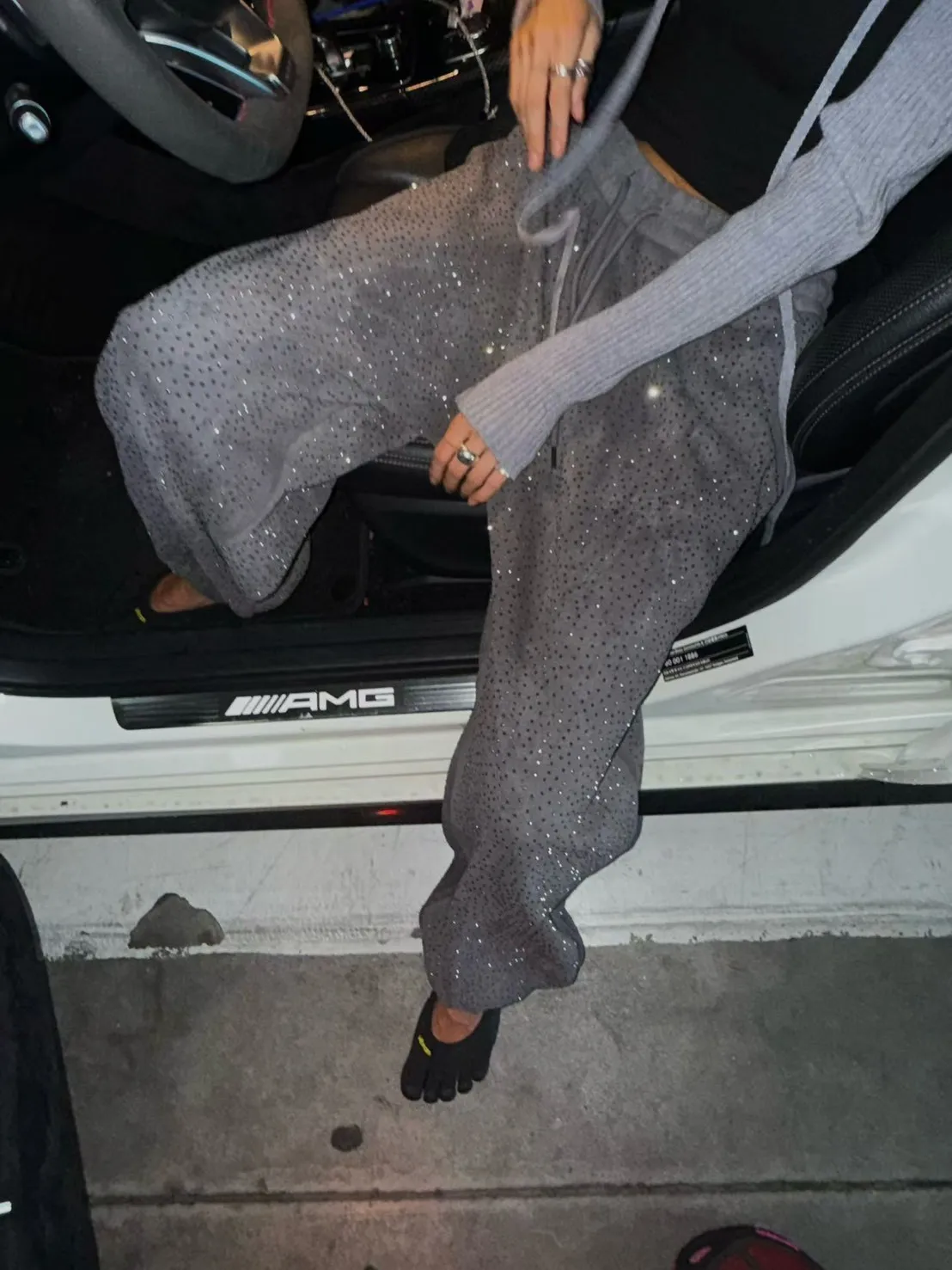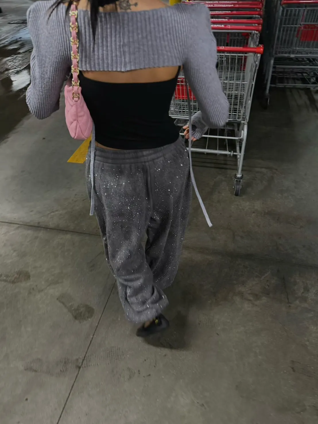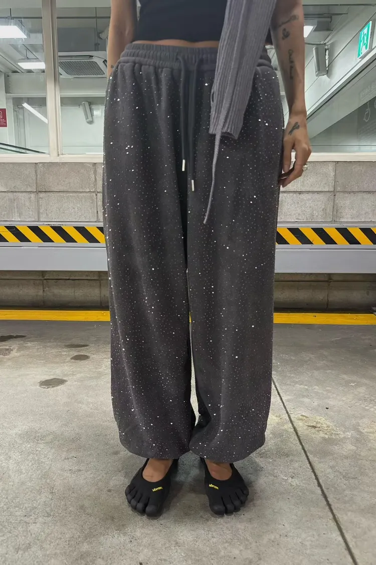 星光點點水鑽內刷毛棉褲