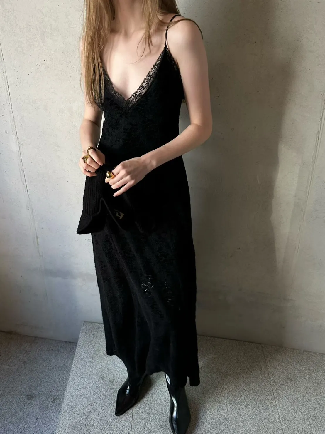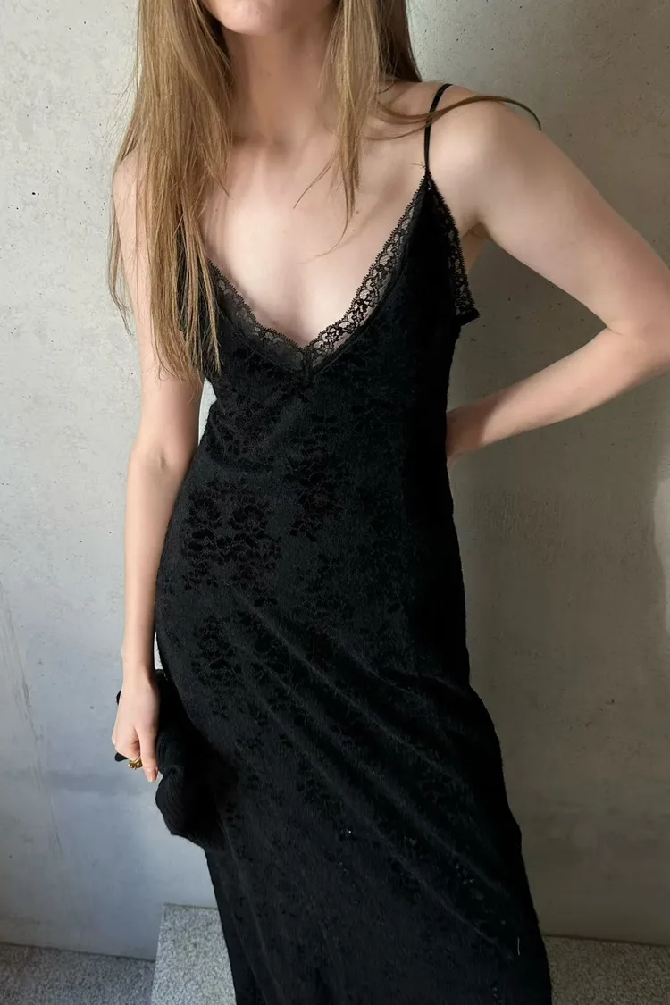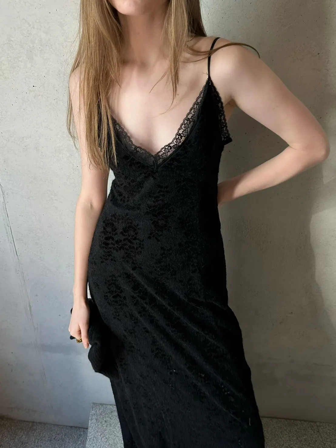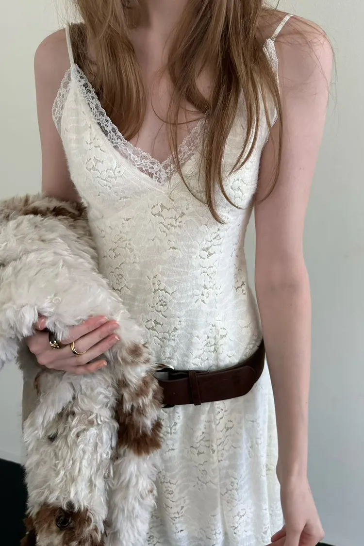 蕾絲V領細肩洋裝