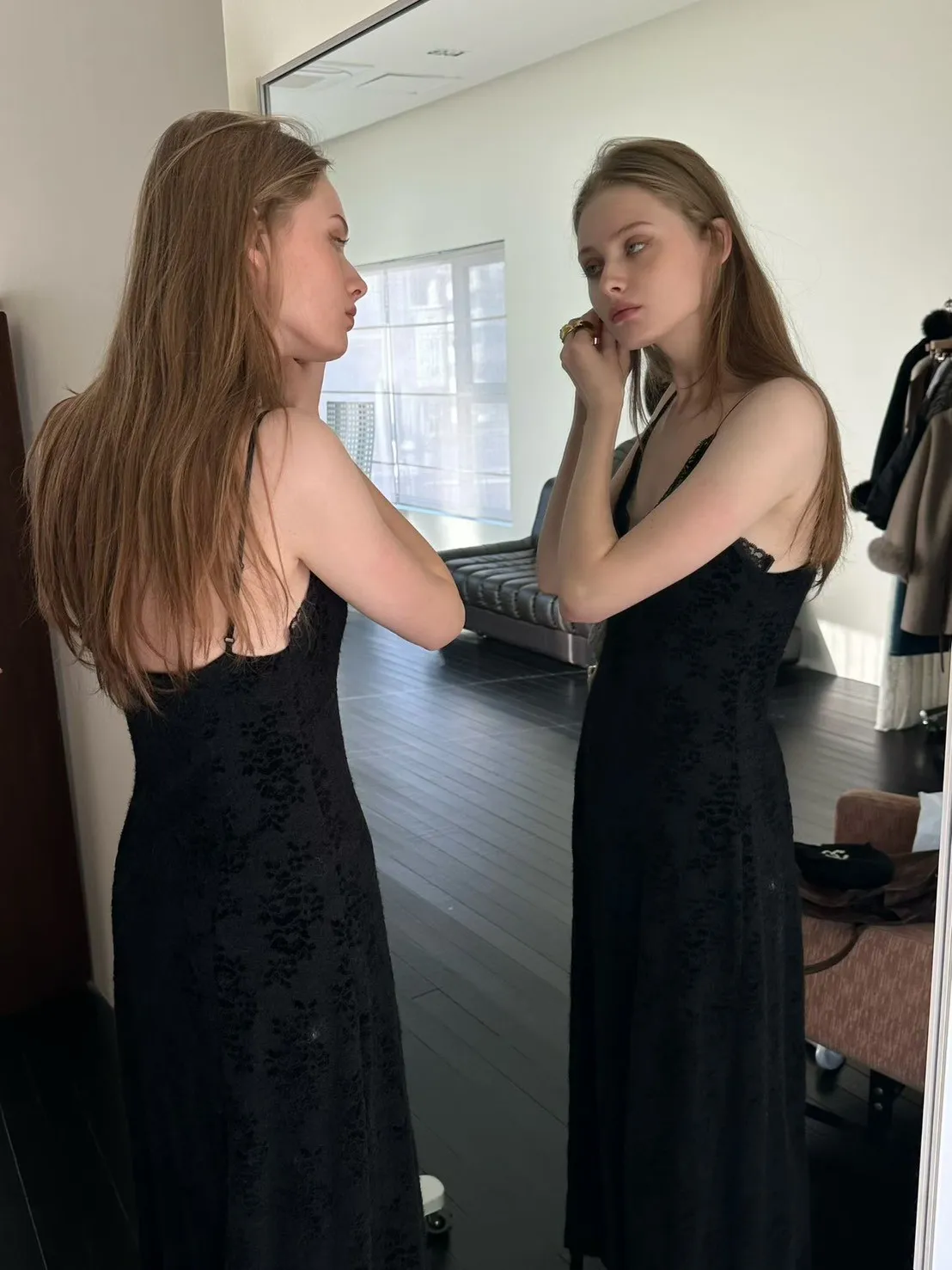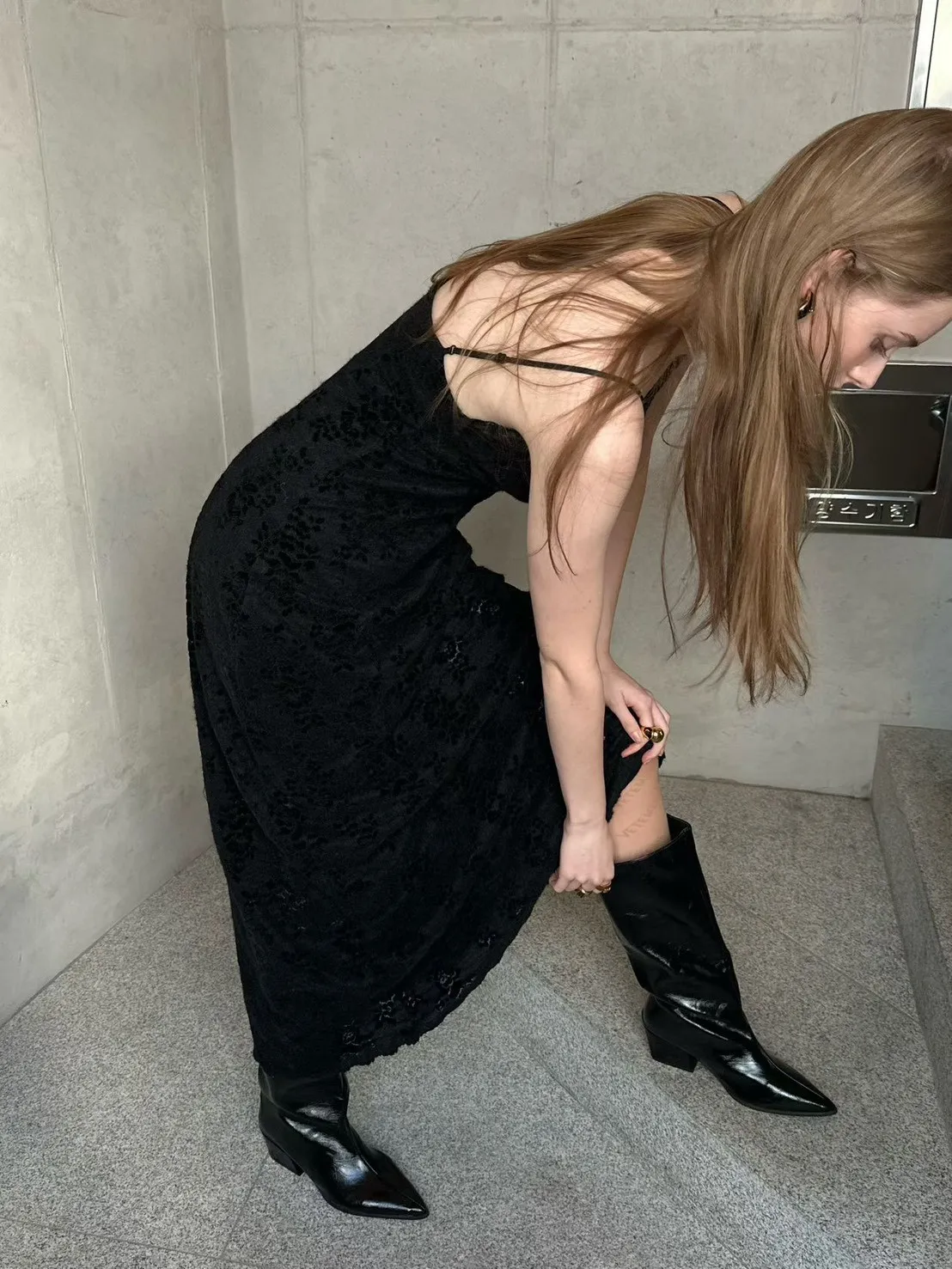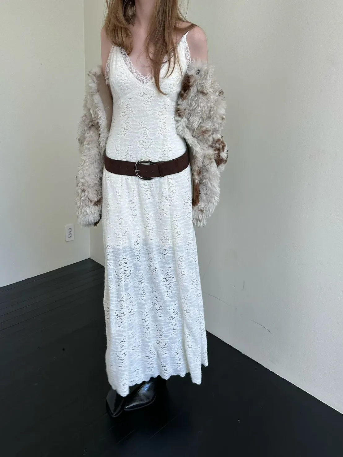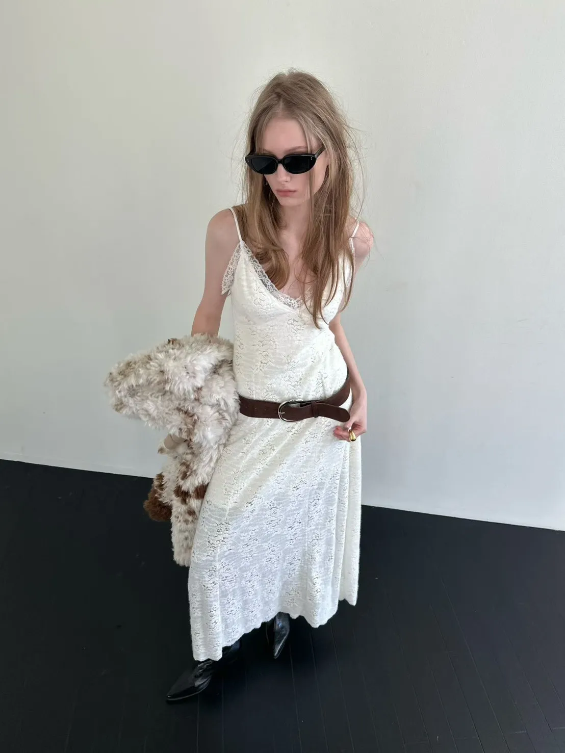 蕾絲V領細肩洋裝