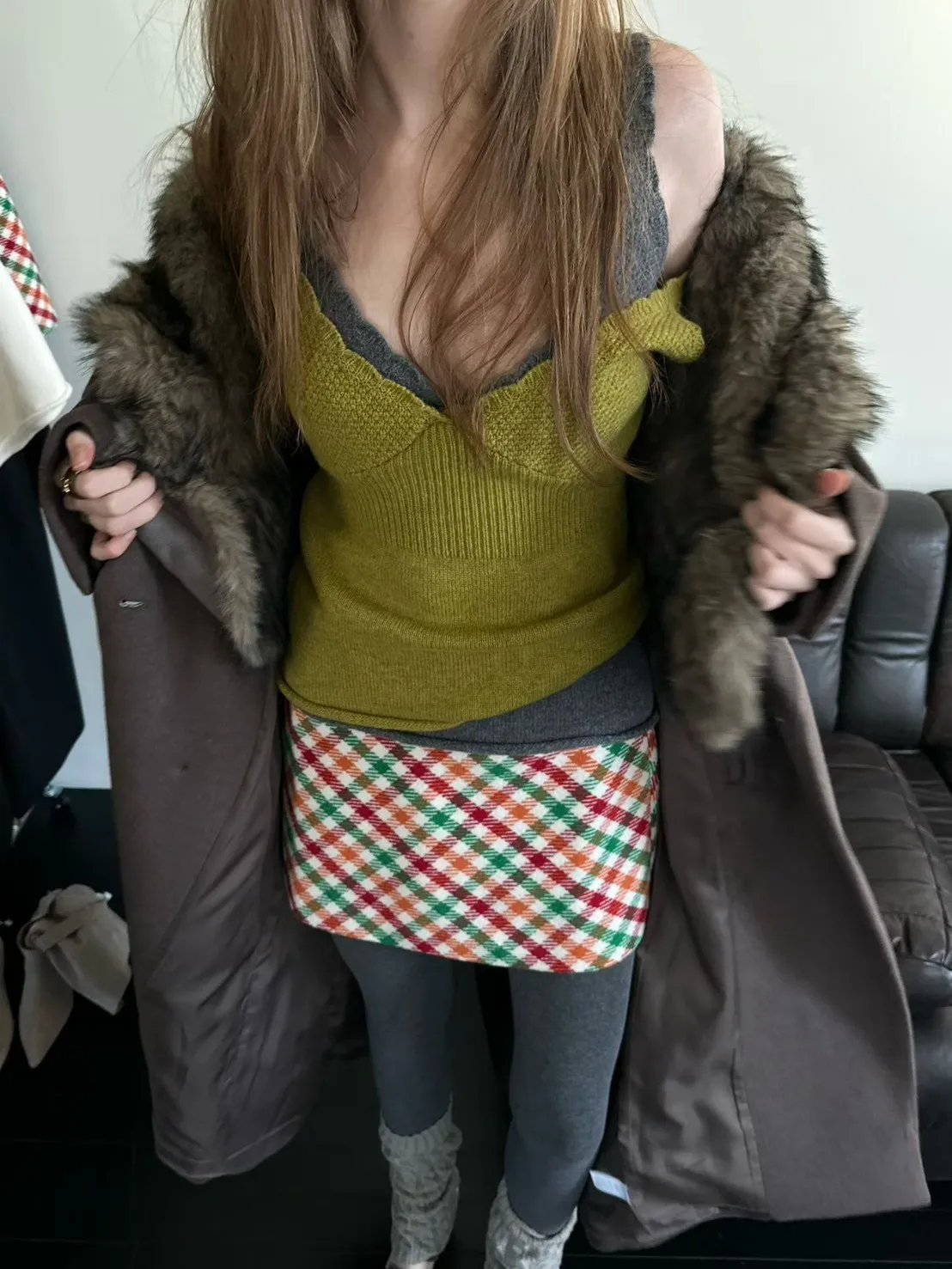 復古亮色格紋短裙