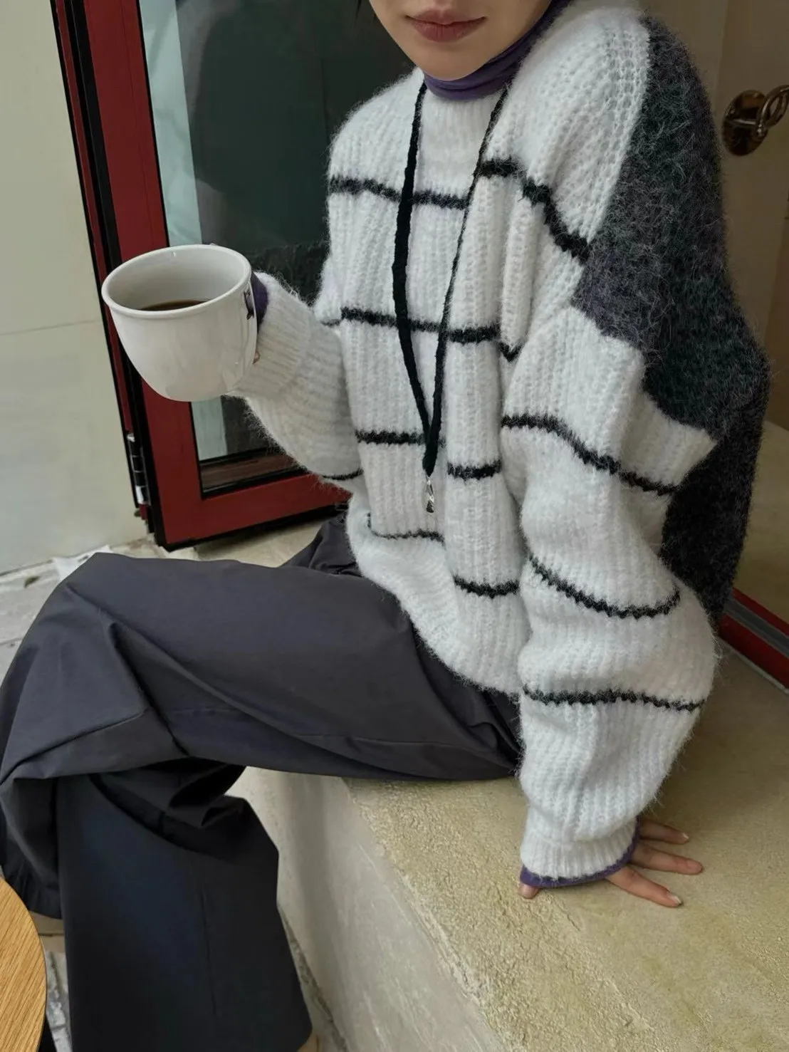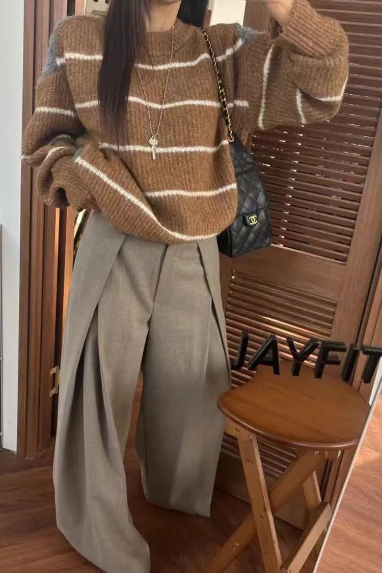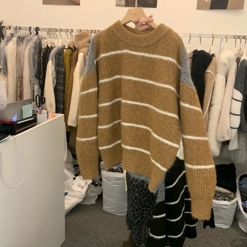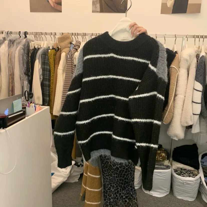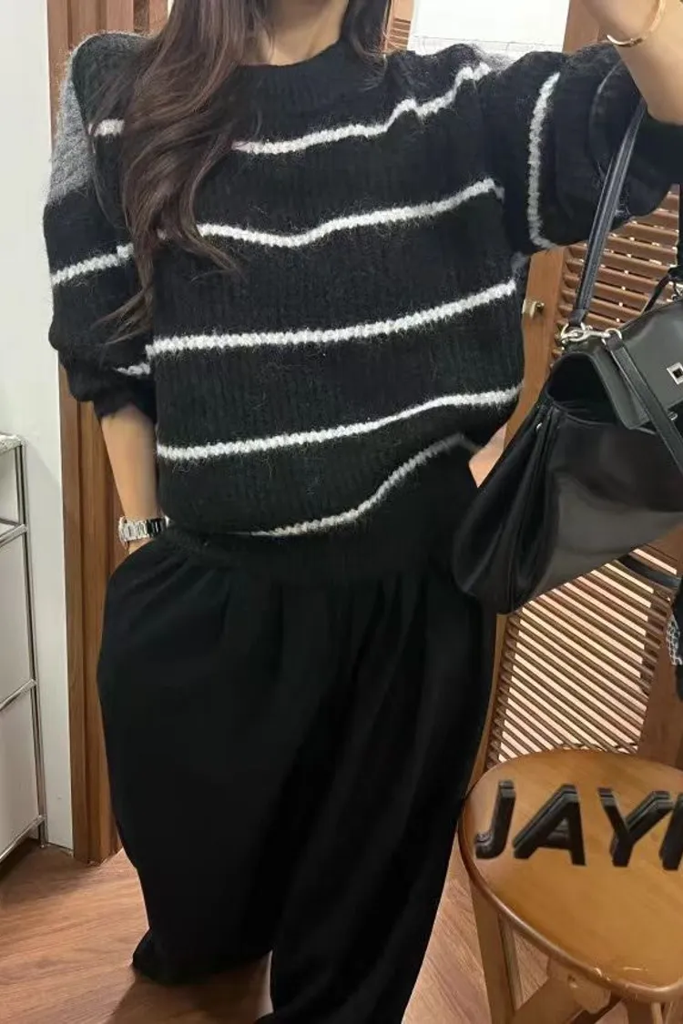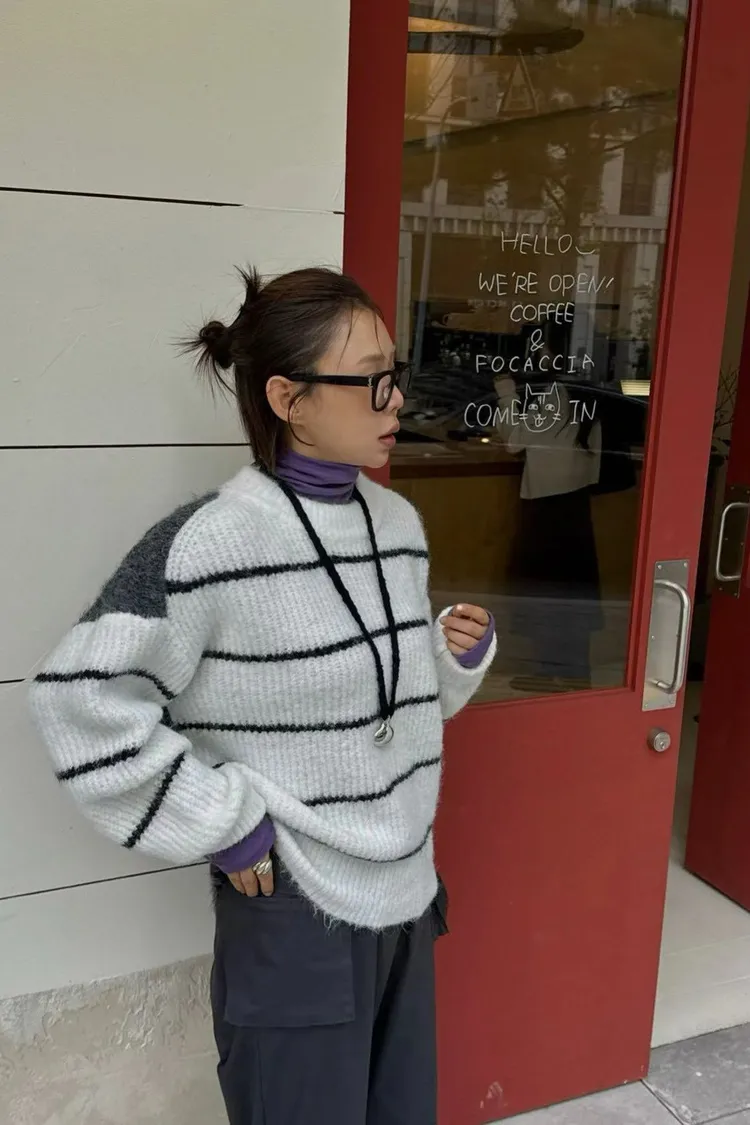 條紋厚針織毛衣