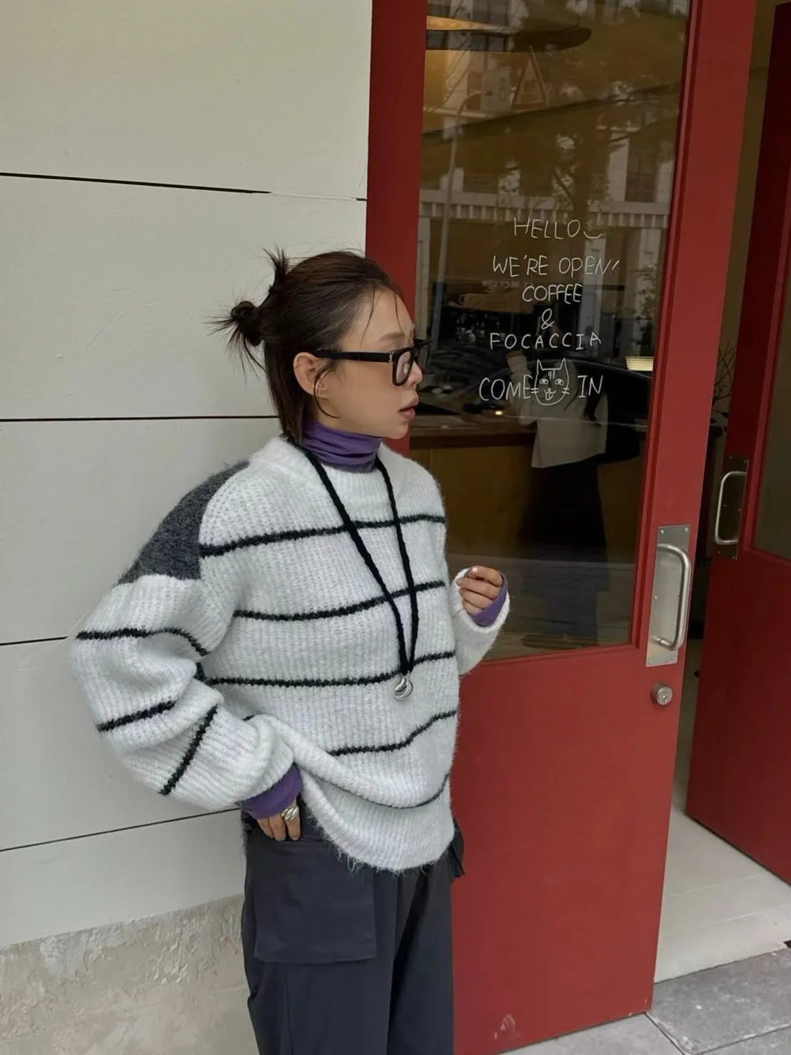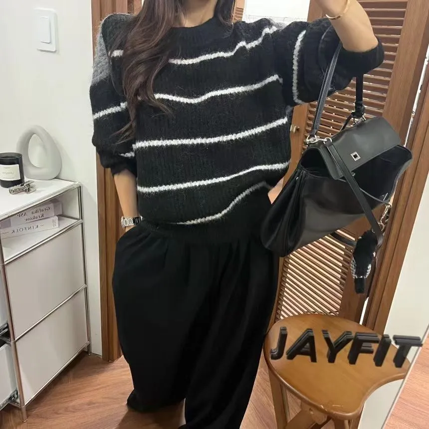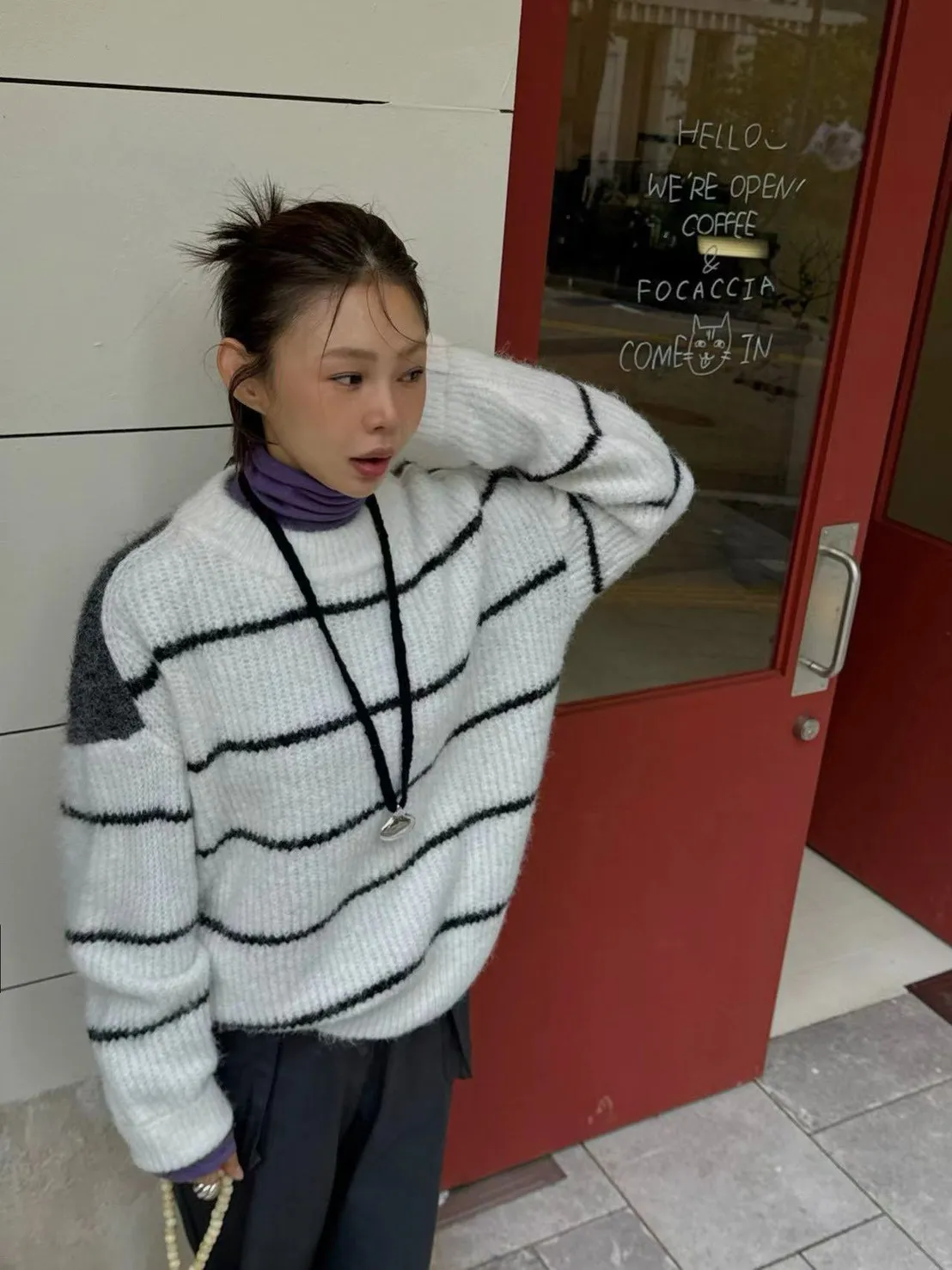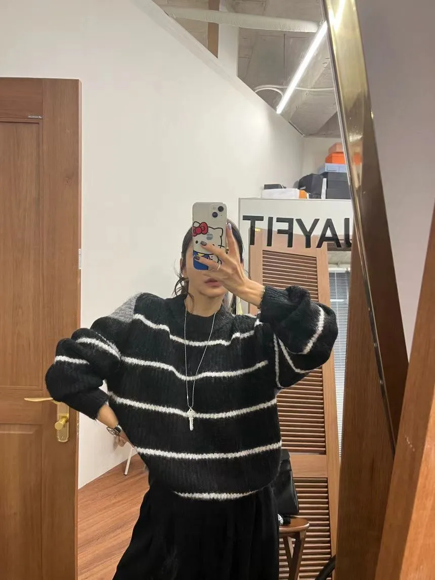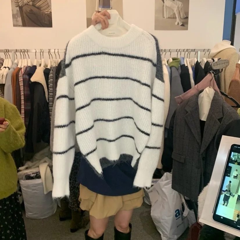 條紋厚針織毛衣