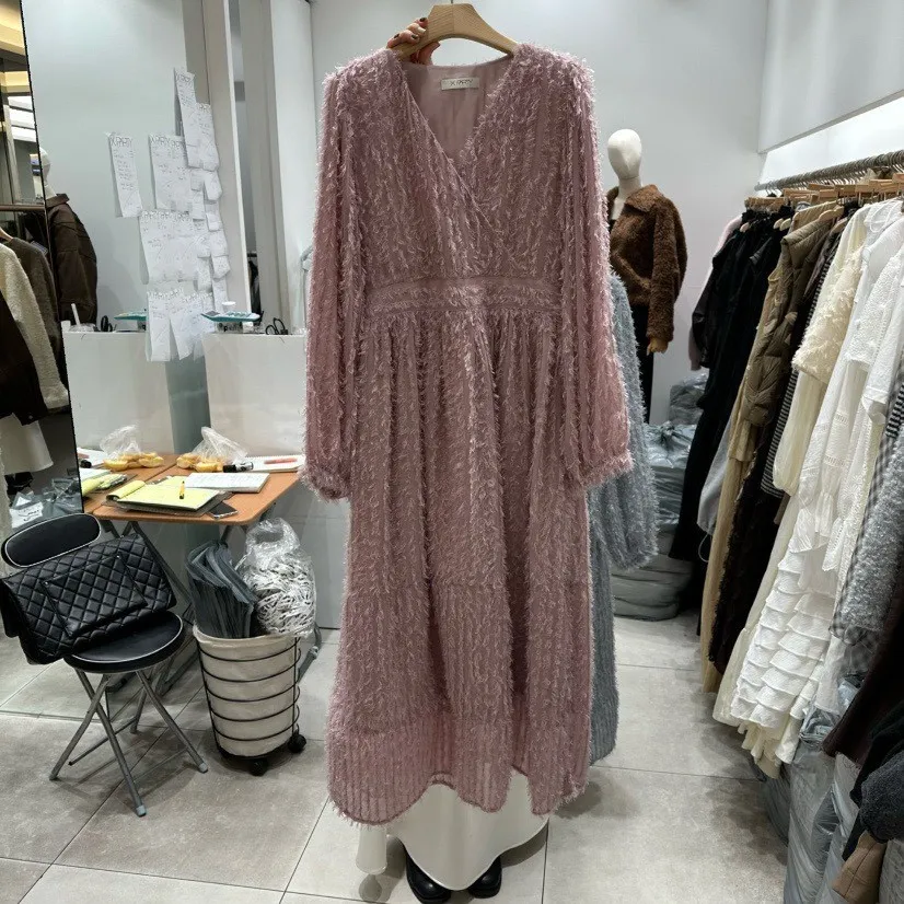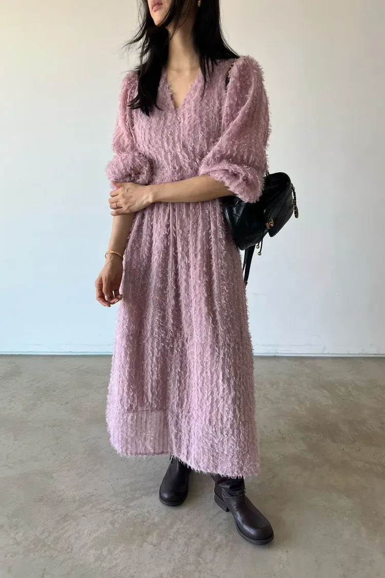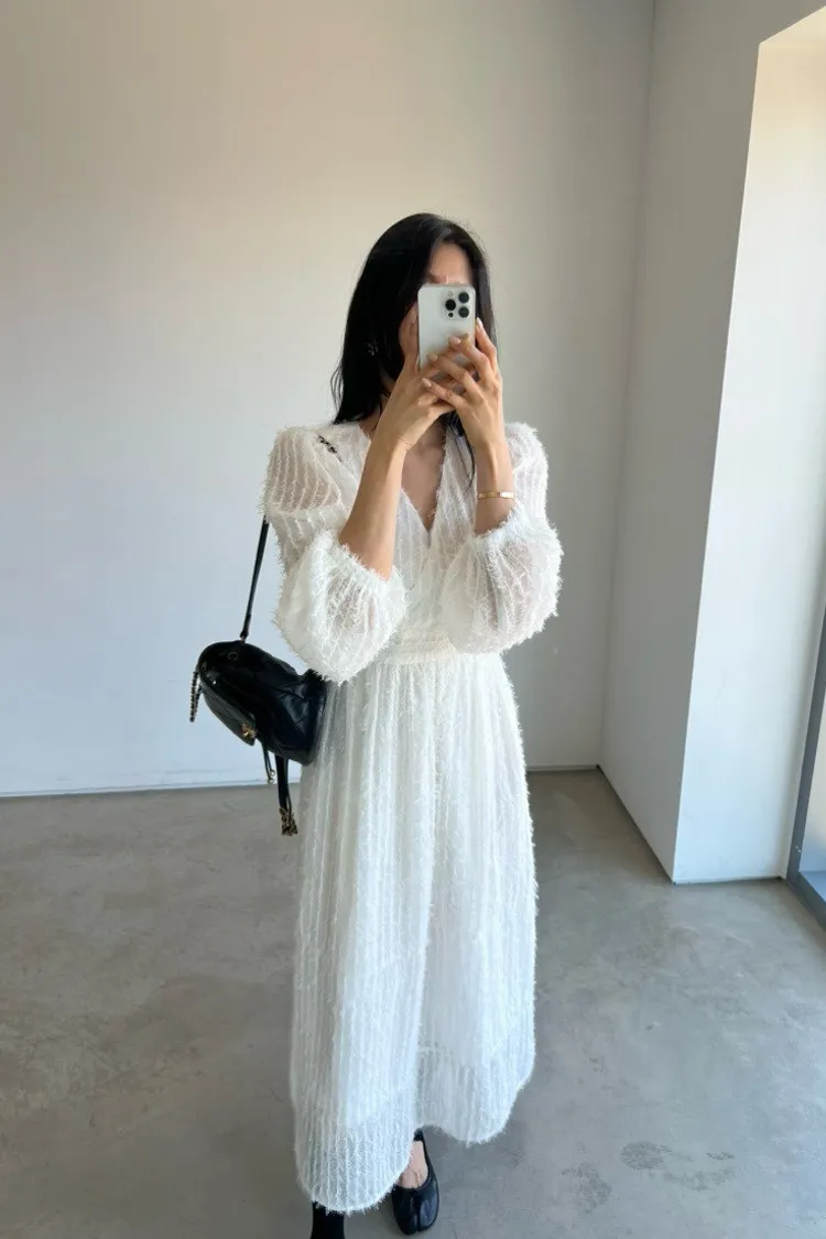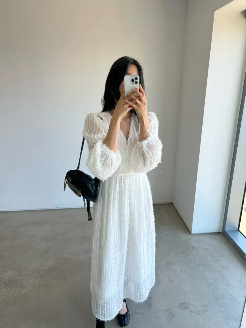羽毛蕾絲V領洋裝