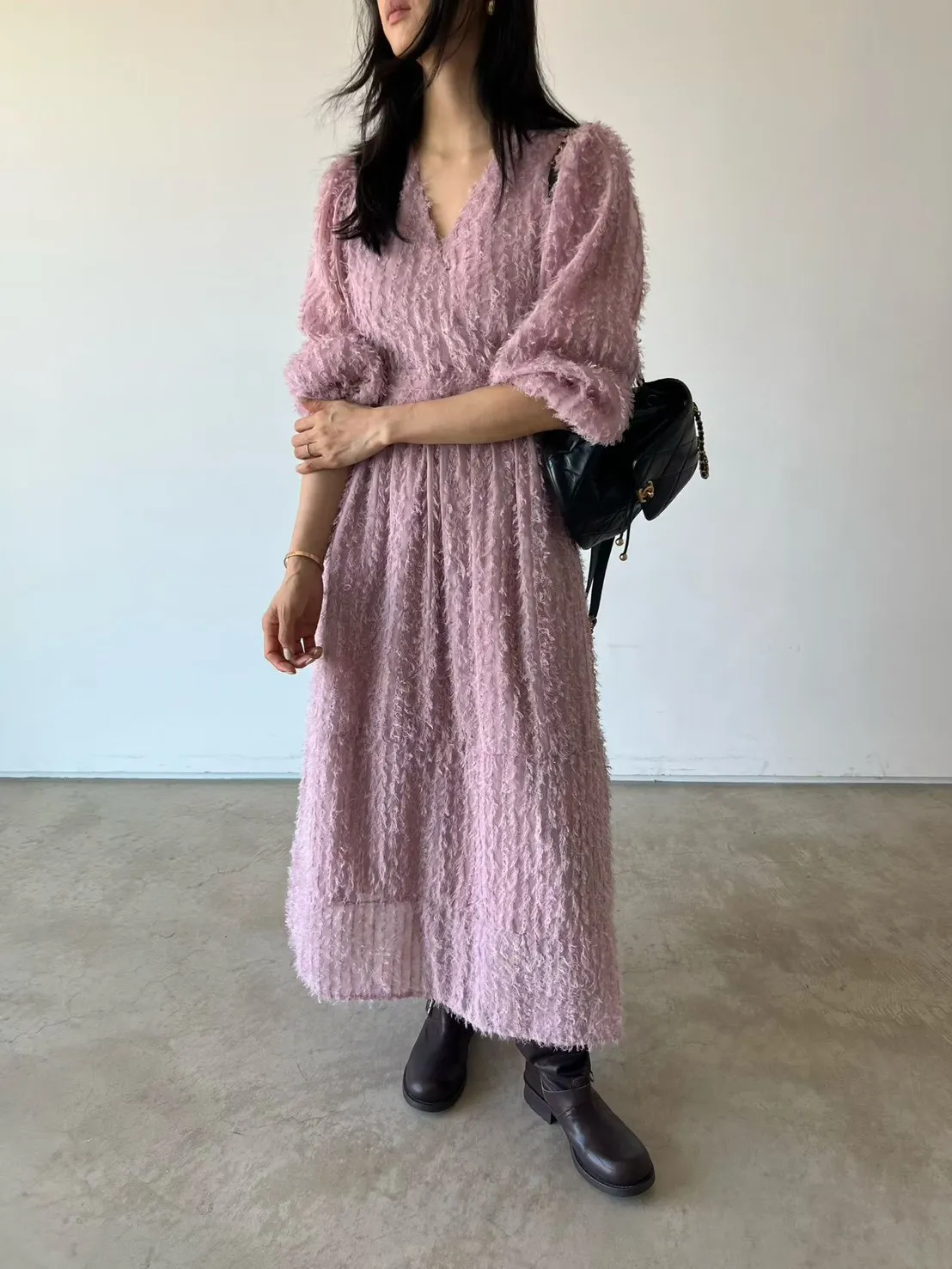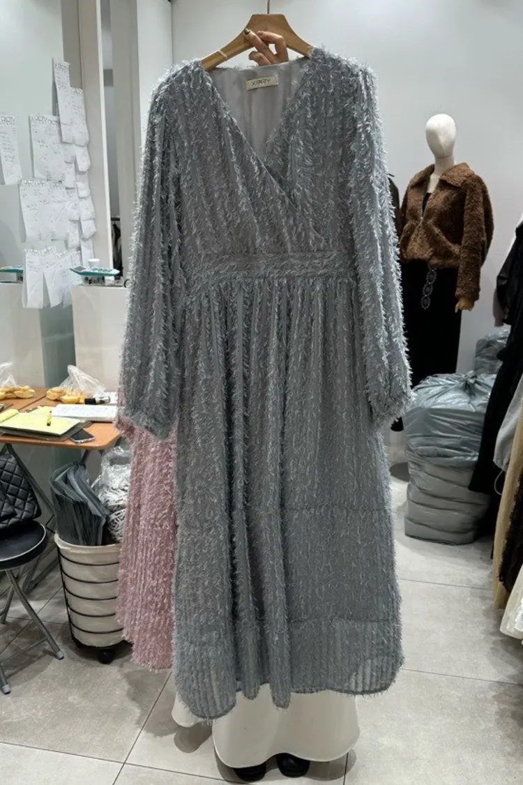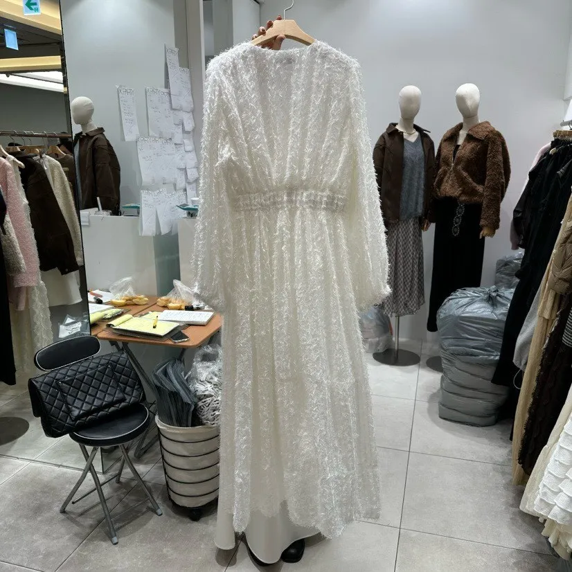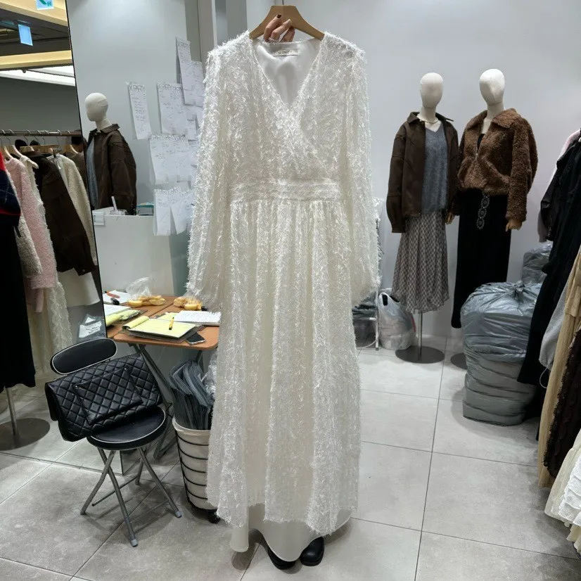 羽毛蕾絲V領洋裝
