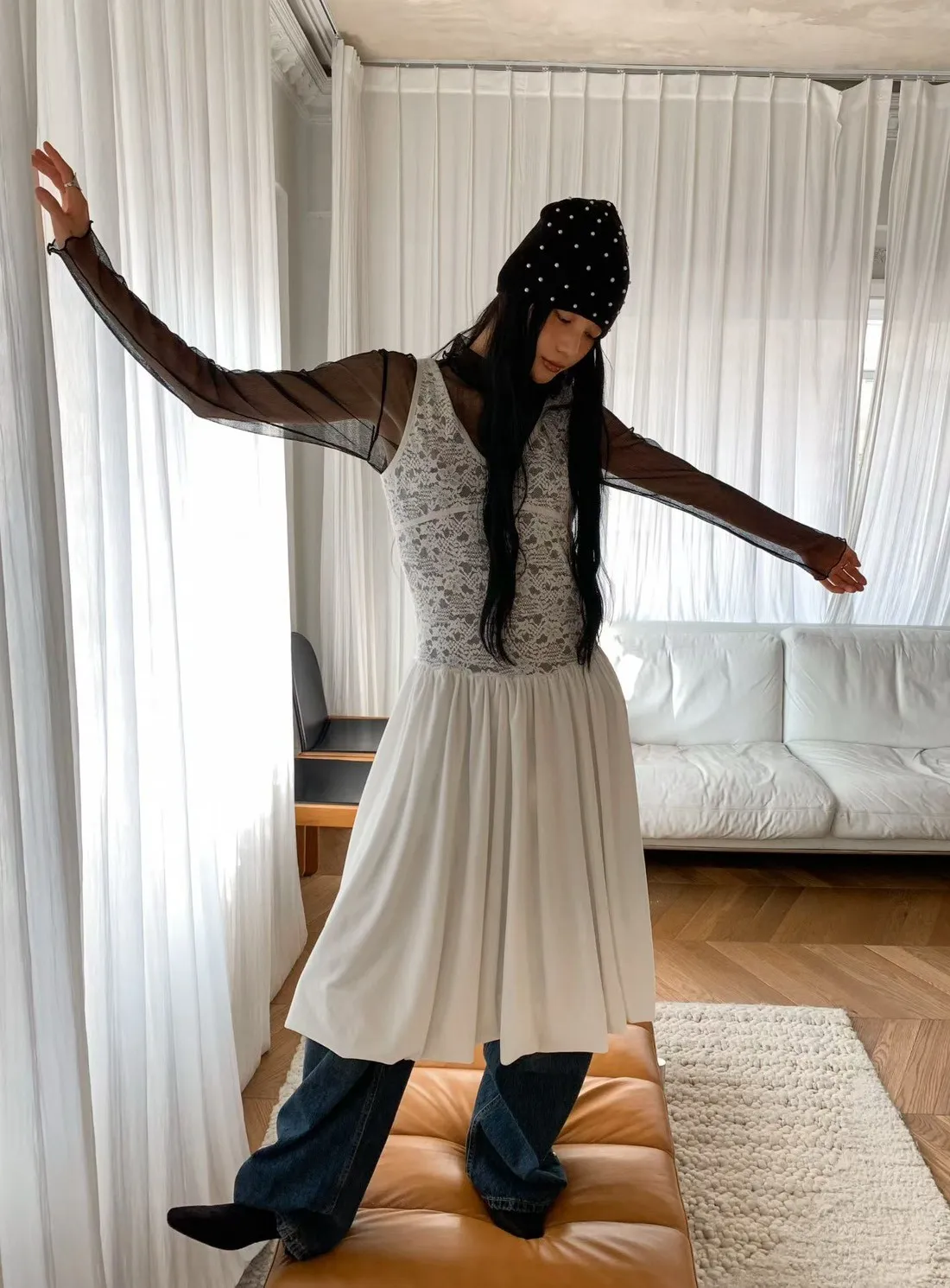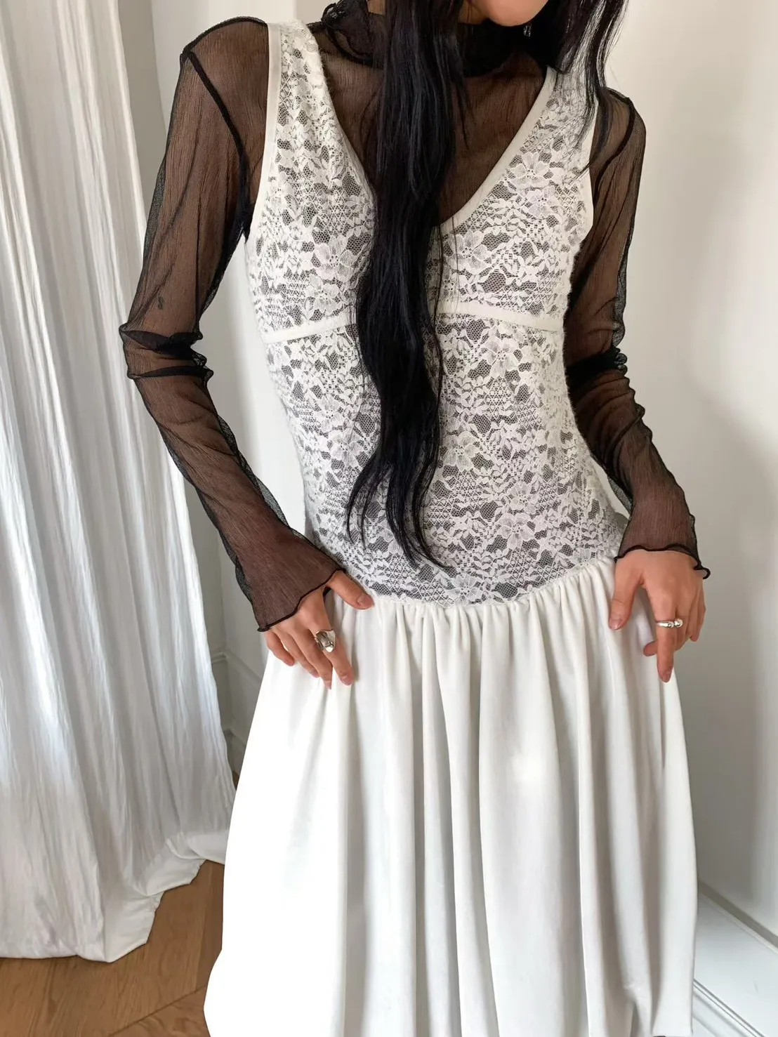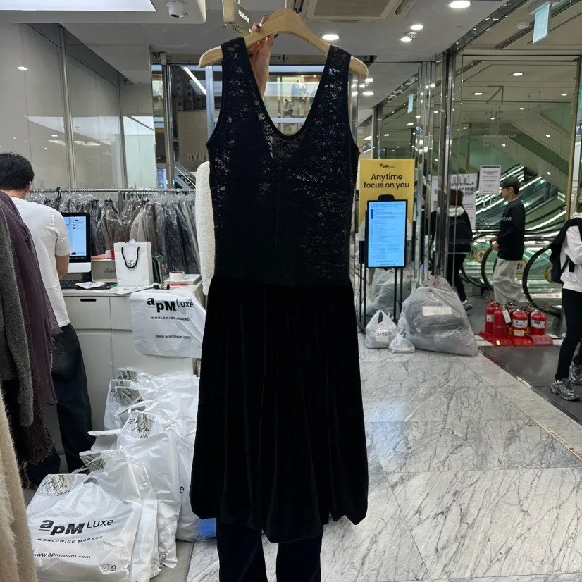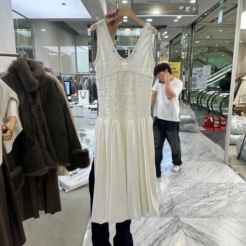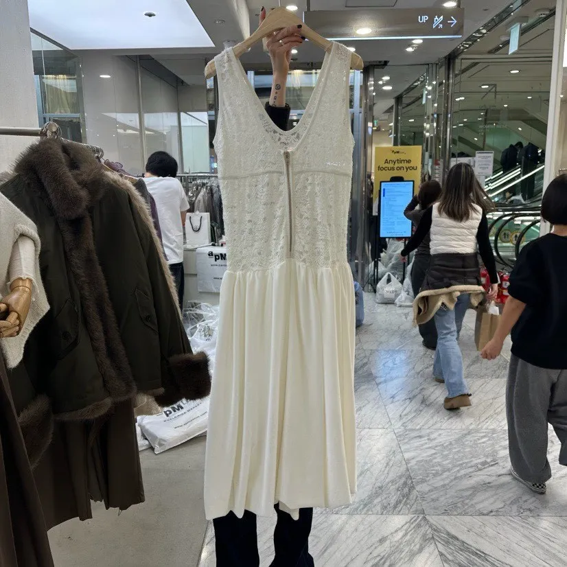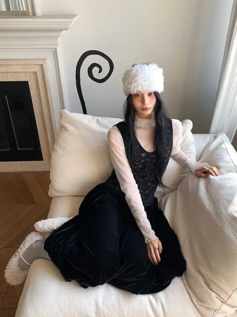 絨感蕾絲背心洋裝