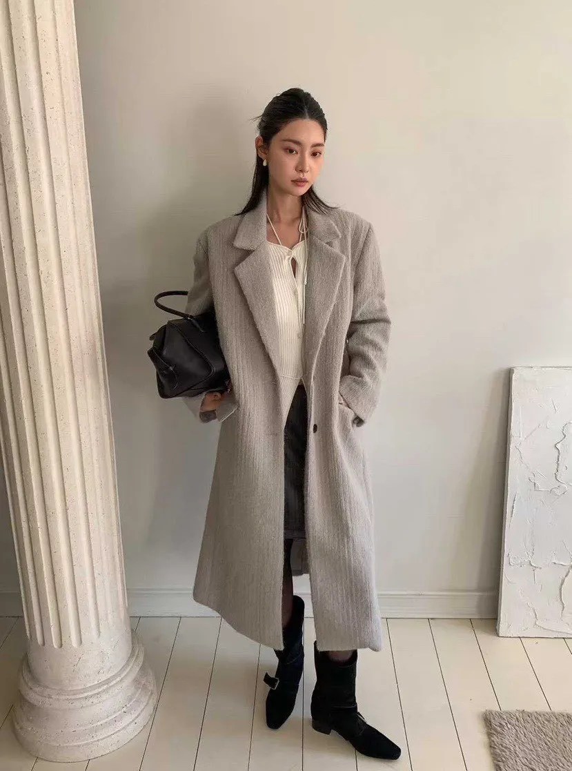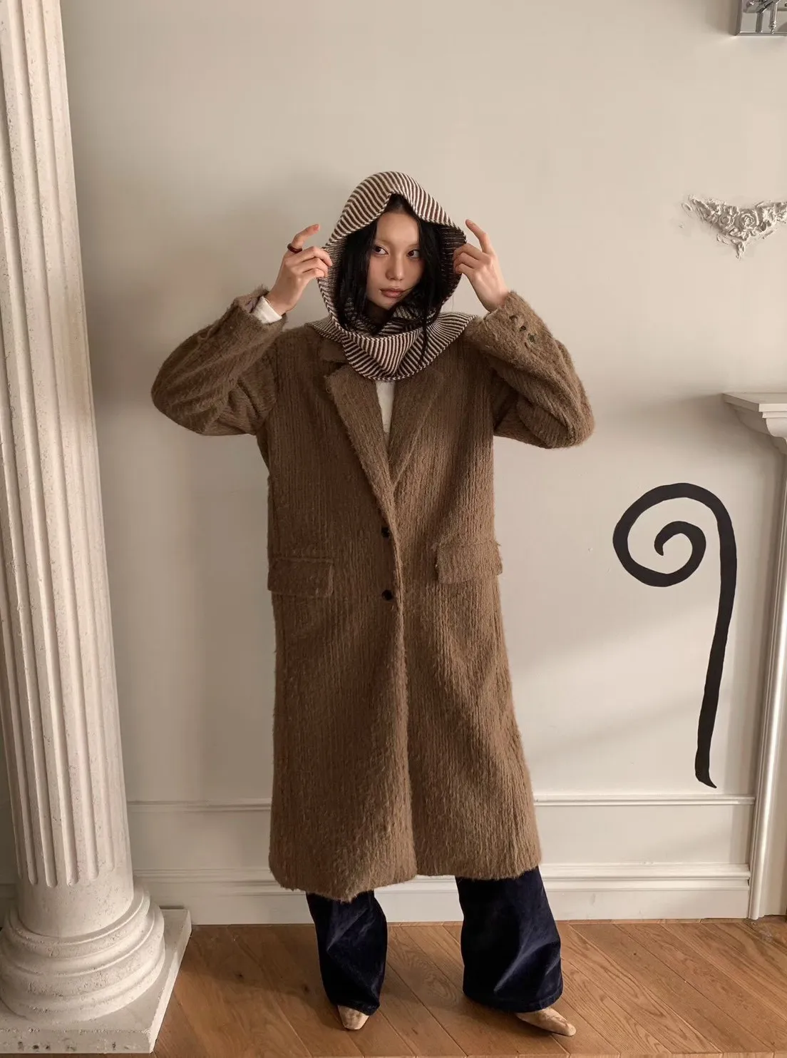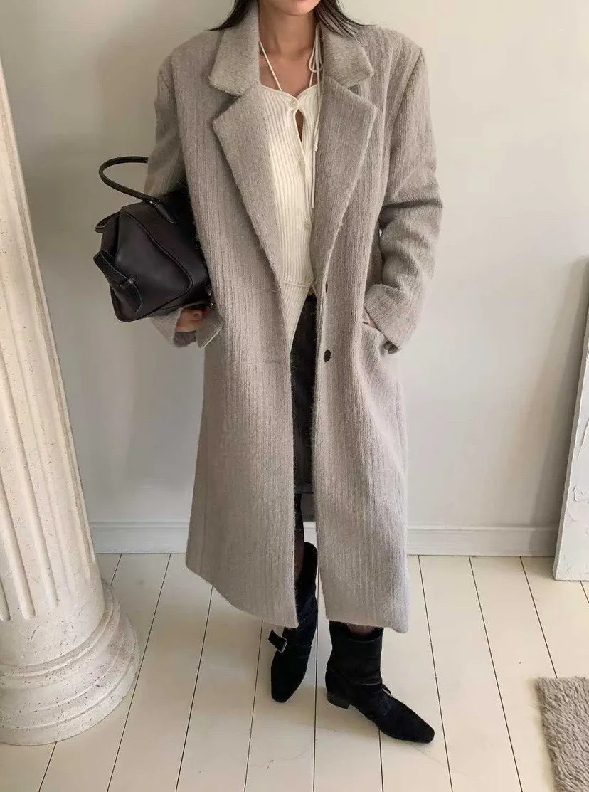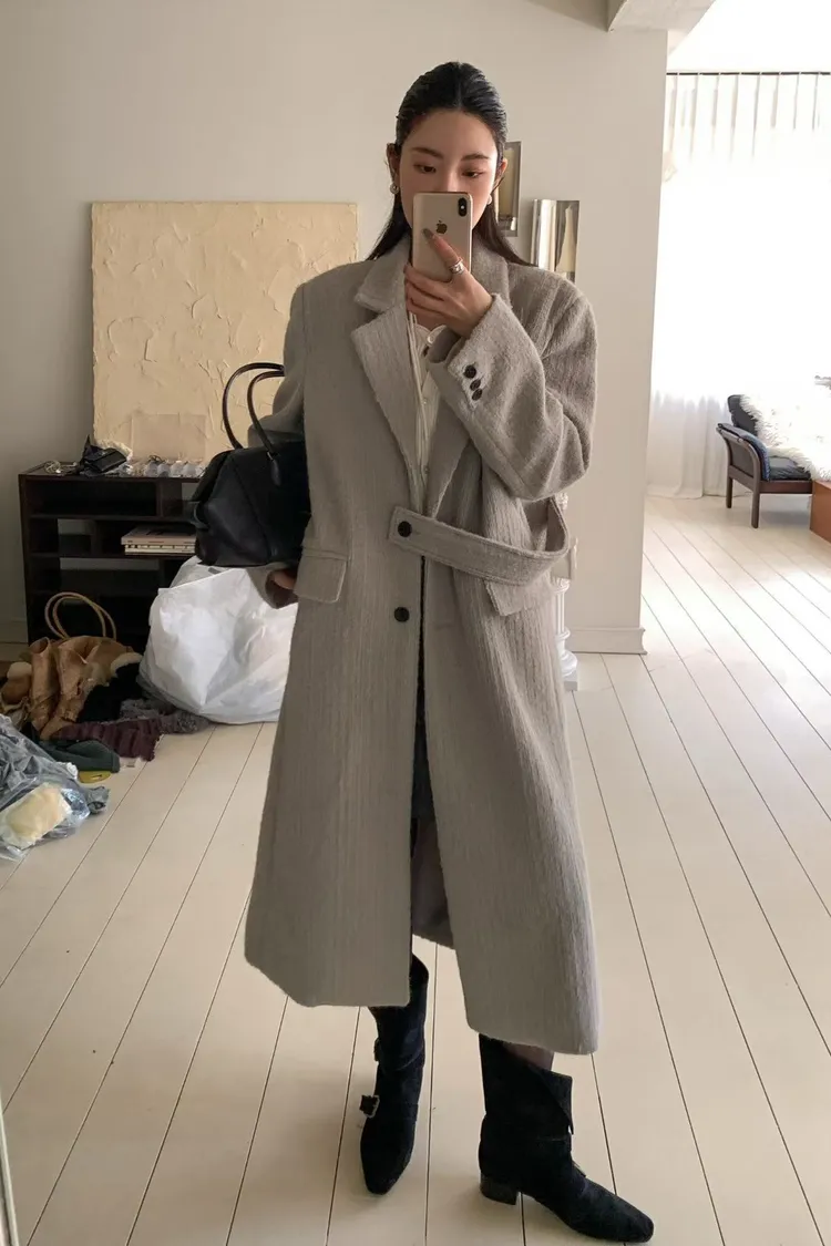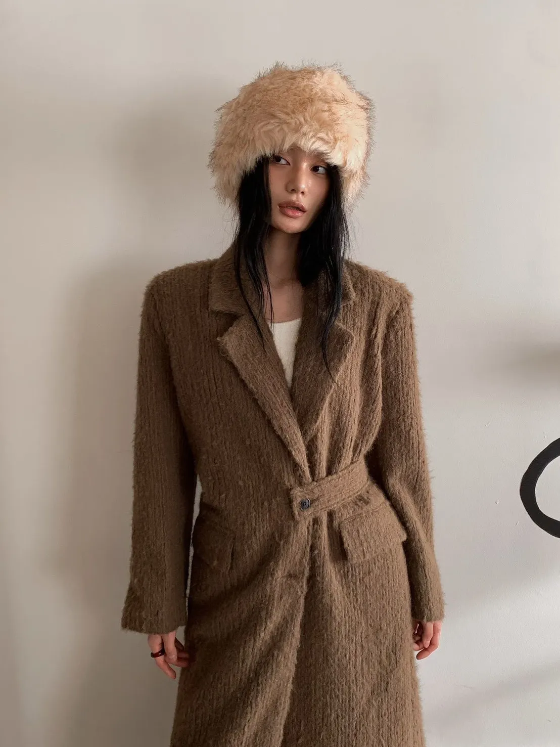毛感雙排釦翻領大衣