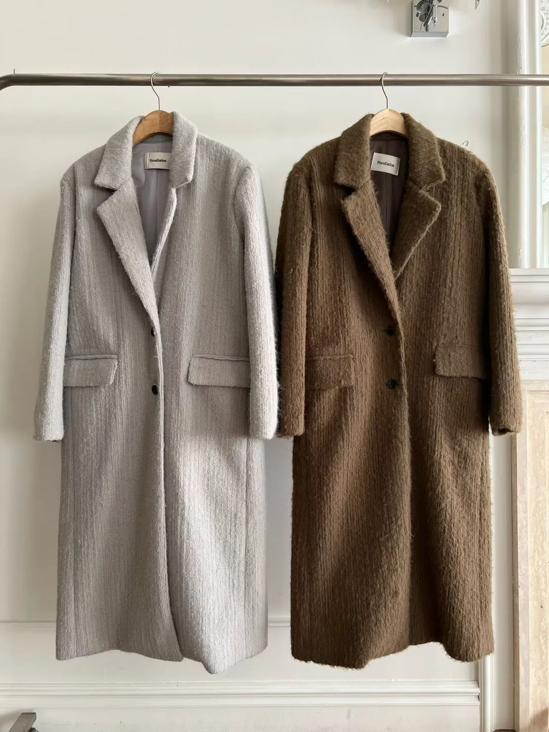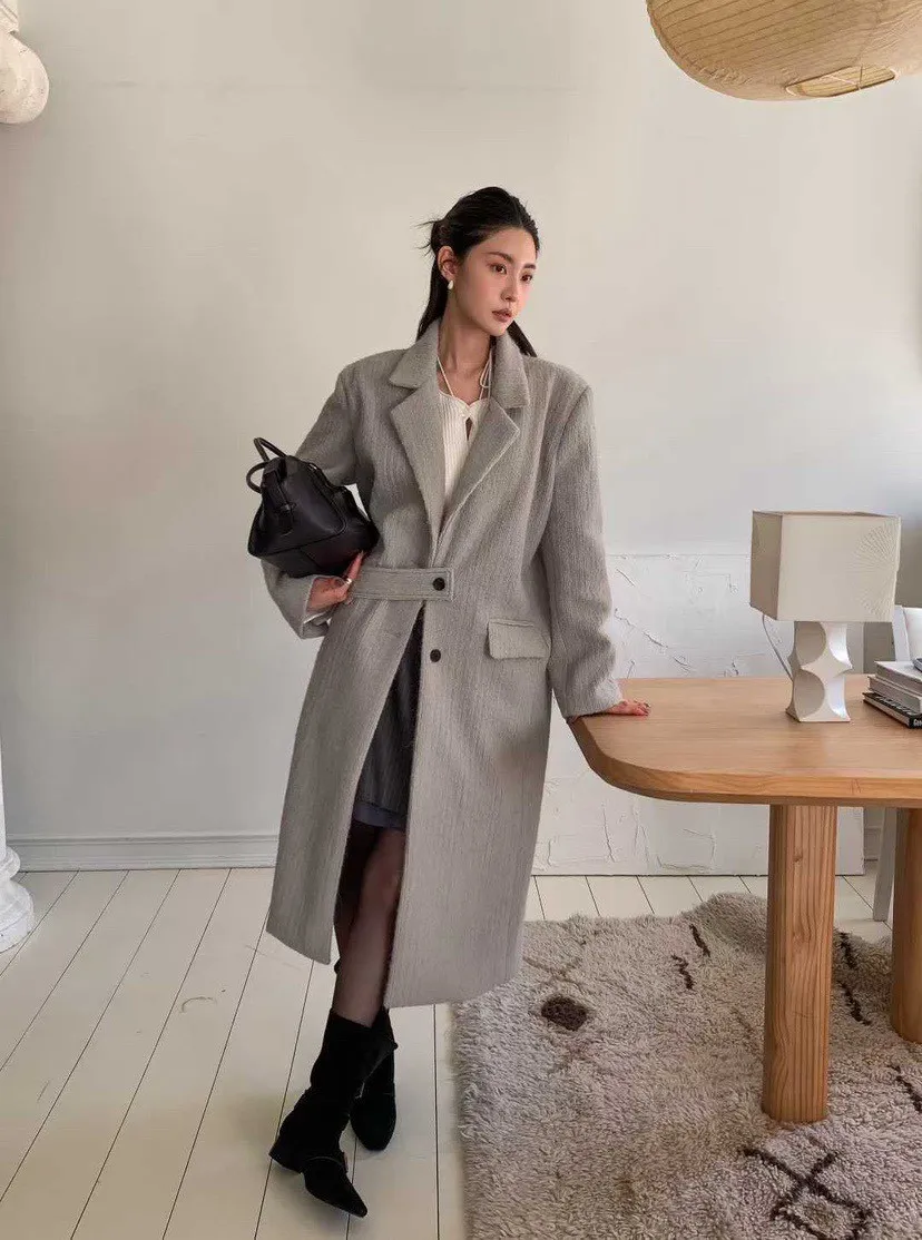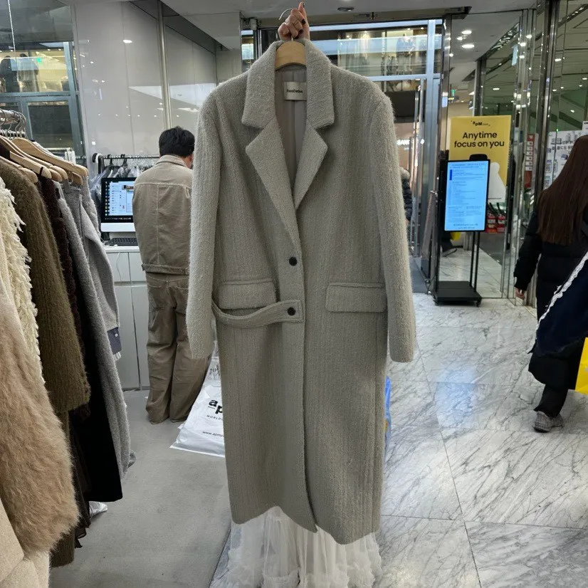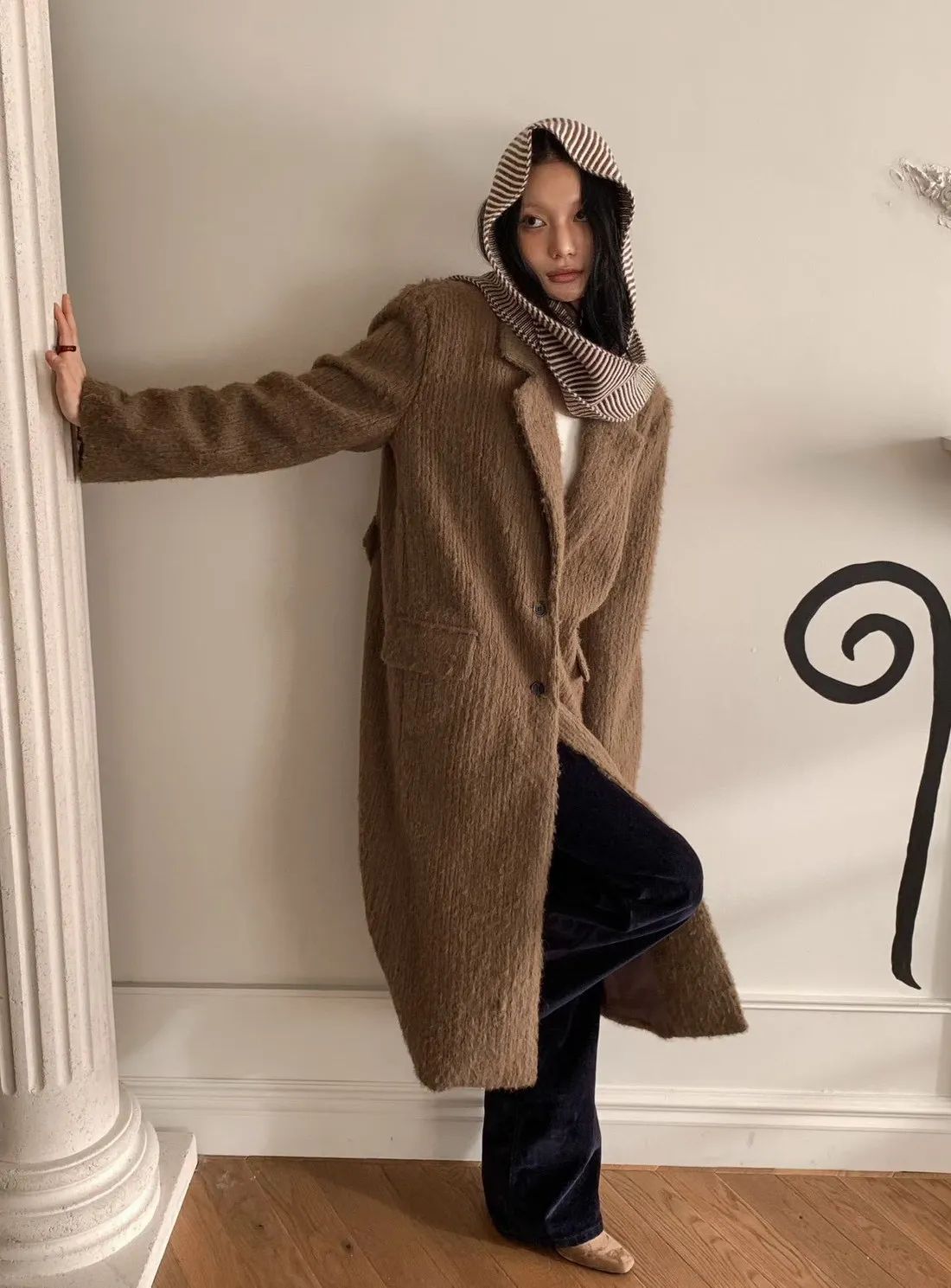 毛感雙排釦翻領大衣