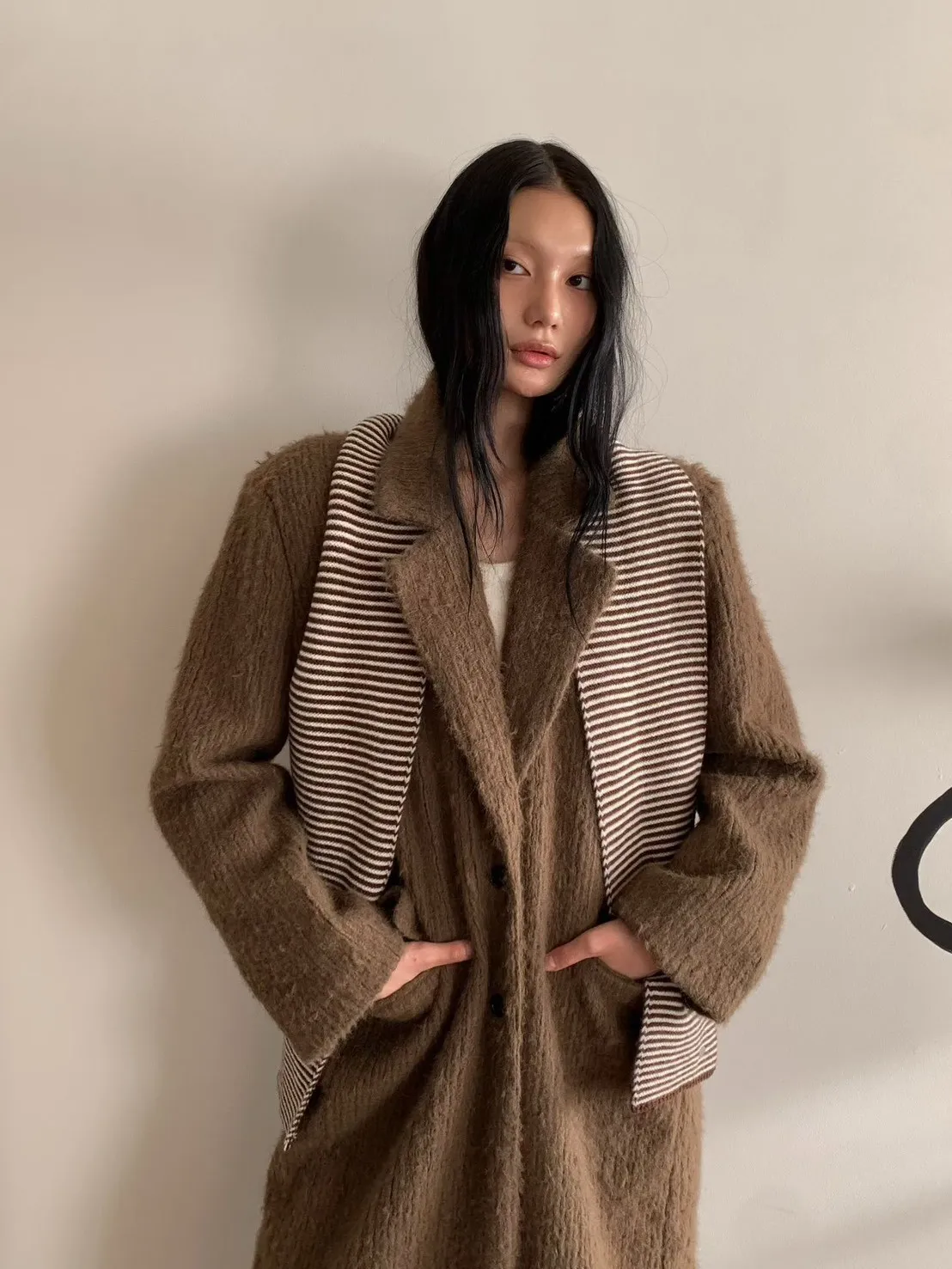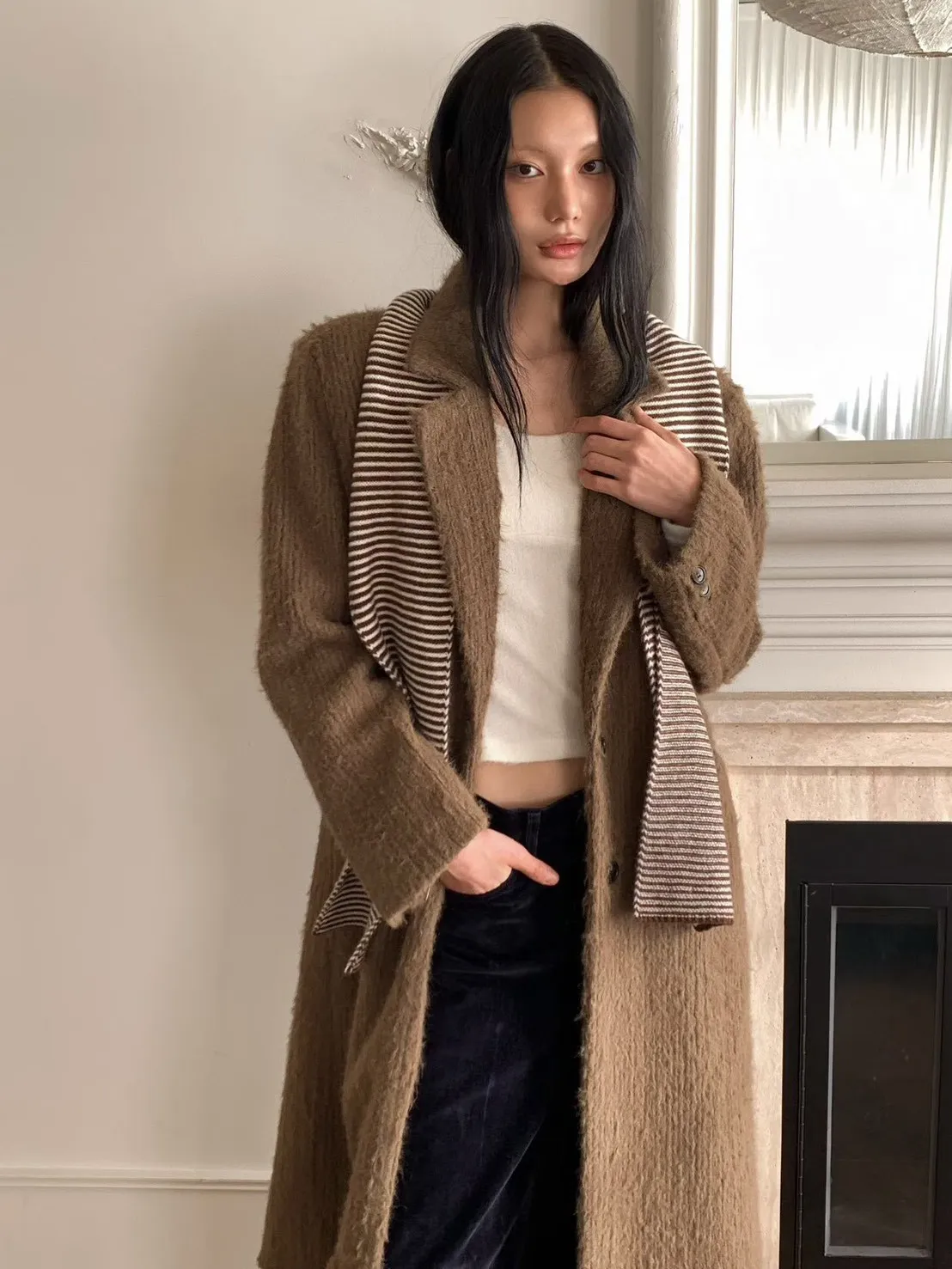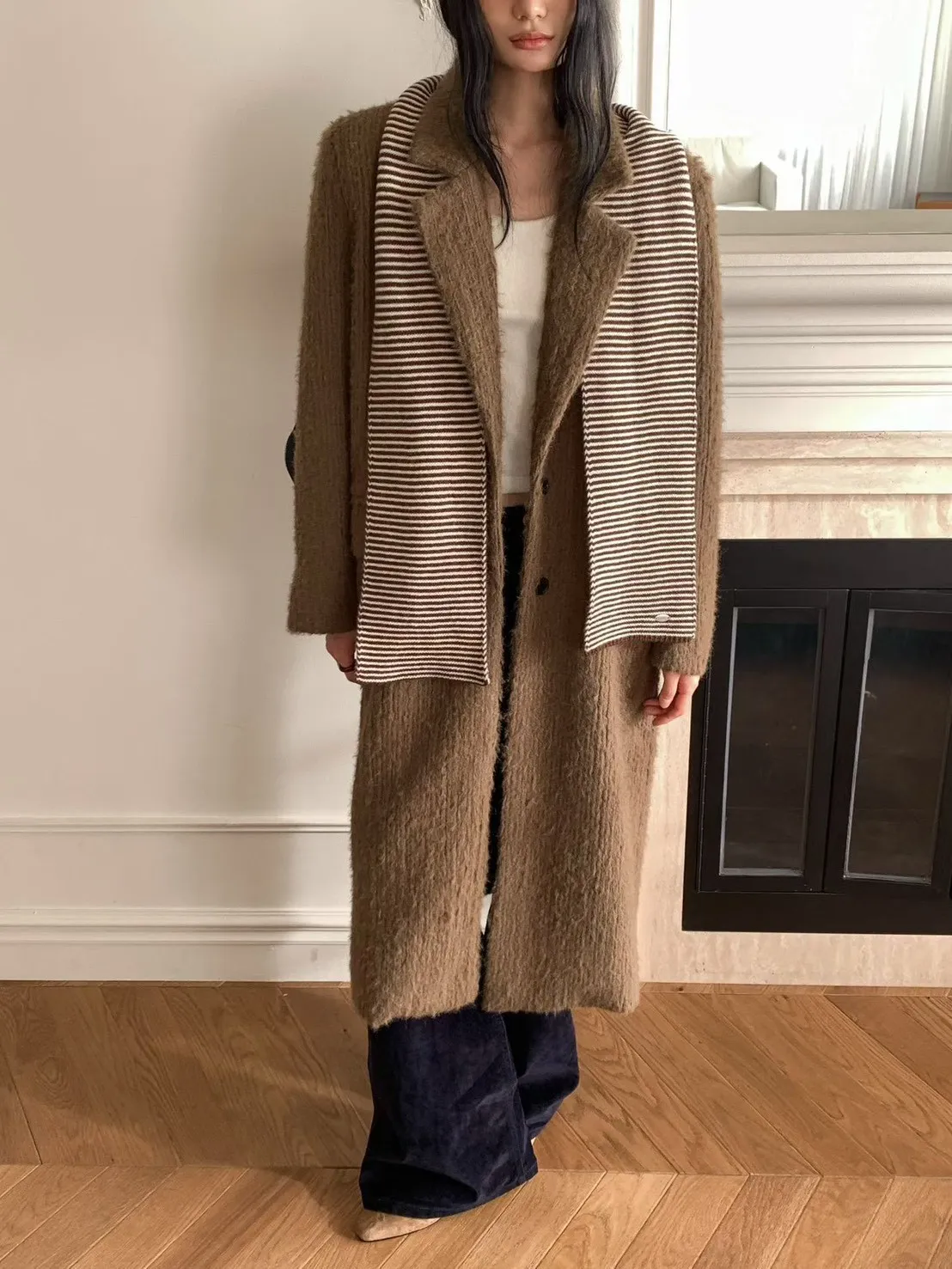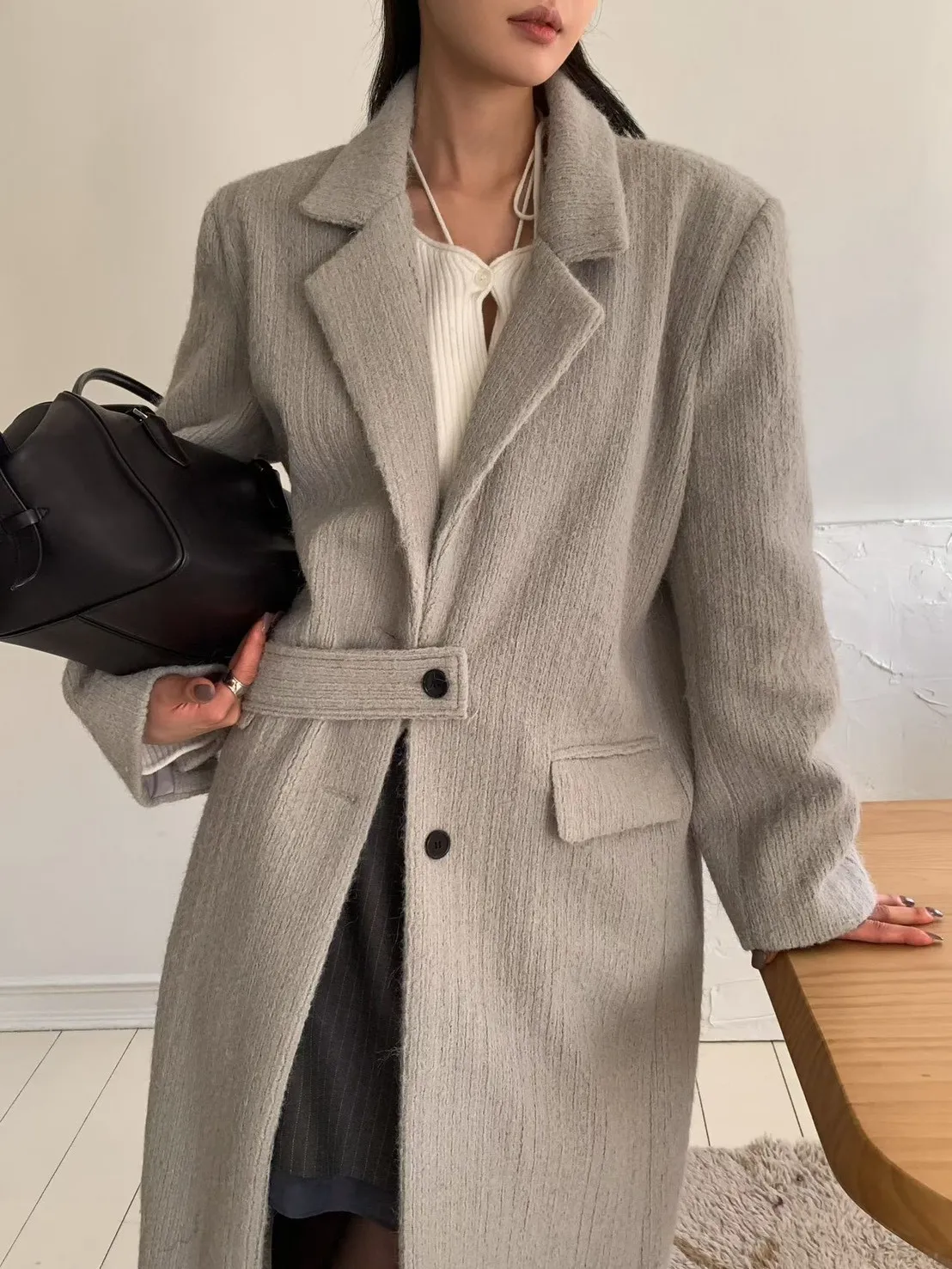 毛感雙排釦翻領大衣