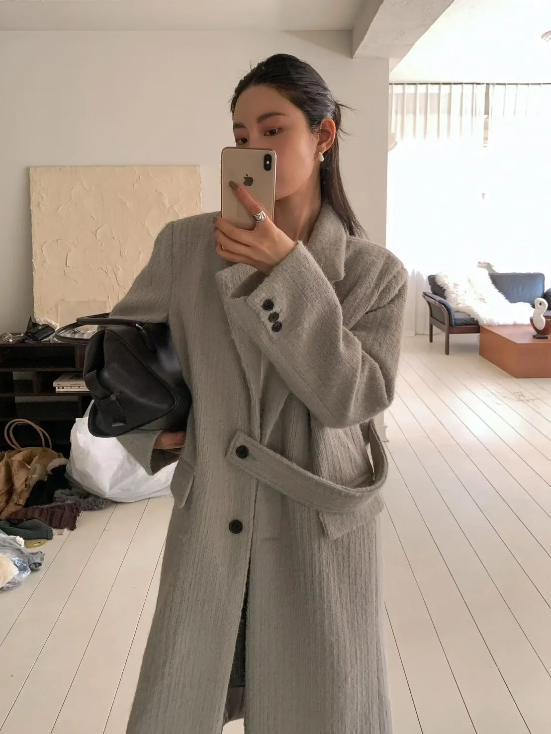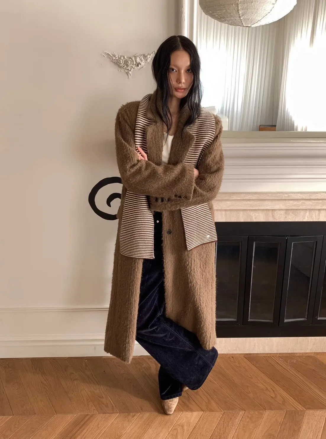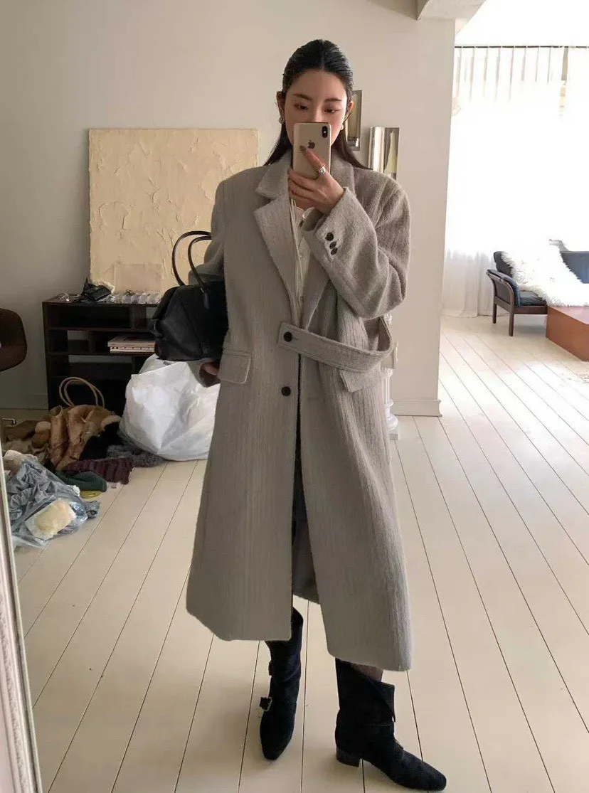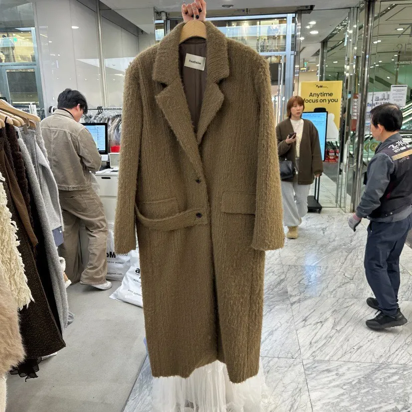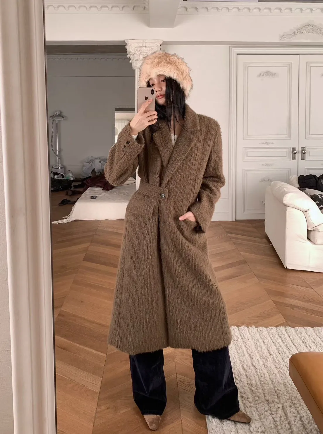 毛感雙排釦翻領大衣