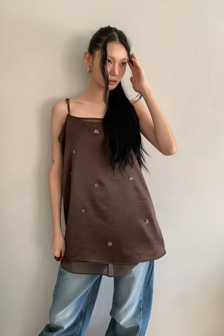 花瓣鑽雪紡背心
