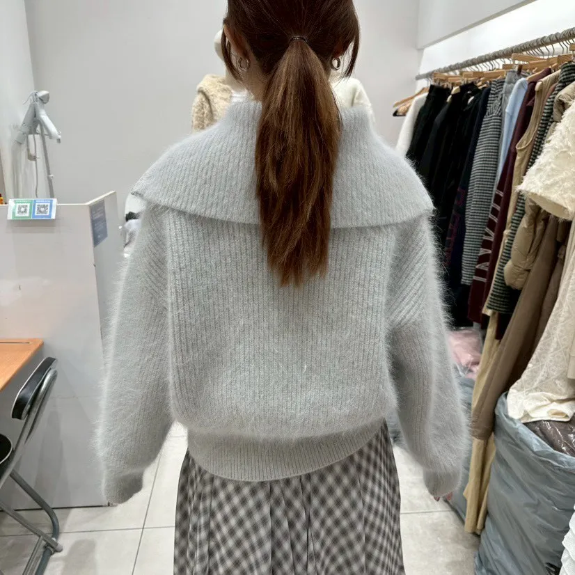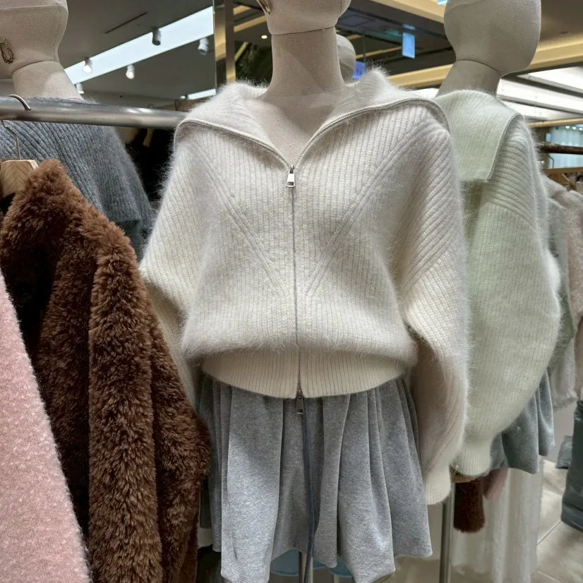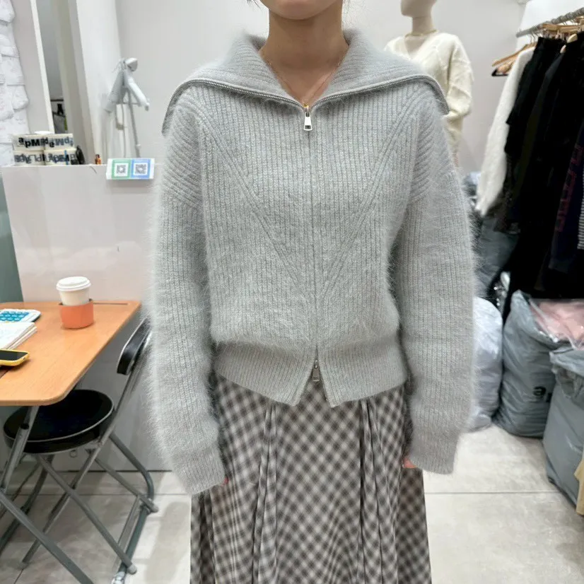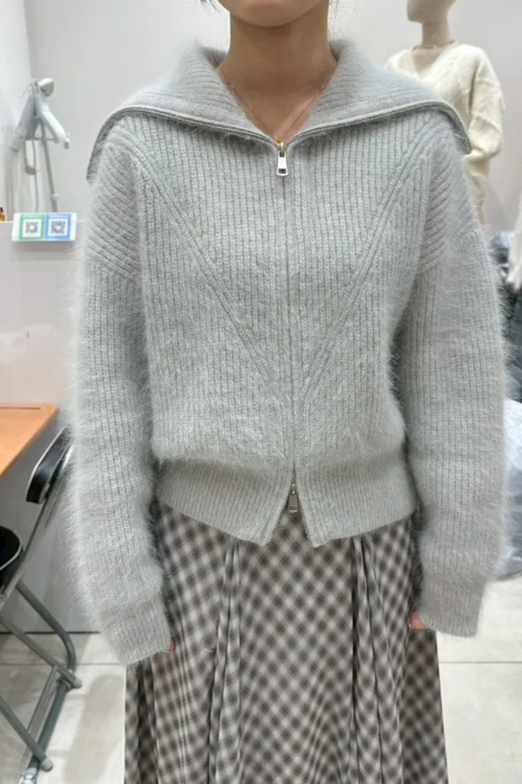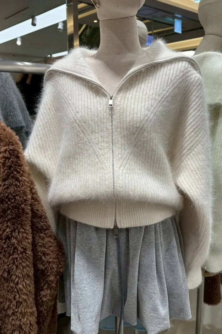 雙拉鍊翻領毛外套