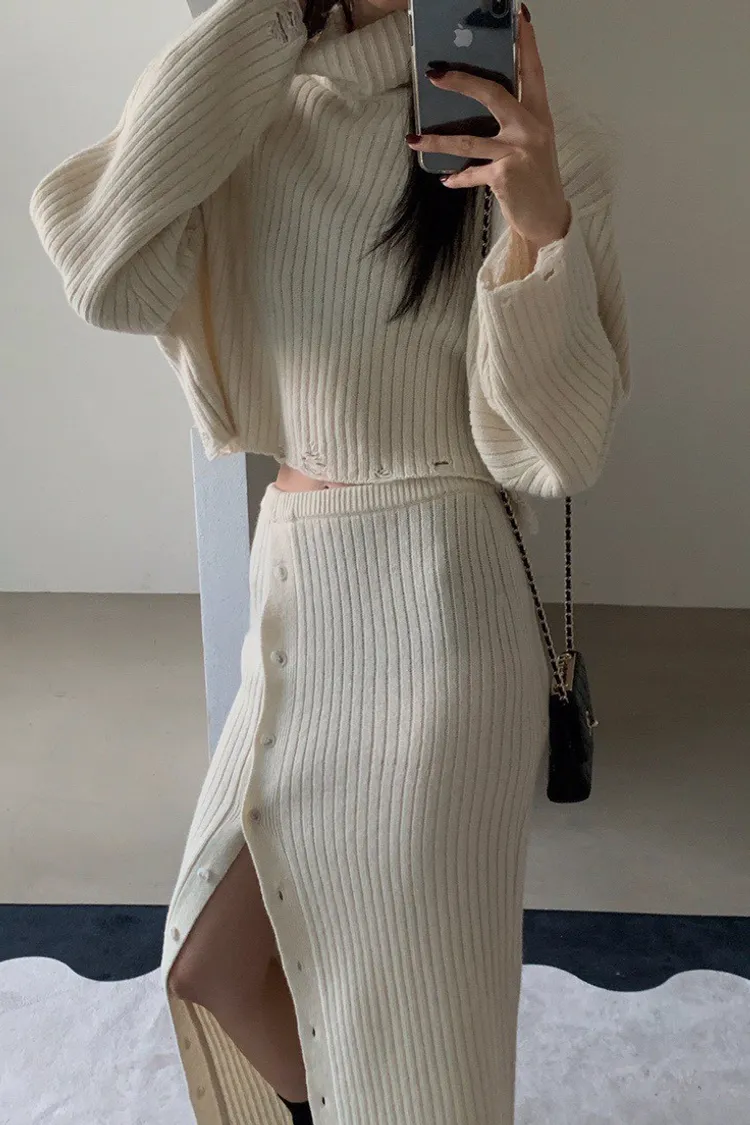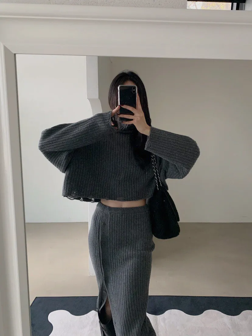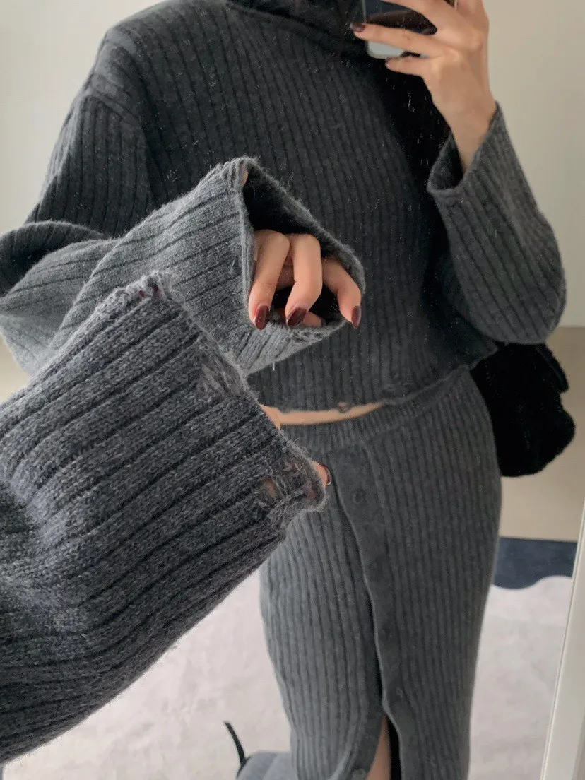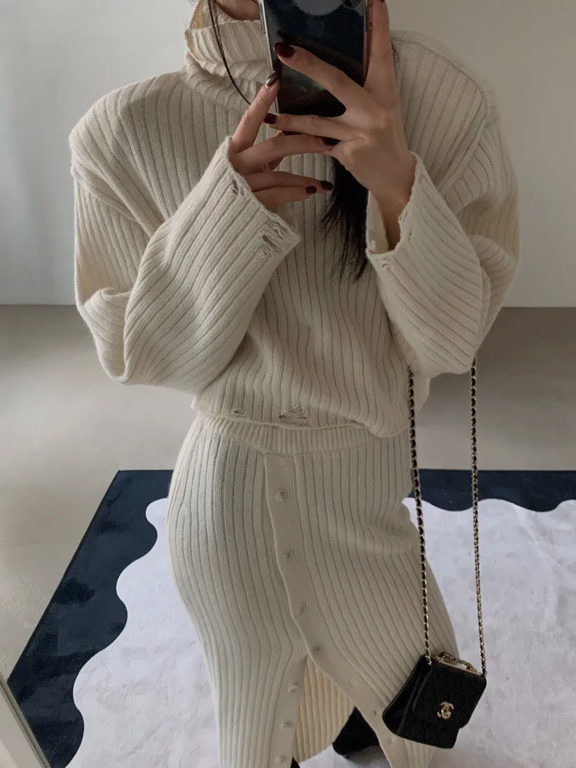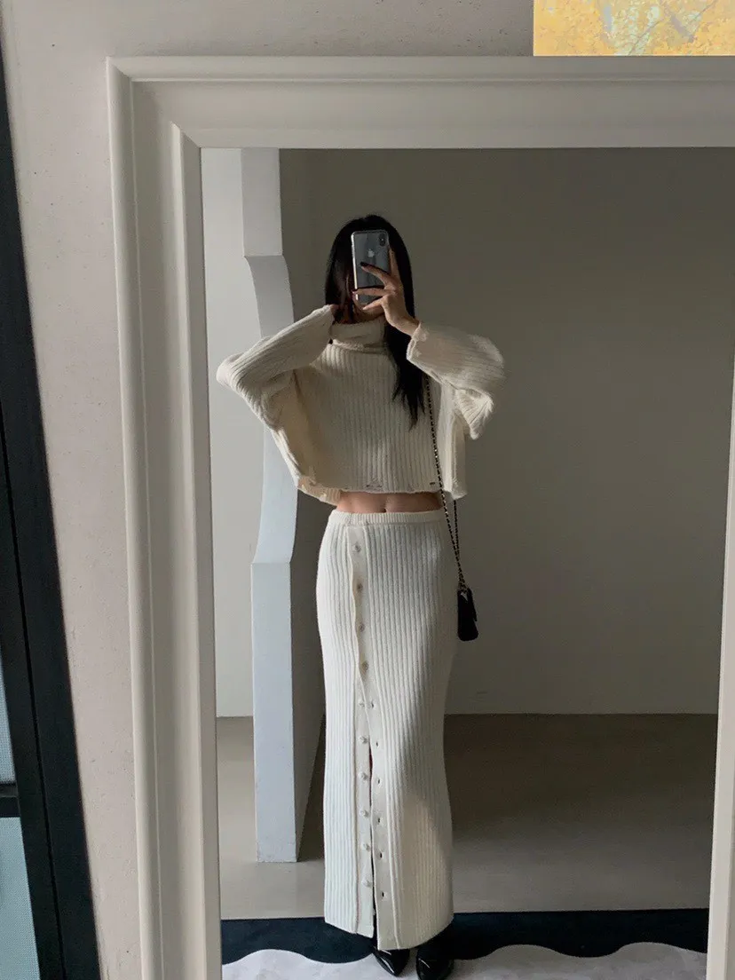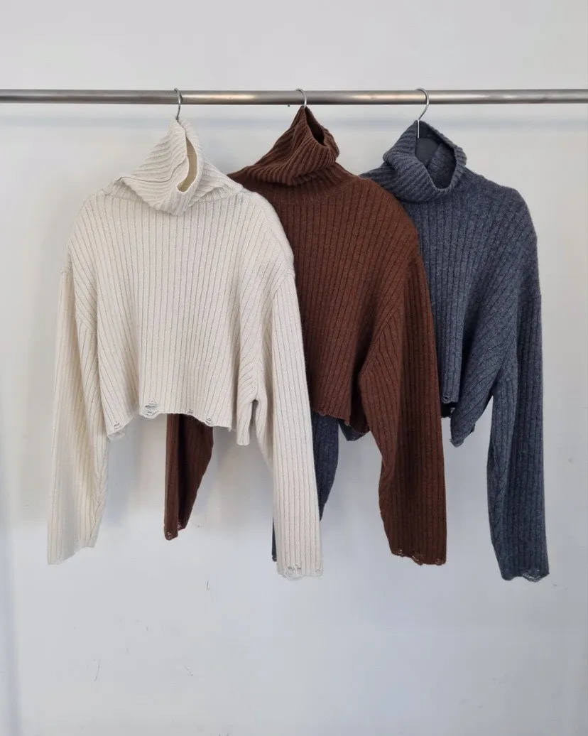 羊毛高領短毛衣