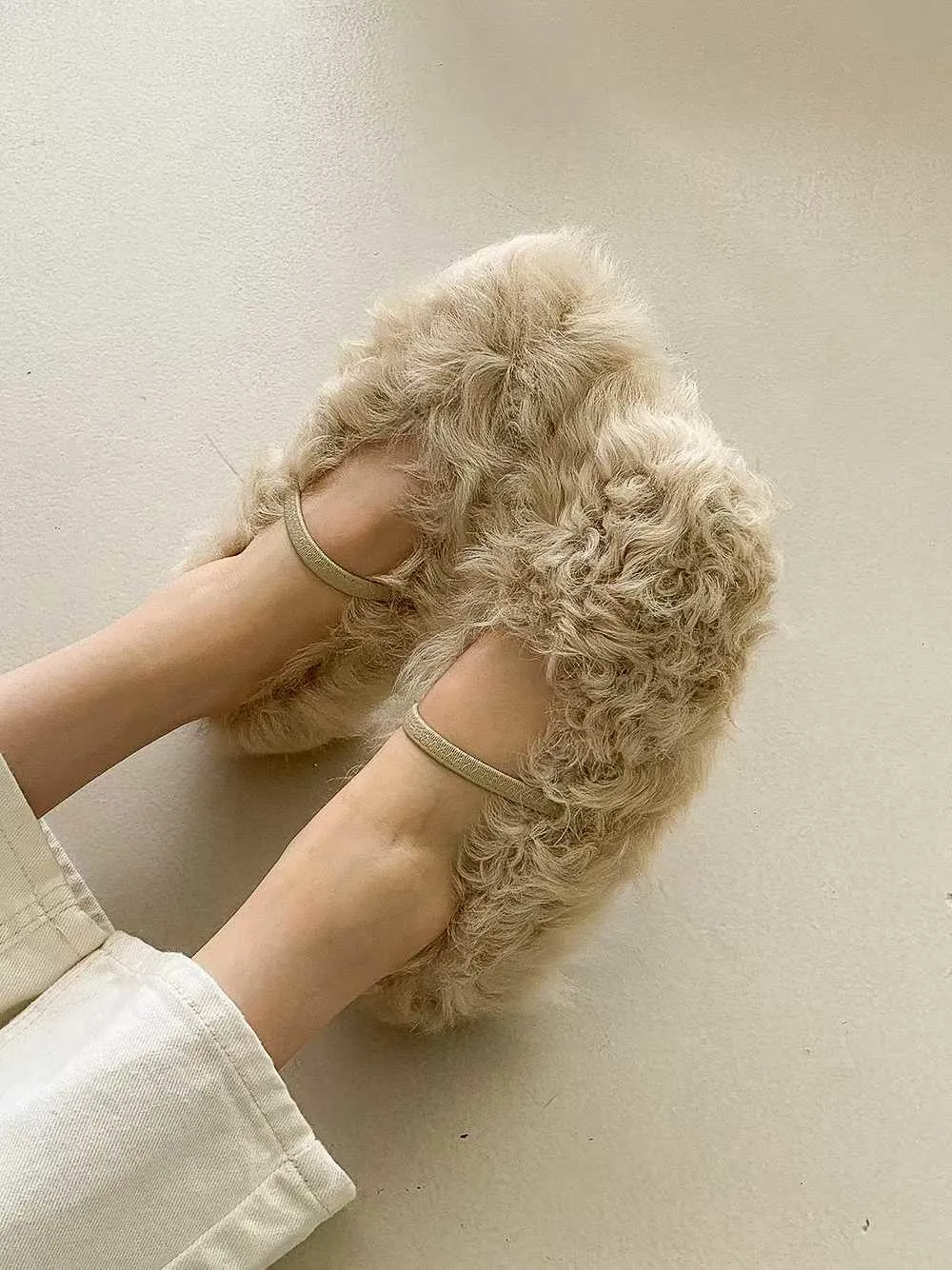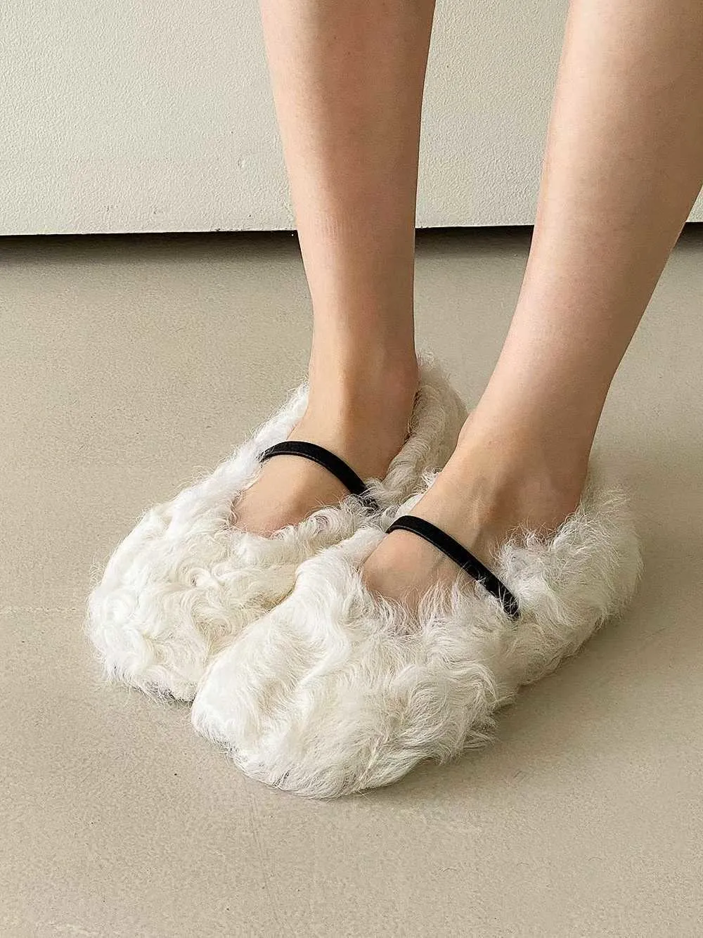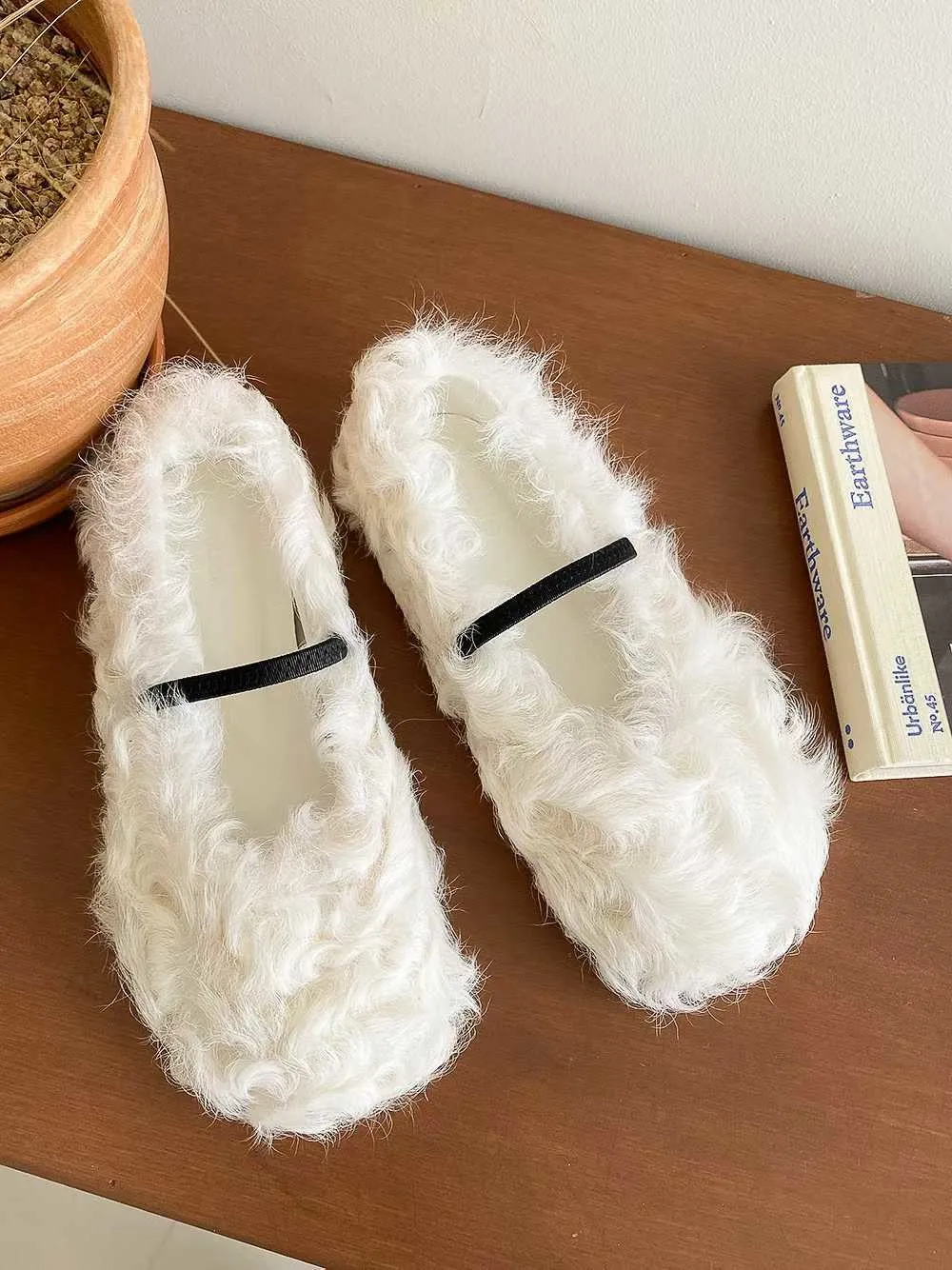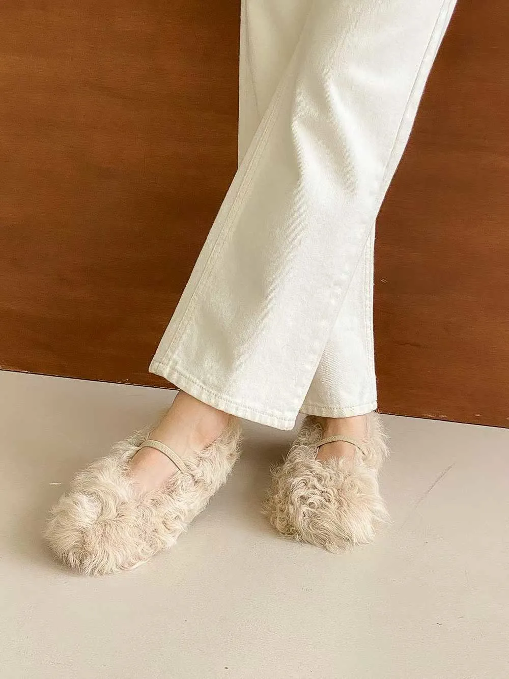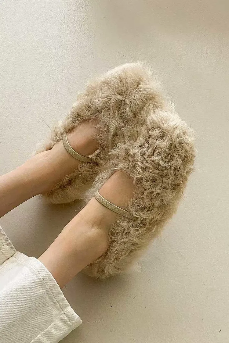 單環釦毛毛平底鞋