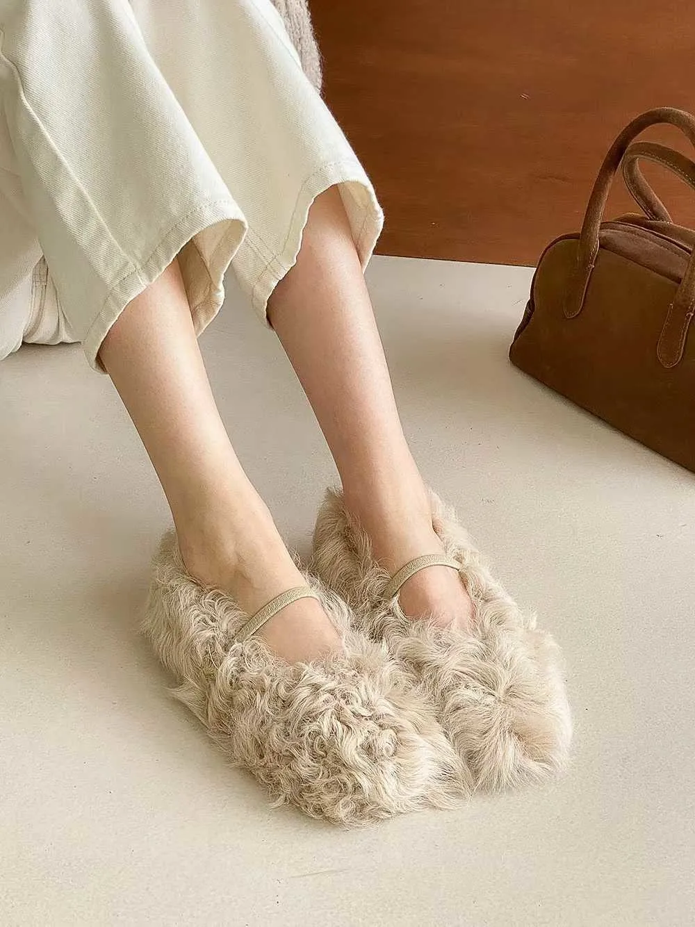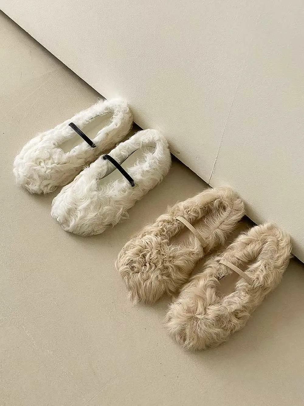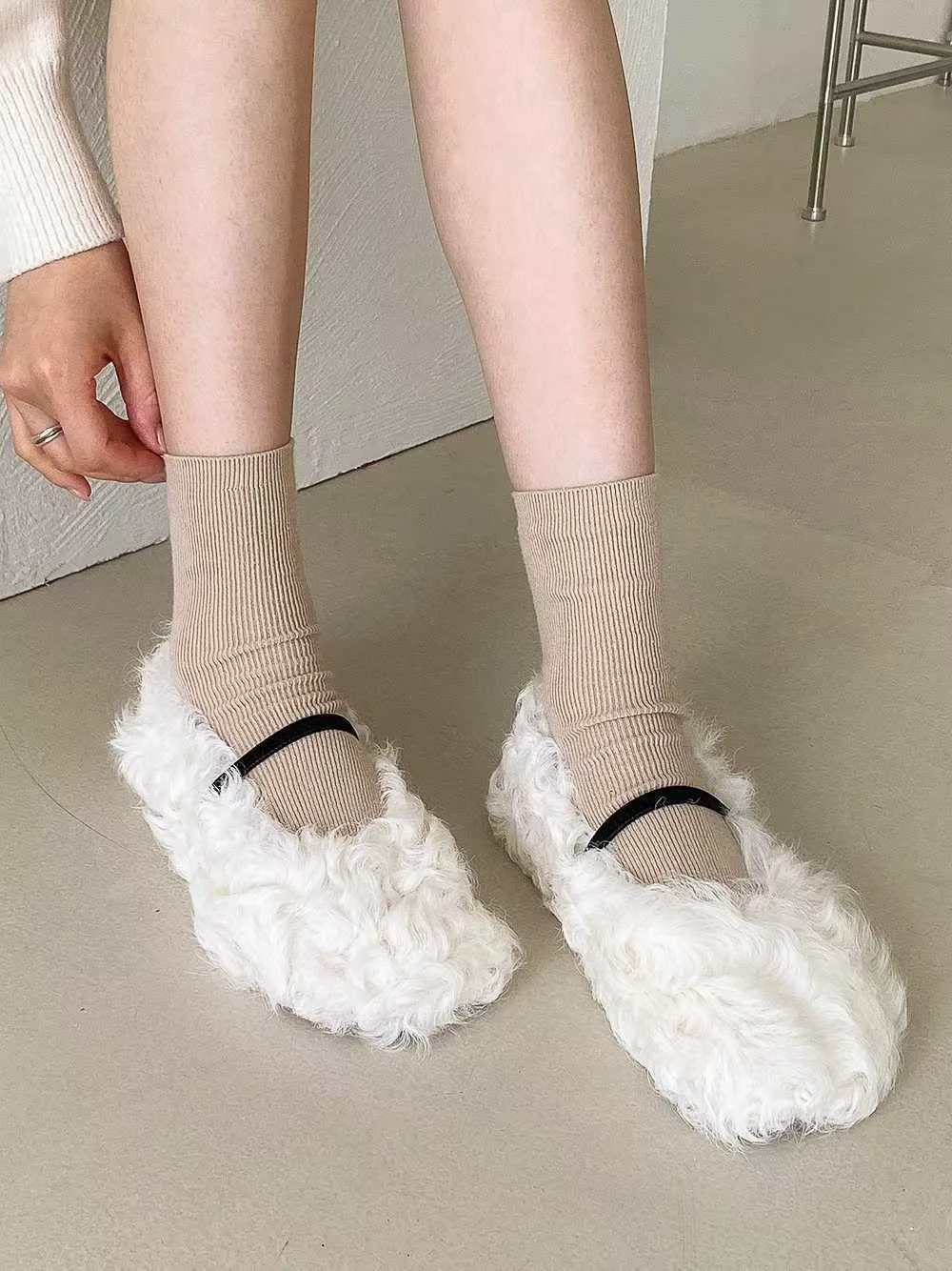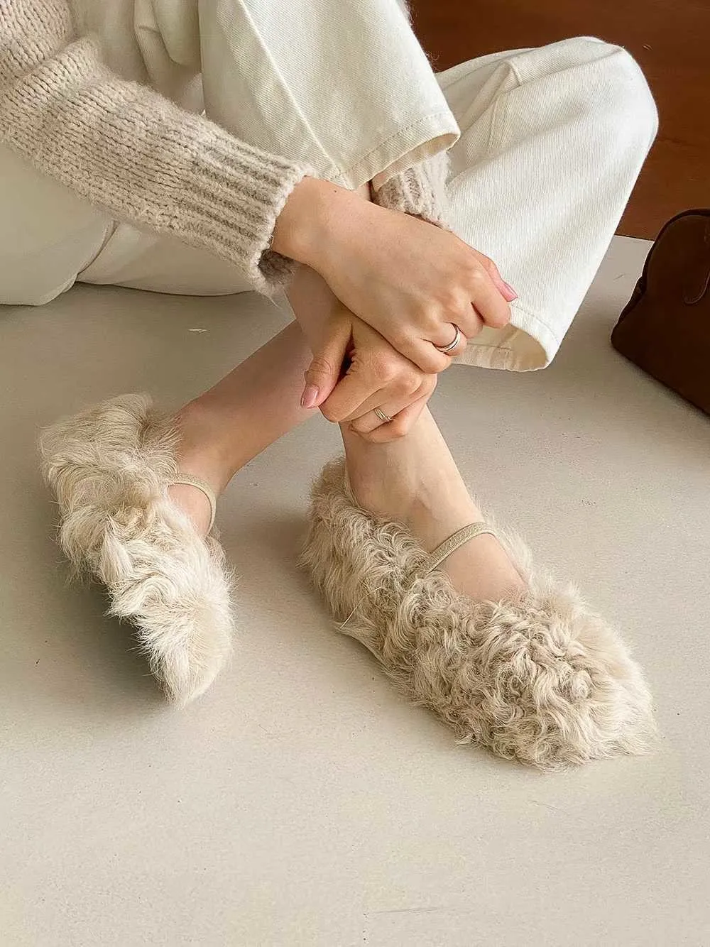 單環釦毛毛平底鞋